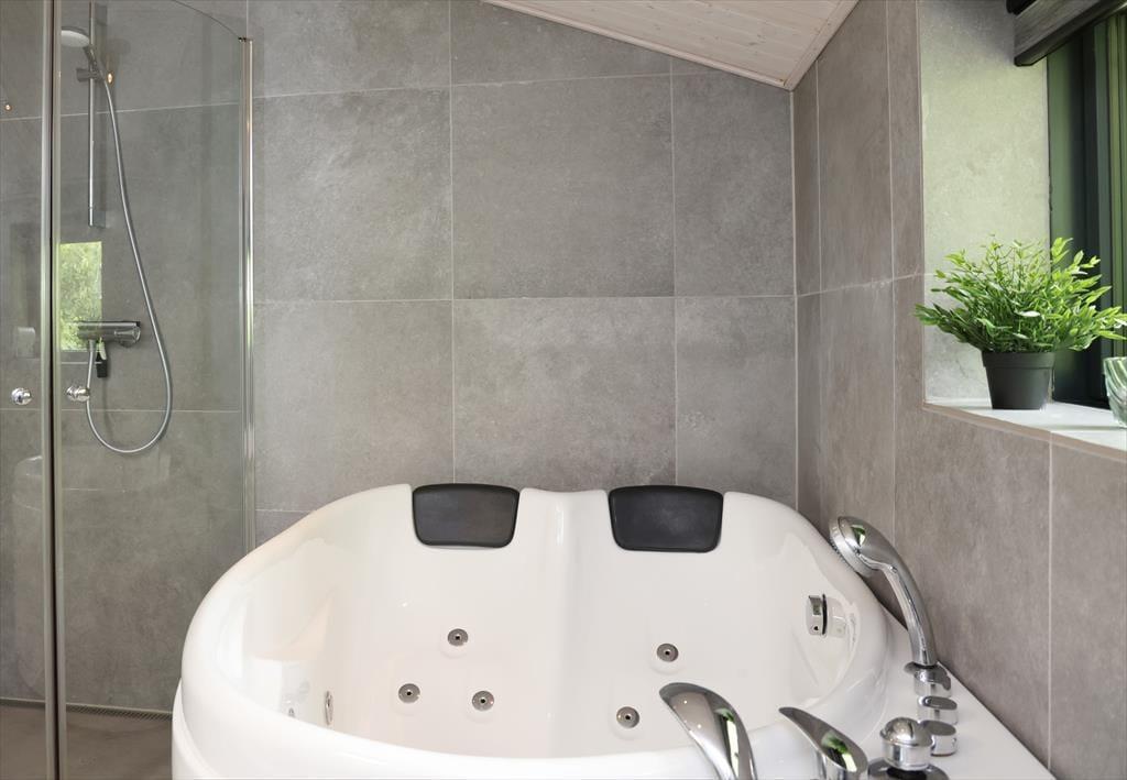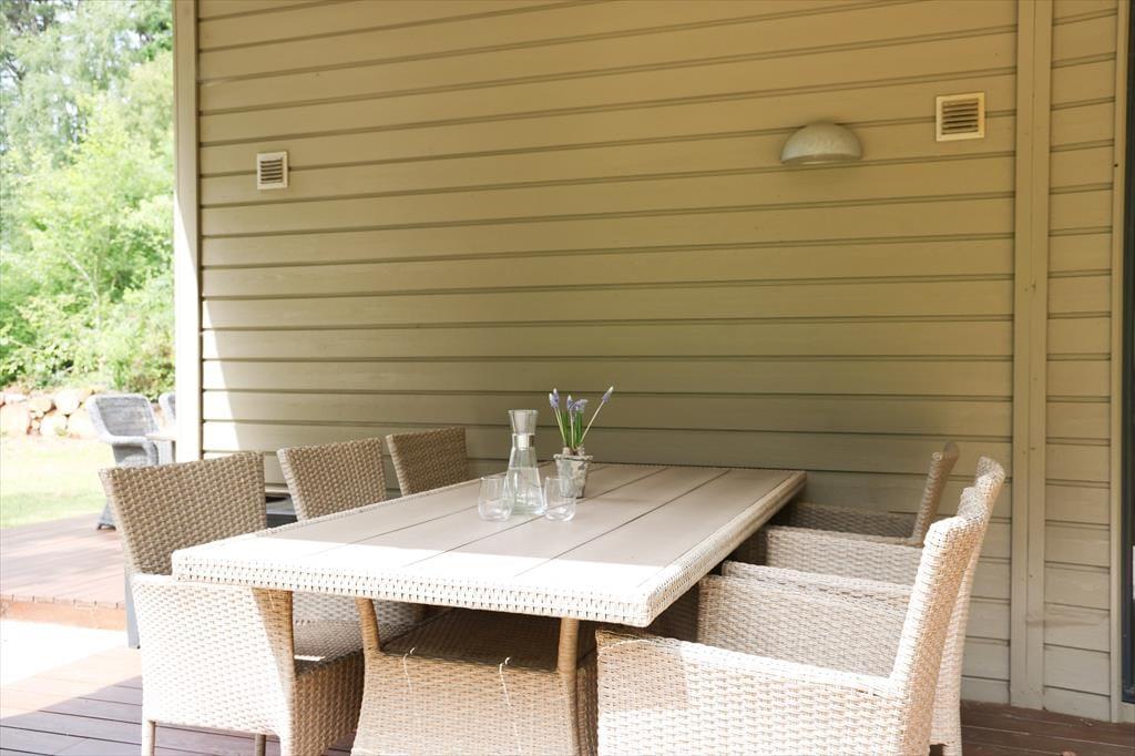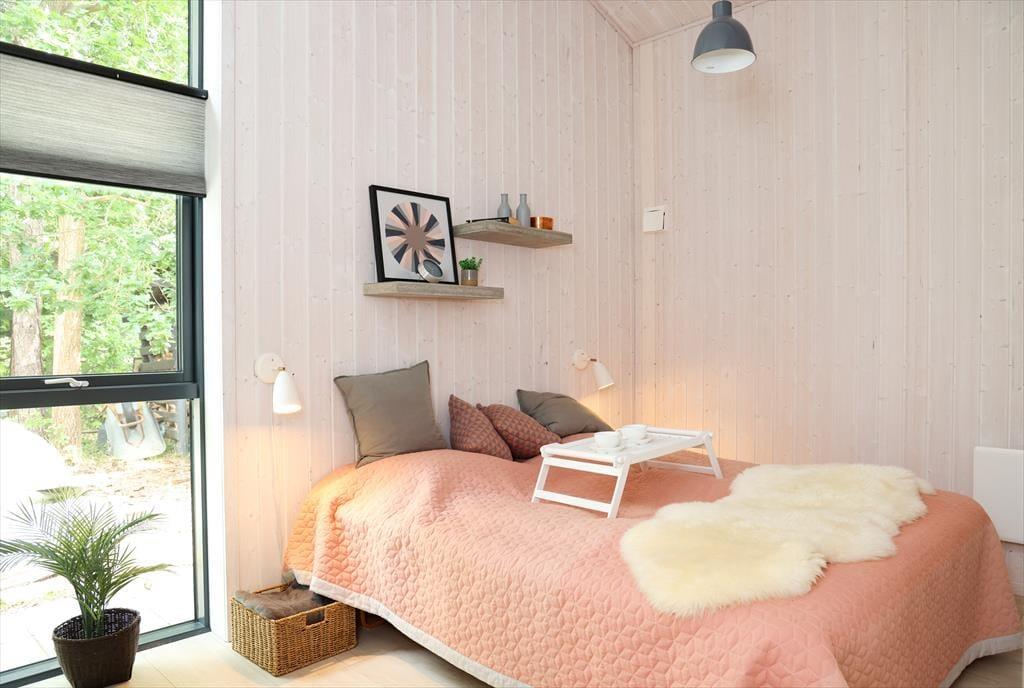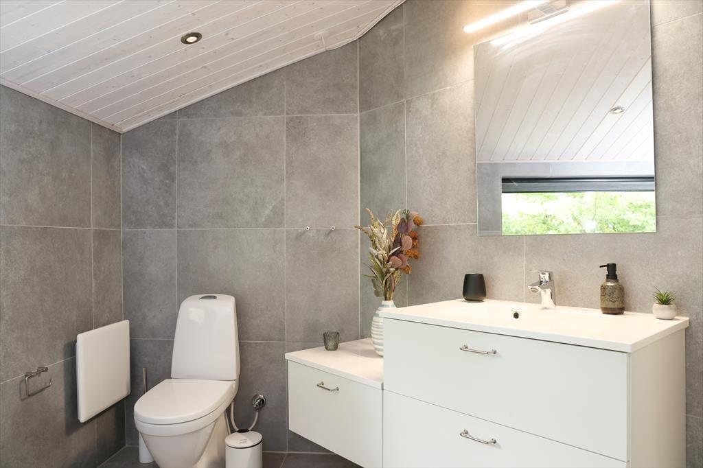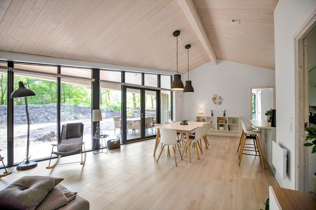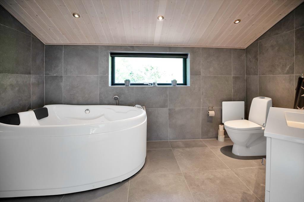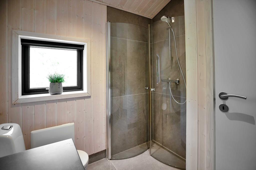 Das Ferienhaus ist mit Bodenheizung in allen Räume ausgestattet und enthält folgendes: Waschküche mit Waschmaschine, 2 Schlafzimmer mit Doppelbetten und ein Schlafzimmer mit 2 Einzelbetten. Dazu gehören auch 2 gute Badezimmer, das eine mit schönem Spabad. Küche/Mehrzweckraum in weißen Elemente mit allen modernen Ausstattungen; hier können Sie sich helfen, einen guten Lunch zu vorbereiten. Die Küche ist in offener Verbindung mit einem schönen Wohnraum, wo Sie sich u.a. mit einen guten Kaffee entspannen können. Vom Wohnraum haben Sie Zugang zu der großen Holzterrasse, die in mehrere offenen und eine überdachte Sektion aufgeteilt ist. Hier können Sie ab Morgen bis Abend die Sonne genießen und vielleicht ein Paar gute Steaks auf den Grill hinlegen. Der Garten ist in Etablierung und der Rasen auf dem Weg.
