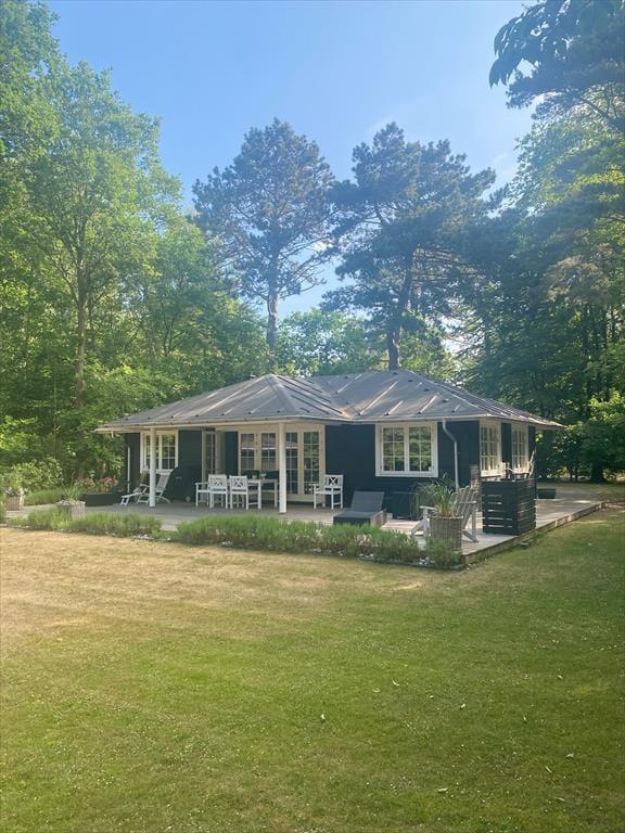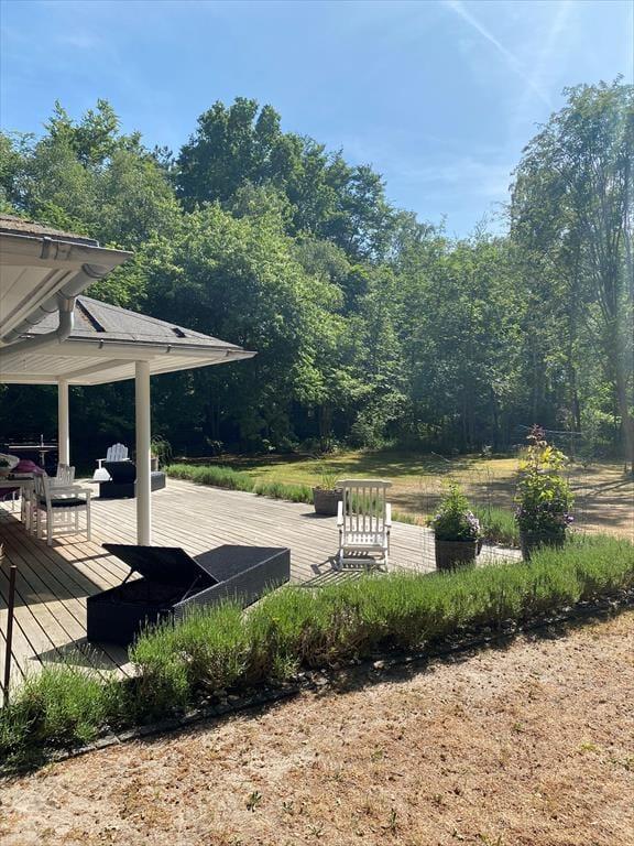 Auf der außergewöhnlich schönen Terrasse können Sie von morgens bis abends die Sonne genießen und Rotwild vorbeigehen sehen. Eine Außenküche steht für Sie bereit.