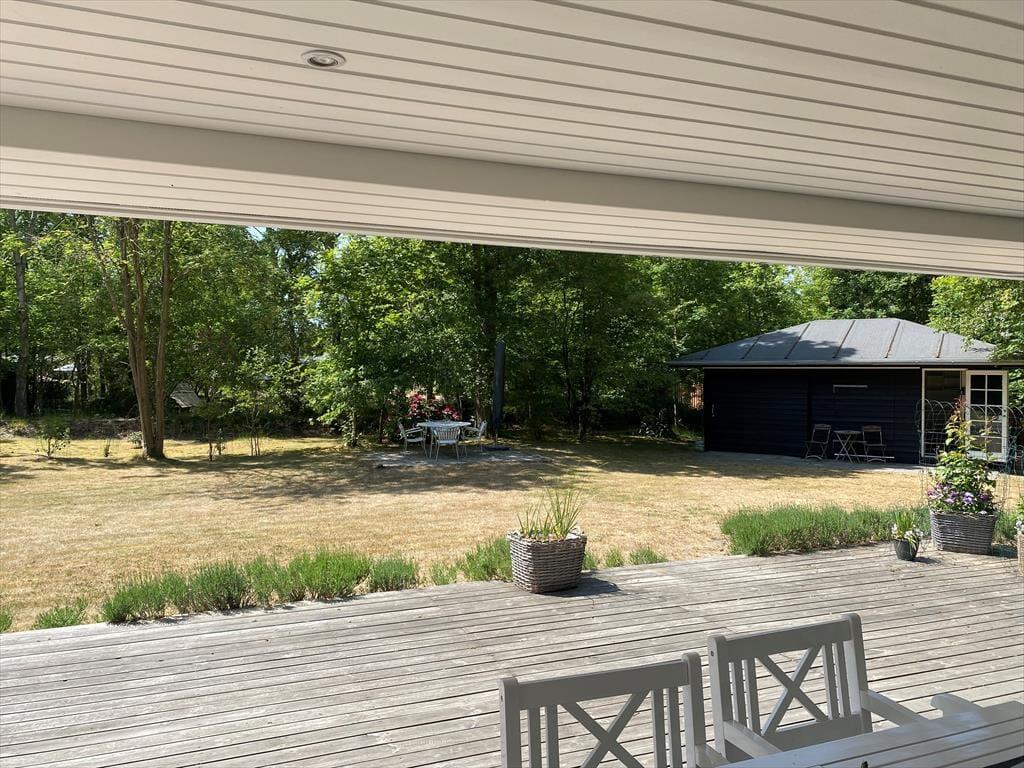 Auf dem großen Grundstück können Sie gemeinsam nach Herzenslust mit dem Ball spielen und mit den Kindern umhertollen. Nach einem Tag am Strand spült Ihnen die Außendusche den Sand und das Salz des Meeres von der Haut.