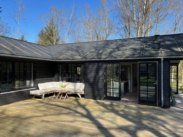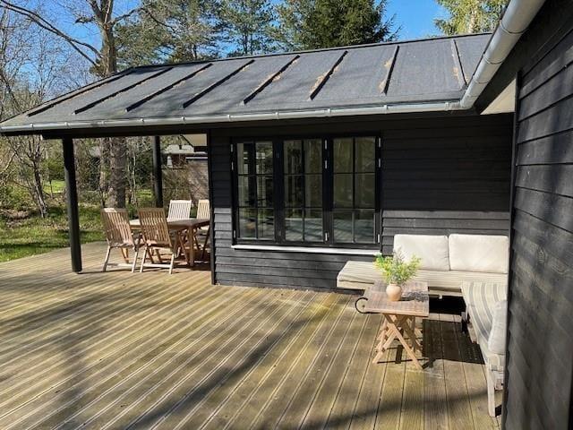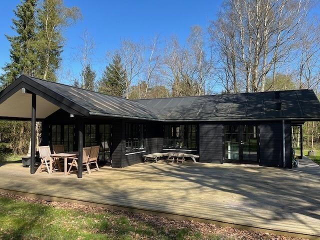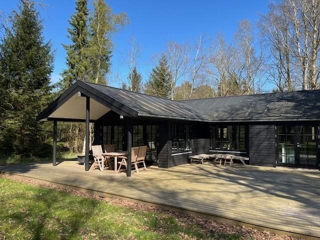 Auf der großen, nach Süden und Westen ausgerichteten Holzterrasse bieten sich dir reiche Möglichkeiten, die Sonne zu genießen und es dir mit einem spannenden Buch auf einer der Sonnenliegen gemütlich zu machen. Bei Bedarf spendet der überdachte Terrassenteil angenehm kühlen Schatten. Unter der Terrassenüberdachung kannst du mit deinen Lieben außerdem sehr schön nach Einbruch der Dunkelheit am Abend beisammensitzen und den langen, erlebnisreichen Tag mit deinem Lieblingsgetränk ausklingen lassen. Das große Grundstück animiert zu gemeinsamen Spielen verschiedenster Art. Falls es euch zu einem stimmungsvollen Picknick in die Umgebung zieht, erwarten euch ringsum viele hübsche Fleckchen, die ihr zu Fuß, per Fahrrad oder auch per Pkw erreicht.