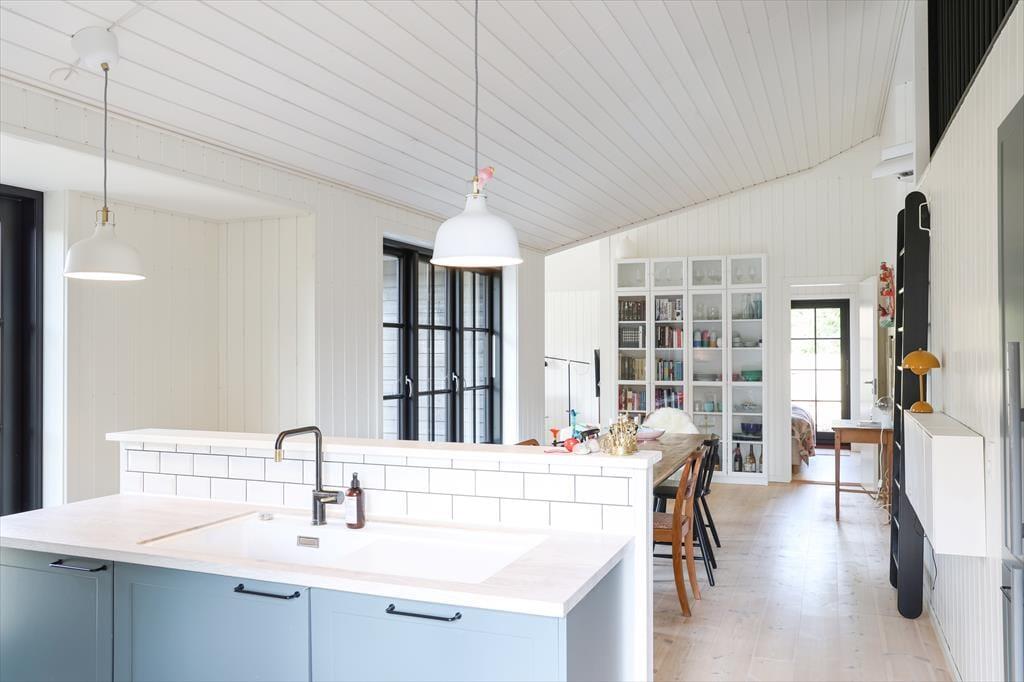 Dein Ferienhaus begrüßt dich mit einer gelungenen Mischung aus gemütlichem Ferienhauscharme und modernen Einrichtungsakzenten. Die hohen Decken verleihen den Räumlichkeiten ein angenehm luftiges und helles Ambiente. Wenn du deine Familie gern mit einem guten Essen verwöhnst, darfst du dich auf eine schöne, geräumige Küche freuen, die offen an den Essplatz schließt. Zusammen werdet ihr in diesem stimmungsvollen Teil des Hauses viele gemütliche Stunden bei gemeinsamen Mahlzeiten und dem ein oder anderen geselligen Spieleabend genießen.