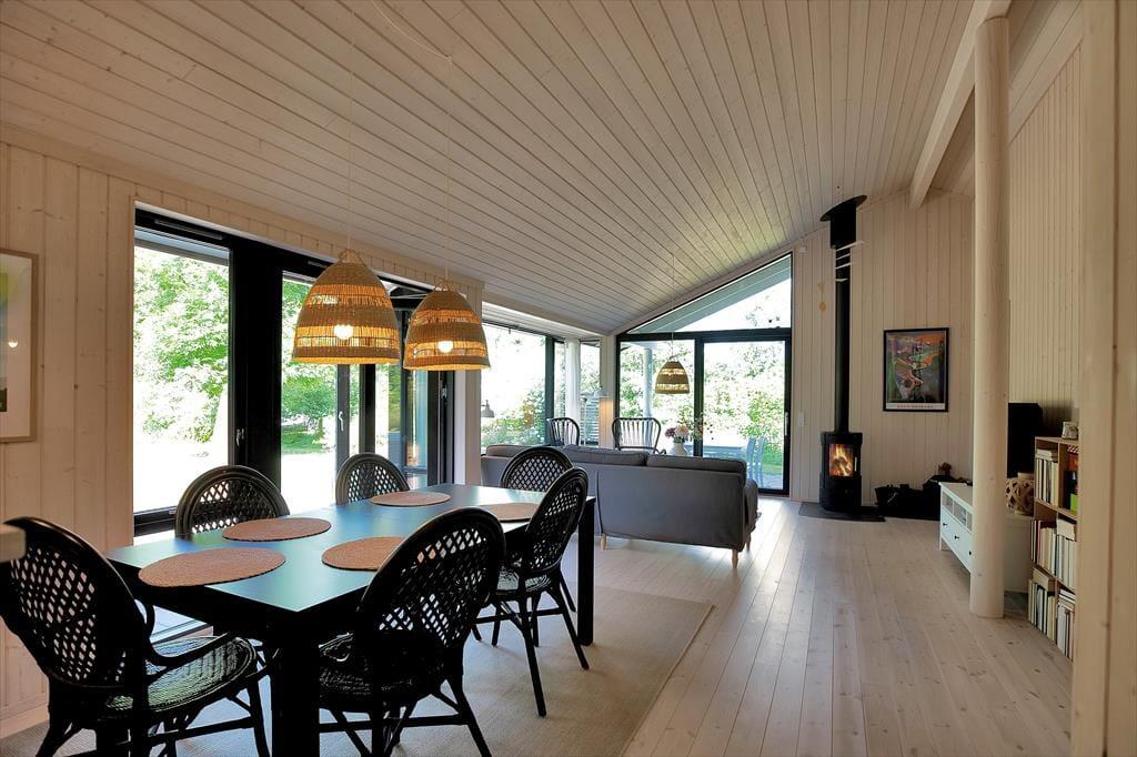 Dieses wunderbare Urlaubsdomizil begeistert mit seiner richtig schönen Platzierung - nur 150 Meter abseits des Wassers. Das Hausinnere begrüßt Sie mit einer offenen Küche samt einem offen kombinierten Wohn- und Essbereich. Ihnen stehen zudem drei Schlafzimmer zur Verfügung. Zwei dieser Schlafzimmer beinhalten jeweils zwei Einzelbetten. Im dritten Raum steht ein Doppelbett für Sie bereit. Ein großes, schönes Badezimmer und ein Gäste-WC sind selbstverständlich ebenfalls vorhanden. An das Haus schmiegt sich eine große, offene Terrasse. Hinzu gesellt sich ein guter, überdachter Essplatz. Das richtig schöne, stimmungsvolle Haus ist von einem ansprechenden Naturgrundstück umgeben, von dem Sie auf den Fjord blicken können.