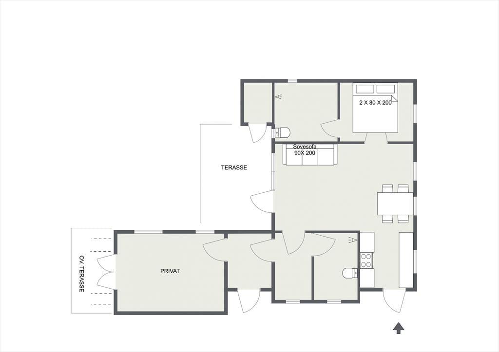 Der Wohnraum begrüßt Sie mit einem Sofa, das als Schlafgelegenheit für ein Kind genutzt werden kann. An den Wohnraum schließt die eher kleine Küche, in der Sie die Mahlzeiten zubereiten. Es gibt 2 kleinere Bäder mit Toilette und Dusche, von denen eines auch eine Waschmaschine enthält. Vom Wohnraum gelangen Sie hinaus auf eine sonnenverwöhnte Terrasse, auf der Sie sich sonnen und gemeinsam gemütliche Stunden und stimmungsvolle Grillabende verleben können. Dieses Ferienhaus eignet sich sehr gut für Urlauber, die viel Zeit am Strand verleben möchten und nicht Luxus benötigen. Ihr Hund ist in diesem Haus willkommen.