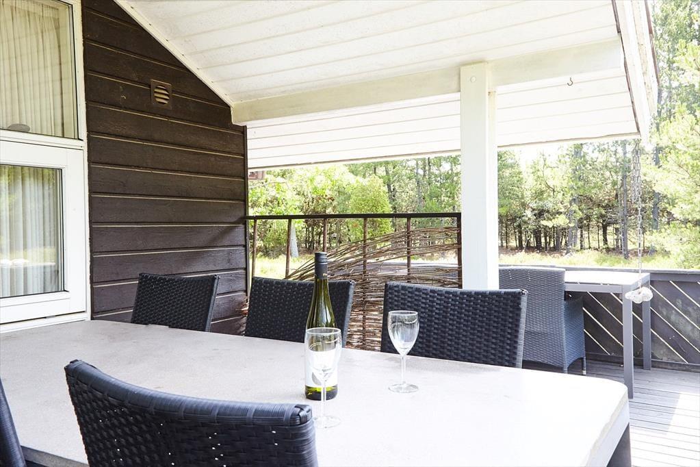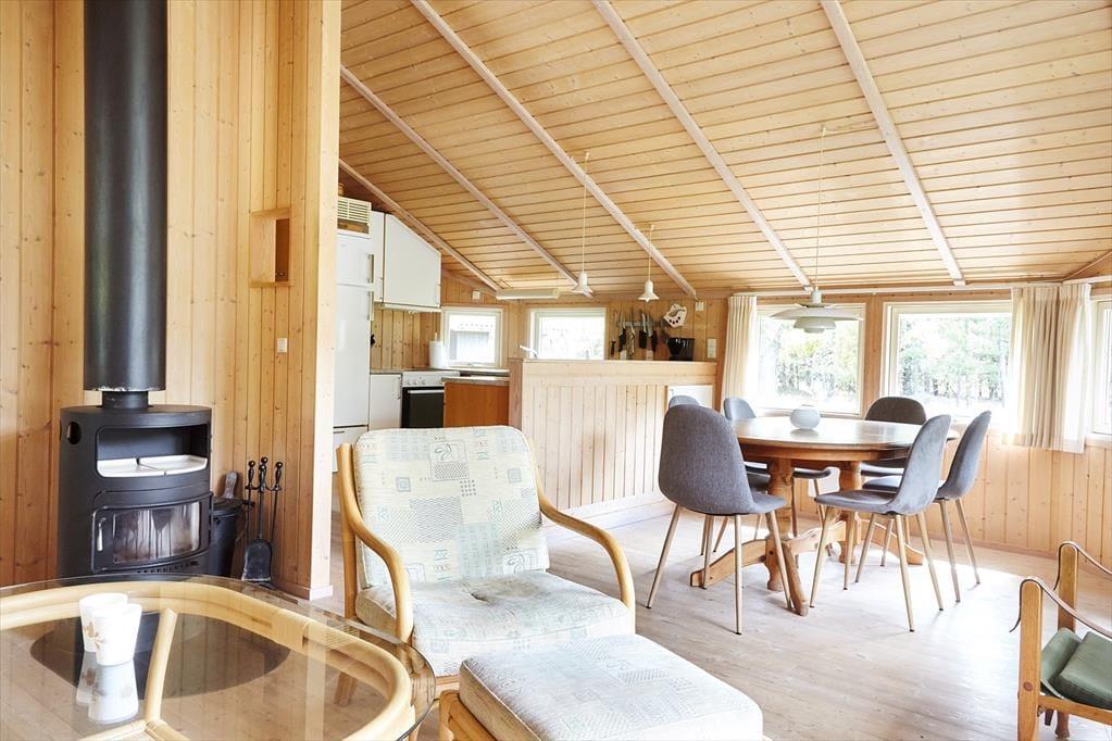 Dein Ferienhaus empfängt dich mit einem angenehm geräumigen Wohn- und Essbereich, in den die Küche offen integriert ist. Durch die Fenster blickst du hinaus auf die Terrasse und auf das mit Heide bewachsene Naturgrundstück. Gern wirst du dich in aller Ruhe auf dem Sofa niederlassen, den Wind in den Bäumen und das Wechselspiel zwischen Licht und Schatten beobachten. Alternativ spielst du stundenlang mit deiner Familie unterhaltsame Brett- und Kartenspiele. Nach einem langen, erlebnisreichen Tag kann sich deine gesamte Familie nach Herzenslust in den Schlafräumen und in der Alkove ausschlafen.
