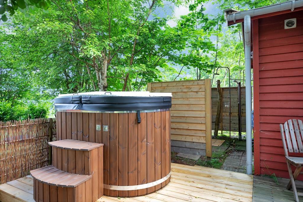 Tolles Wohnzimmer mit Fernseher mit dänischen Kanälen(mit samt 1 Schwedischer, 1 Norwegischer und 1 Deutscher Kanal) und darüber hinaus ein gemütlicher Sitzbank für das Beisammensein. Zwei Schlafzimmer, Küche und schönes Badezimmer. Im Annex, wo man DVD abspielen und Fernsehen schauen kann, gibt es zwei weitere Schlafzimmer und ein Gäste-WC. Sowohl vom Wohnzimmer, der Küche und dem Annex gelangt man auf die herrlichen Terrassen. Sowohl Außenküche als auch -dusche. Wenn Sie Wildnis spa, Gasgrill oder Terrassenheizung nutzen möchten, müssen Sie selbst für Gas sorgen.