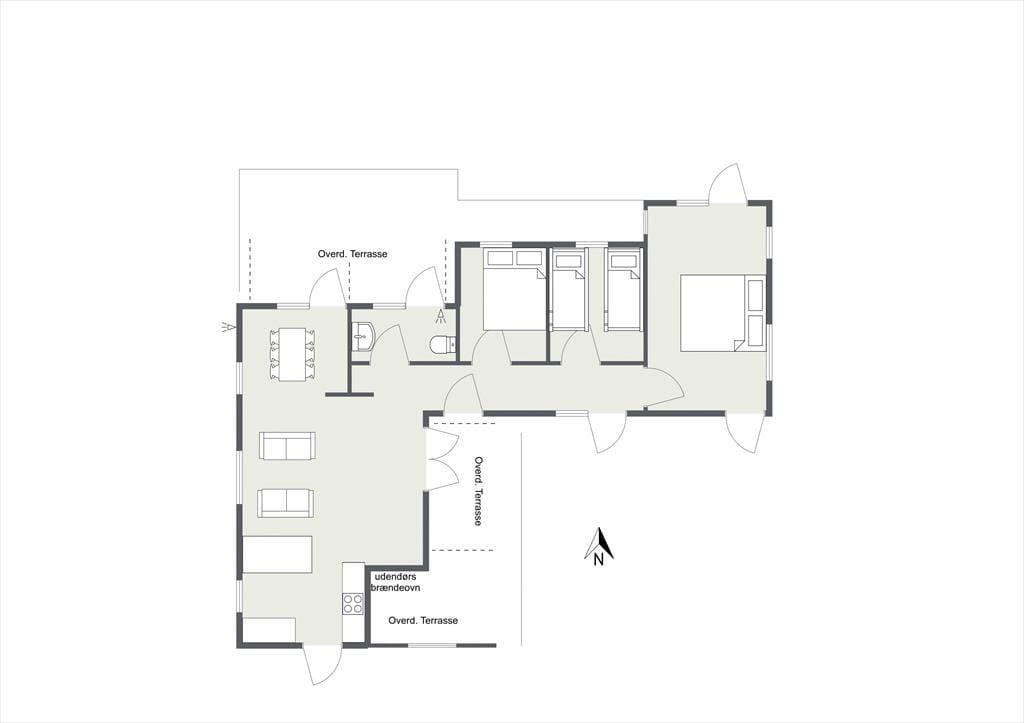 Die beiden großen Terrassen, die an dein Ferienhaus schließen, laden zu herrlichen Stunden in der Sonne ein. Nach einem langen Badetag am Strand, spült dir die Außendusche den Sand und das Salz des Meeres von der Haut. Gartenmöbel, ein Sonnenschirm und ein Zelt sind vorhanden. Deine Kinder dürfen sich auf Gartenspielzeug freuen. Stimmungsvolle Abende verlebst du mit deinen Lieben in der überdachten Outdoor-Lounge, in der ein Außenkamin nach Einbruch der Dunkelheit für behagliche Temperaturen sorgt. Selbstverständlich kann der Außenkamin auch zum Grillen verwendet werden.