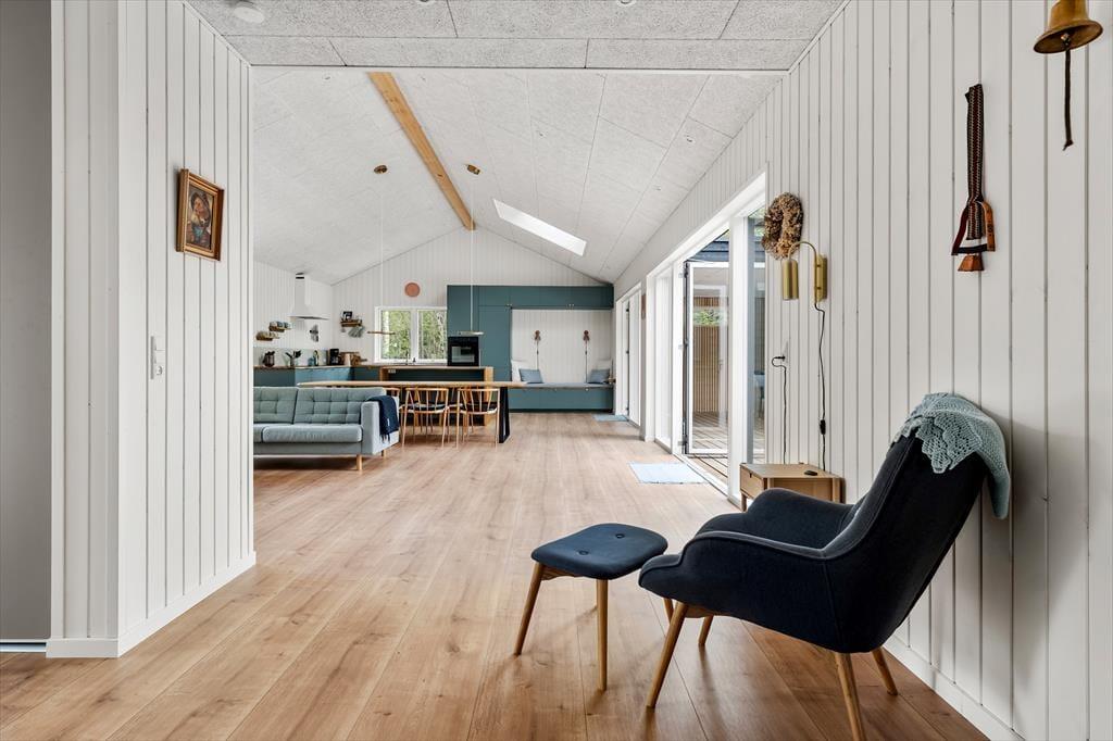 Das wunderbar helle und überaus einladende Ferienhaus begrüßt dich mit einem modernen, skandinavisch geprägten Einrichtungsstil. Große Fenster verleihen insbesondere dem Küchen-, Wohn- und Essbereich einen reizvollen Tageslichteinfall. Durch eine Terrassentür gelangst du hinauf auf deine fantastische Holzterrasse. Der offen gestaltete Aufenthaltsraum ist das Herzstück deines Mietobjektes. In diesem Teil des Hauses genießt du mit deinen Lieben Mahlzeiten und lange Spieleabende sowie zahllose erholsame und gemütliche Stunden in der Polstersitzecke. In der attraktiven Küche wird die Zubereitung des Essens zum vergnügten Familienprojekt. Dank des großzügig bemessenen Platzangebotes und zwei schönen Duschbädern, eignet sich dieses tolle Ferienhaus sehr gut für den gemeinsamen Urlaub zweier befreundeter Familien.