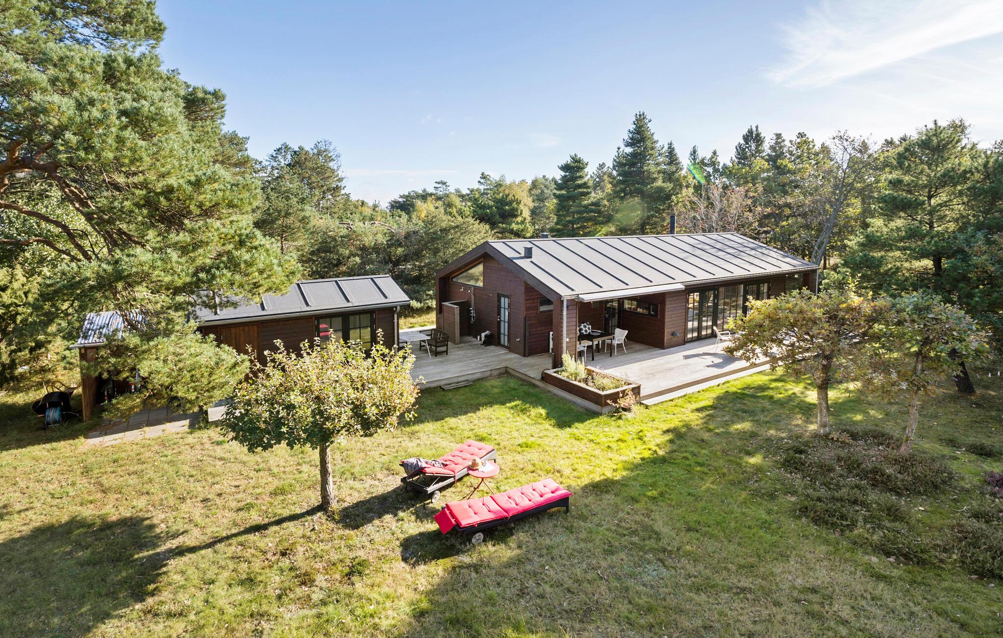 Genießen Sie Erholung im modernen Ferienhaus nahe Rørvig Strand mit Sauna und großem Naturgrundstück.