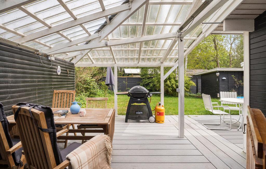 Der Außenbereich Ihres Ferienhauses bietet zahlreiche Möglichkeiten, die frische Luft und die Natur zu genießen. Die große, überdachte Terrasse mit komfortablen Sitzmöglichkeiten ist ideal für Grillabende und Mahlzeiten im Freien, auch wenn sich das Wetter mal nicht von seiner besten Seite zeigen sollte. Nutzen Sie auch den gepflegten Garten, der für Kinder viel Platz zum Spielen bietet. Ihr Ferienhaus liegt in einer ruhigen Umgebung, die zum Entdecken einlädt. Unternehmen Sie Spaziergänge in der Natur und entdecken Sie die zahlreichen schönen Strände an der nahe gelegenen Küste.