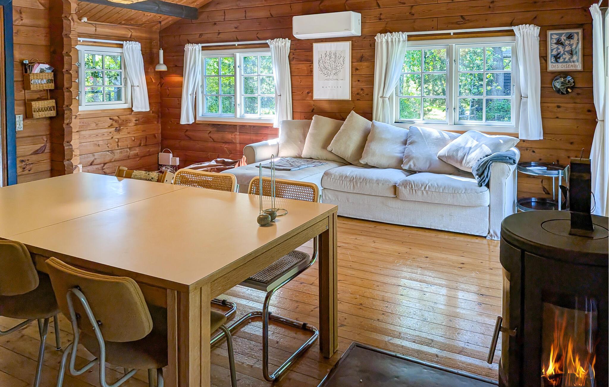 Dieses einladende Ferienhaus ist ideal für Ruhesuchende und Genießer. Fühlen Sie sich direkt nach der Ankunft wie zuhause und genießen das Holzambiente der Innenräume sowie den familiären Charme. Kuscheln Sie auf dem Sofa, spielen am Esstisch oder zaubern in der Küche gemeinsam leckere Mahlzeiten. An den Abenden können Sie sich vor dem Holzofen wärmen oder die Sommertage im Garten verbringen. Entspannen Sie in einer der zahlreichen Hängematten, schauen Ihren Kindern beim Trampolin springen oder Schaukeln zu oder genießen die Sonne auf den Gartenmöbeln der schönen Terrasse.