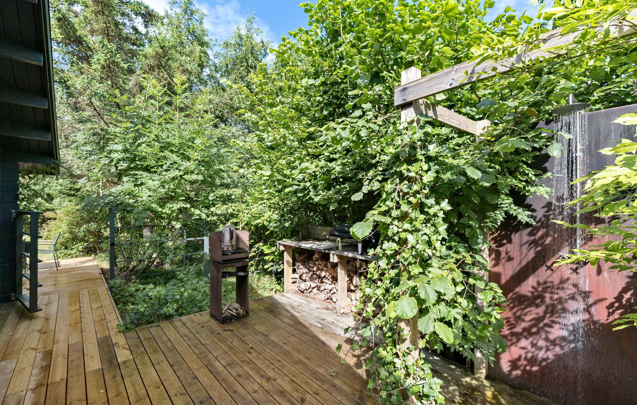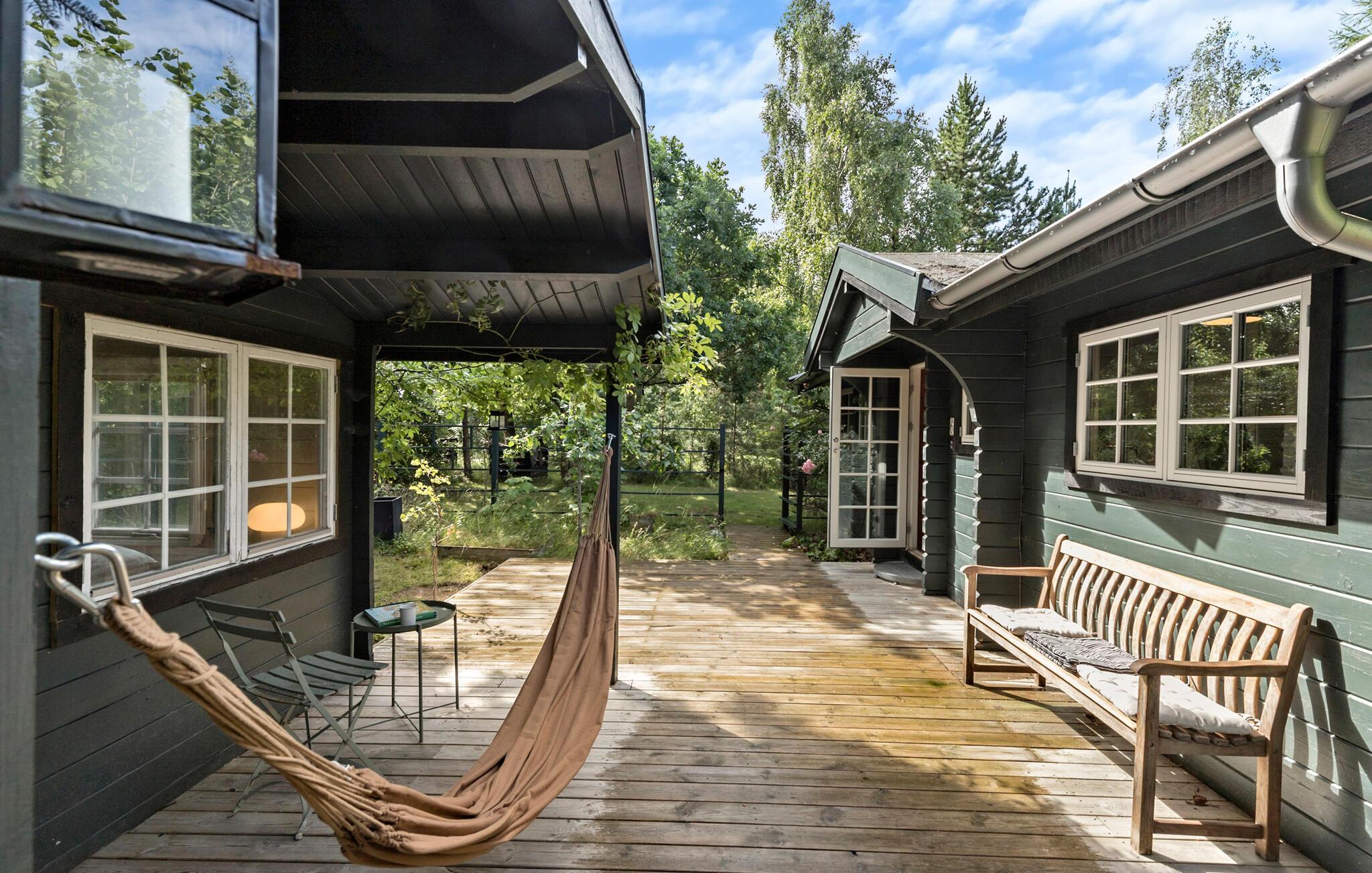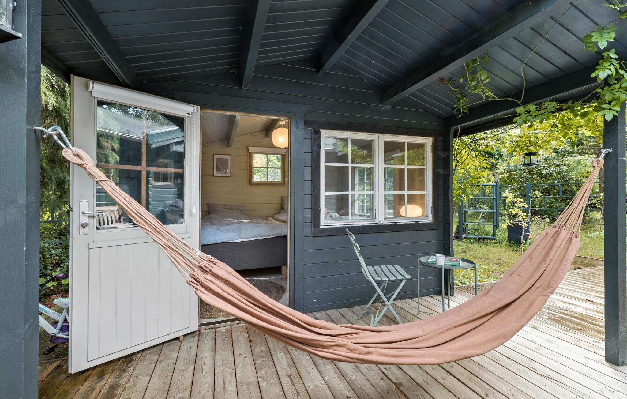 Charmantes Holzhaus mit idyllischem Garten nahe dem Strand von Rågeleje in Dänemark, perfekt für entspannte Urlaubstage.