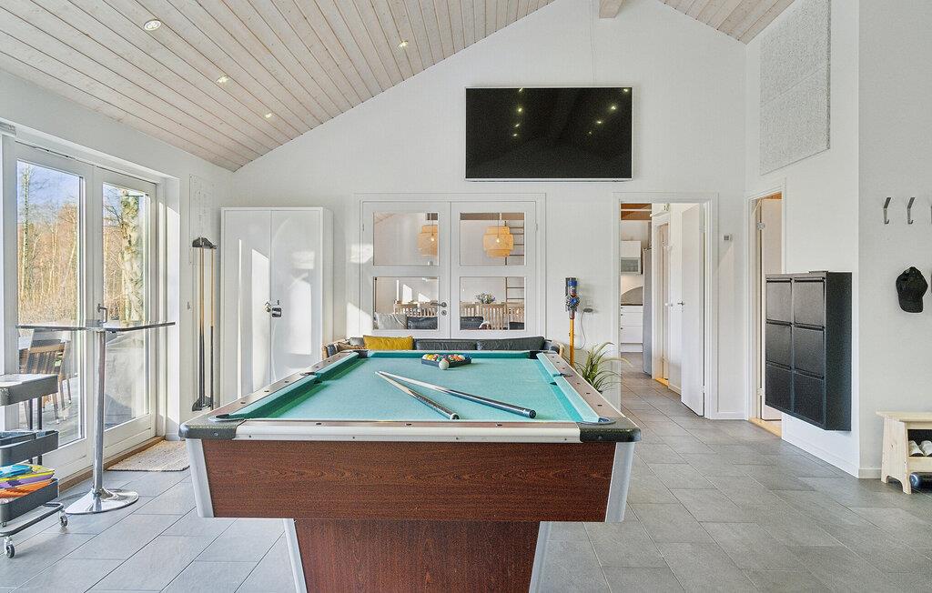 Willkommen in diesem sehr geräumigen und schönen Haus. Das klassische dänische Design und die hochwertige Ausstattung in der Wohnküche schaffen eine Atmosphäre, in der Sie sich sofort wohlfühlen werden. Für Ihre sportliche Unterhaltung sorgt der Aktivitätsraum mit Billard und Tischfußball. Etwas ruhiger können Sie auf dem großen Fernseher Ihre Lieblingsserien und -filme streamen. Ein Highlight ist der Poolraum mit Whirlpool, wo Sie sich wunderbar entspannen können, oder lassen Sie sich in der hauseigenen Sauna verwöhnen. Die Schlafzimmer sind mit bequemen Betten ausgestattet, und für Kinder und Jugendliche gibt es einen Schlafboden mit Matratzen.