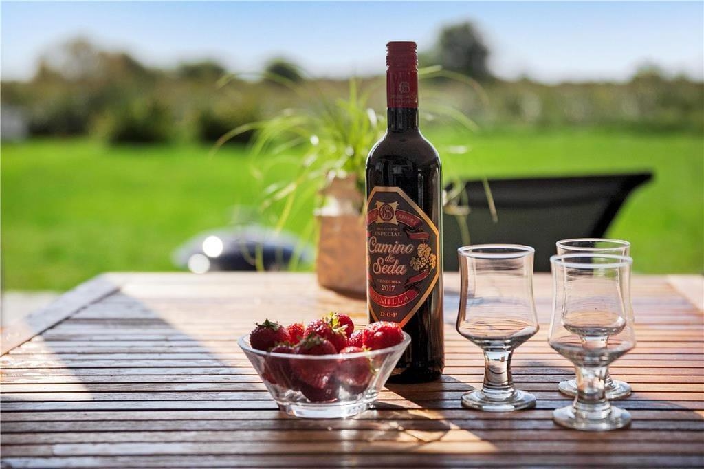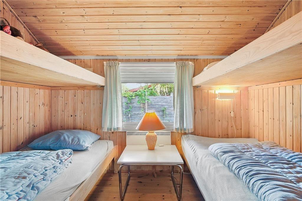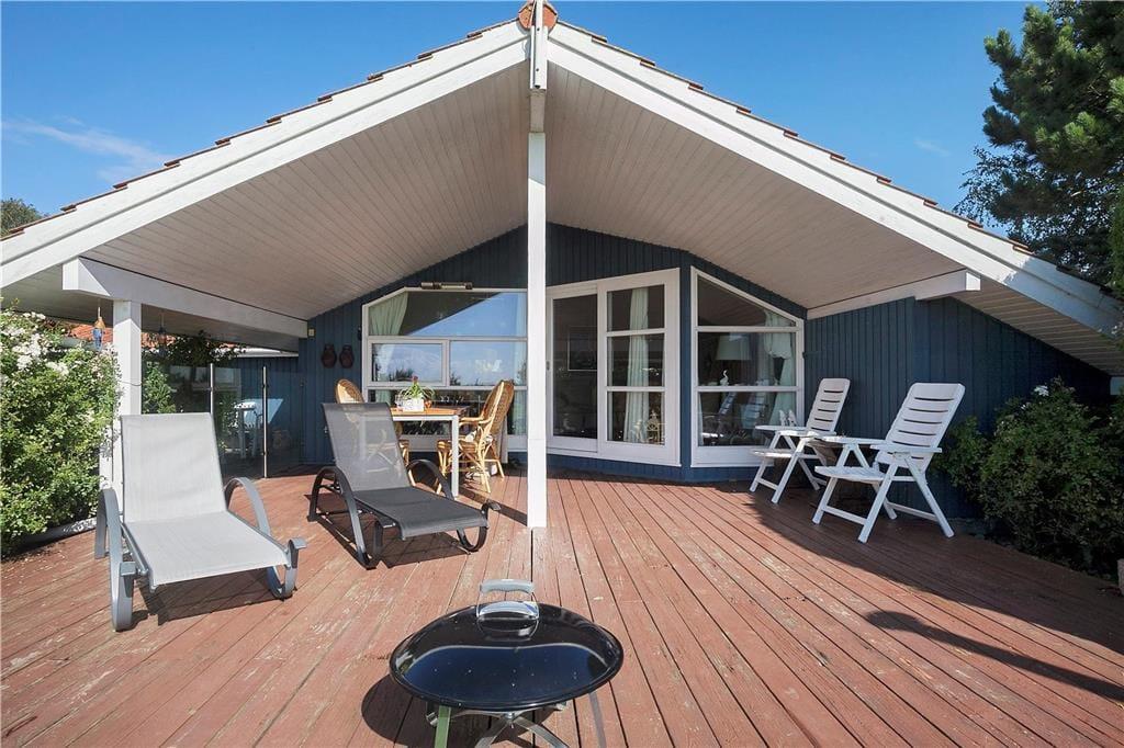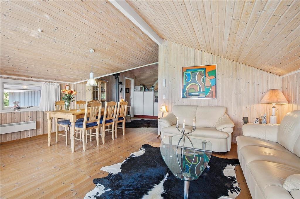 Dieses attraktive Urlaubsdomizil empfängt Sie mit einem offen kombinierten Küchen- und Wohnbereich. Außerdem ein Anbau mit Doppelbett,TV mit DVD (keine TV-Programme) und 2 Glastüren mit Schloss zum Garten und Eingang vom Carport Die helle Küche beinhaltet einen Backofen, keramische Kochplatten, einen Geschirrspüler, eine Mikrowelle und einen Kühlschrank. Der Wohnraum mit direktem Ausgang auf die teilweise überdachte Terrasse, ist mit einem Kamin, Sofas, einem guten Essplatz und einem Fernseher mit dänischen Sendern und dem deutschen Sender ZDF ausgestattet. Im Badezimmer erwarten Sie eine Duschnische, eine Waschmaschine und ein Fliesenboden mit Fußbodenheizung. Die Schlafplätze verteilen sich auf insgesamt drei Schlafräume, von denen zwei mit jeweils einem Doppelbett eingerichtet sind. Im dritten Schlafraum befindet sich ein Etagenbett (Maße unteres Etagenbett: 90 x 200, oberes Etagenbett: 70 x 200). Hinzu gesellen sich zwei weitere Schlafmöglichkeiten in Form eines Doppelbettes in der gemütlichen Schlafnische im Wohnraum. Ein Gefrierscharnk im einen Nebengebäude ist vorhanden. Das Haus wird mit einer Wärmepumpe, dem Kamin und Elektroheizungen geheizt.