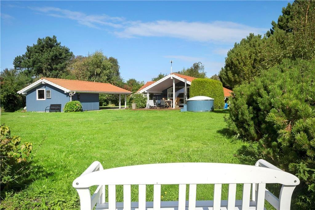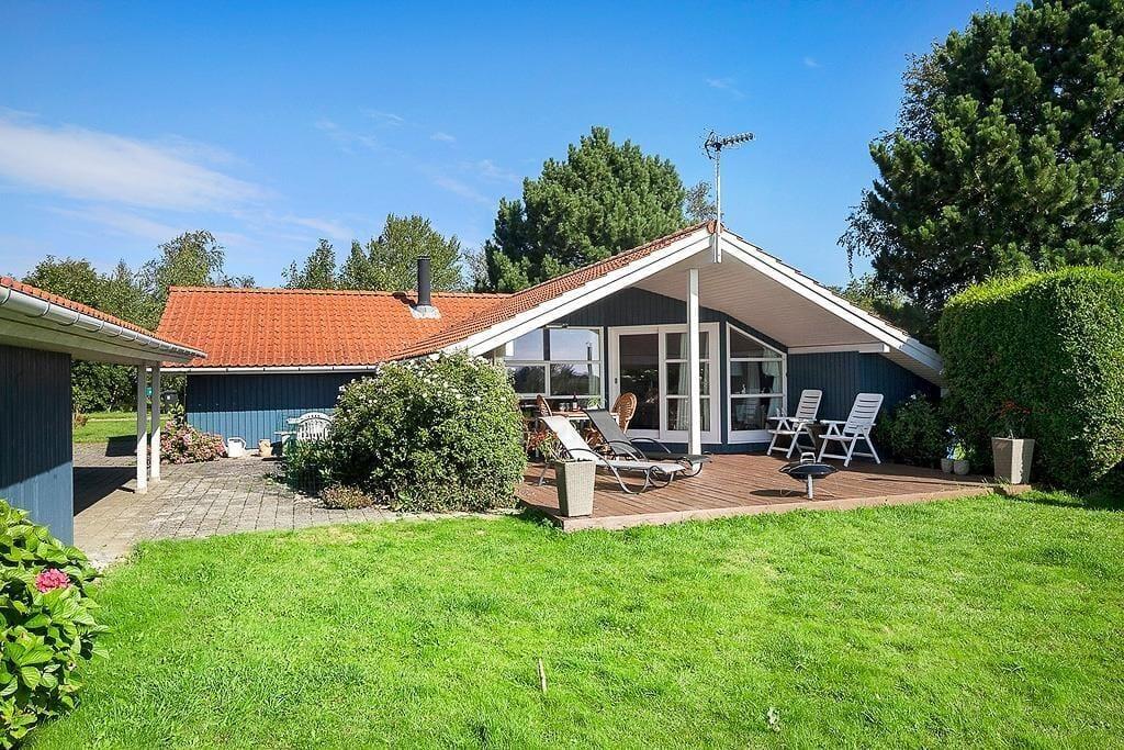 Das Ferienhaus liegt auf einem 1.099 m² großen Grundstück mit einem guten Garten. Auf der guten und teilweise überdachten Holzterrasse können Sie es sich nach Herzenslust gemütlich machen und gesellige Abende im Kreise Ihrer Lieben mit einem köstlichen Essen vom Grill verbringen. Gartenmöbel, ein Grill und Fahrräder stehen zu Ihrer Verfügung.