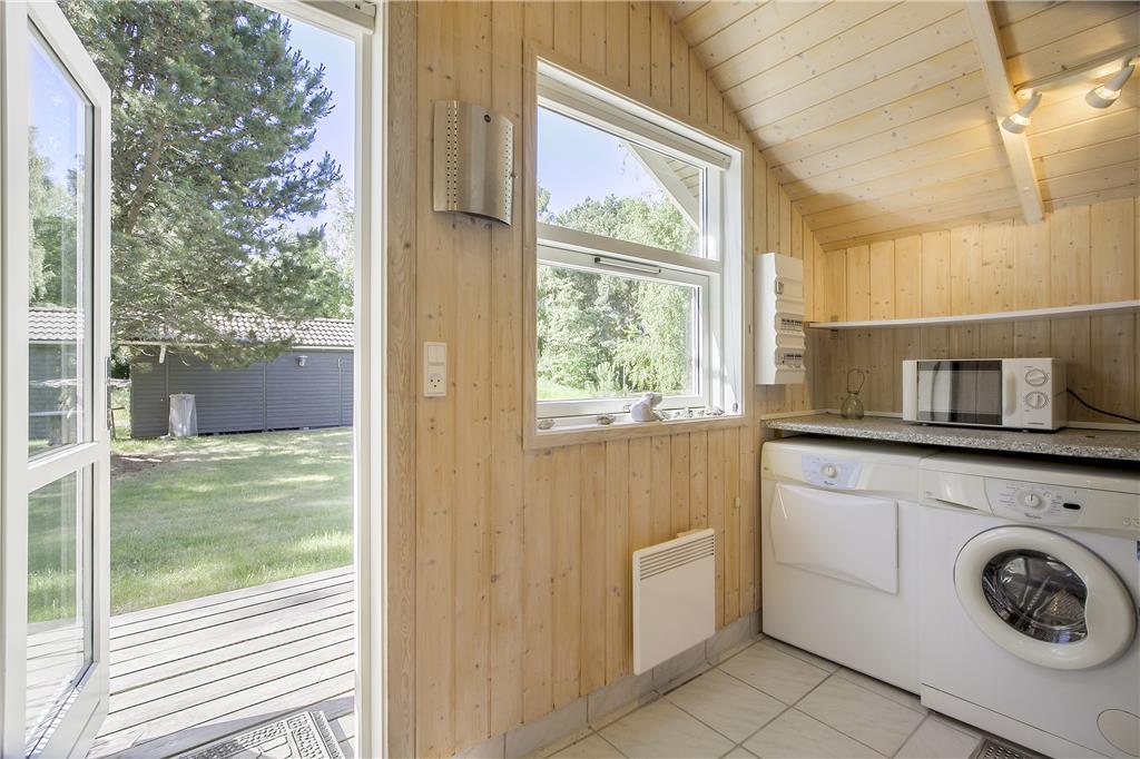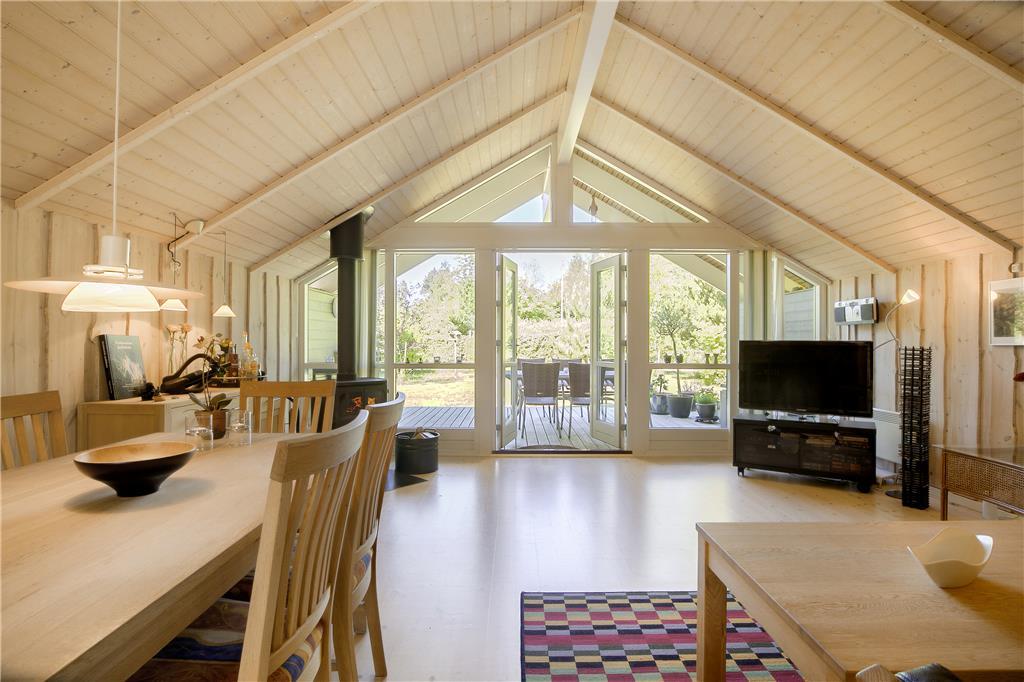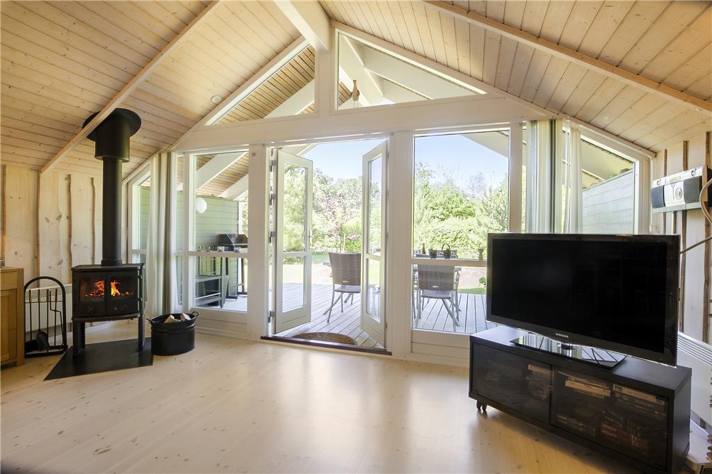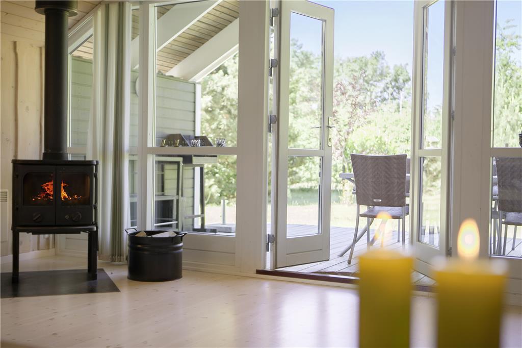Das geschmackvolle Ferienhaus empfängt Sie mit einem offen und harmonisch kombinierten Küchen- und Wohnbereich. Die helle Küche beinhaltet unter anderem einen Ceranfeldherd, einen Geschirrspüler, eine Mikrowelle und einen Kühlschrank mit Gefriermöglichkeit. Der attraktive Wohnbereich lädt mit seinem Ausgang auf die Terrasse, dem Kamin, den Sofas, dem ansprechenden Essplatz und Fernsehen (Smart-TV mit zugang zum Streaming-Diensten (erfordert separate Anmeldung) zu gemütlichen Stunden im Kreise Ihrer Lieben ein. Im Hauswirtschaftsbereich stehen eine Waschmaschine und ein Wäschetrockner bereit. Das schöne Badezimmer ist mit Fliesenboden inklusive Fußbodenheizung und einer Duschnische ausgestattet. Die Schlafplätze verteilen sich auf insgesamt drei Schlafräume, ein mit einem Doppelbett, und ein mit einem dobbelten Schlafsofa. Im dritten Schlafraum befindet sich ein Einzelbett. Das attraktive Urlaubsdomizil wird durch ein Wärmepumpe, den Kamin und Elektroheizkörper beheizt.