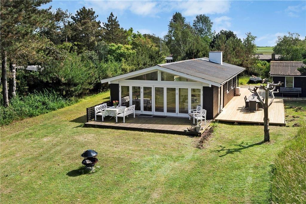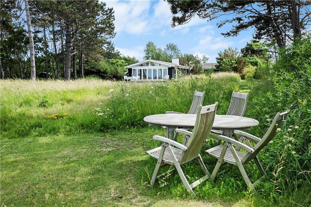 Das Haus befindet sich auf einem 4.160 m² großen Naturgrundstück, das sich bis an das Wasser erstreckt. Die große Holzterrasse umgibt nahezu das gesamte Haus und bietet Ihnen daher beste Möglichkeiten, zu jeder Zeit und ganz nach persönlicher Vorliebe, ein sonniges, schattiges oder windgeschütztes Plätzchen zu finden. Dank der vorhandenen Gartenmöbel, des Grills und der Feuerstelle dürfen Sie sich auf herrliche Sommerabende voller Gemütlichkeit freuen.