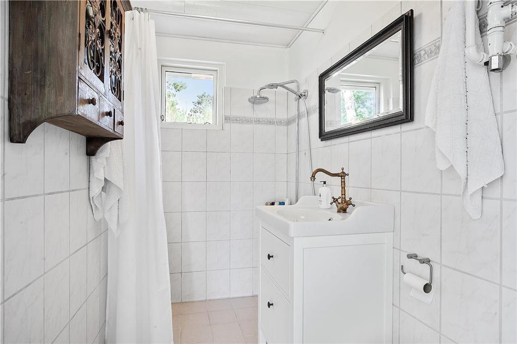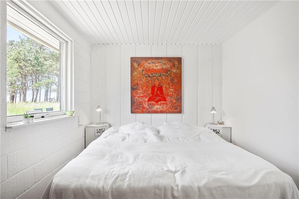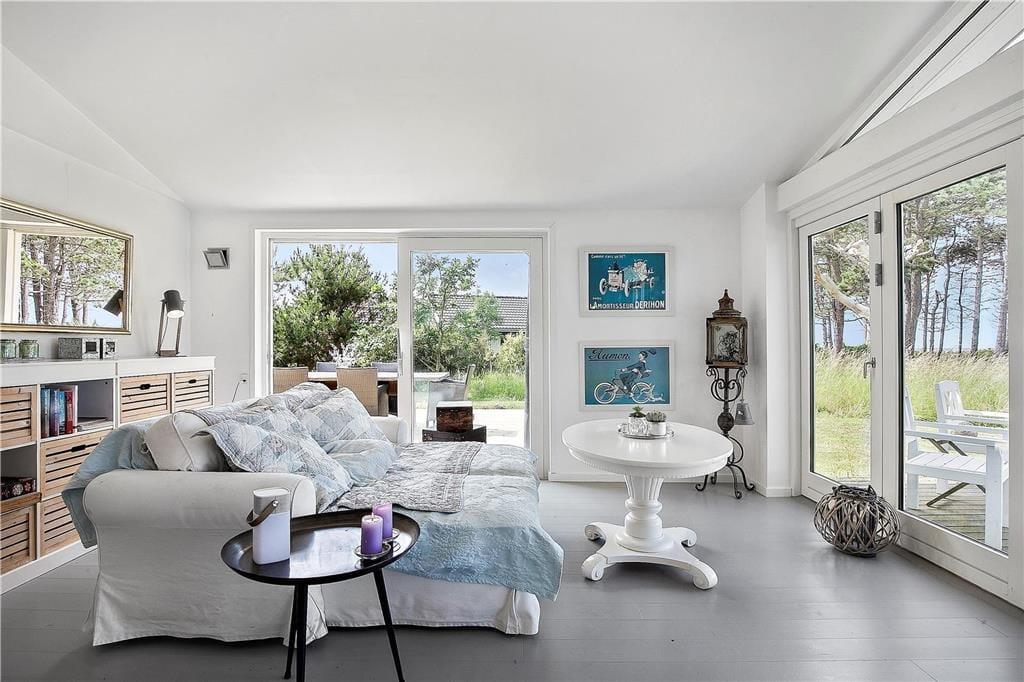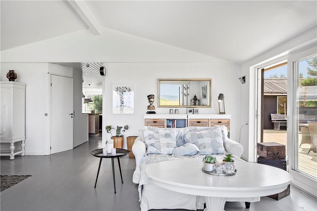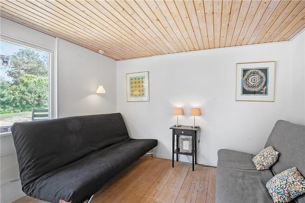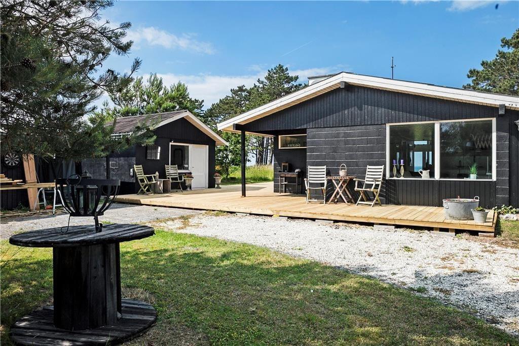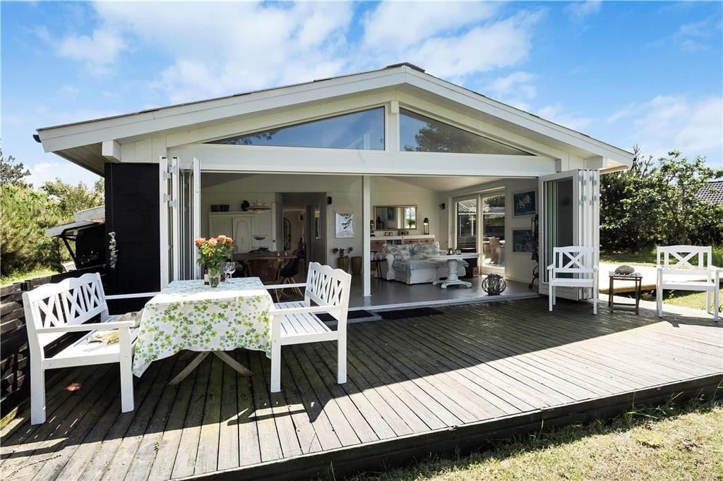 Die Panoramaaussicht über das Wasser und die Attribute zauberhaft, gemütlich, hell und wunderbar charakterisieren dieses Ferienhaus mit wenigen Worten. Das Ferienhaus empfängt Sie mit einem kombinierten Küchen- und Wohnbereich sowie einem weiteren Wohnbereich, bei dem die große Fensterfront zur Wasserseite komplett geöffnet werden kann. Die Küche beinhaltet einen Herd mit Ceranfeld und eine Spülmaschine. Außerdem gibt es einen Kühlschrank mit Gefriermöglichkeit. Vom Wohnbereich genießen Sie direkten Zugang zur Holzterrasse, die direkt an das Haus anschließt. Im Wohnraum dürfen Sie sich zudem auf ein Chaiselongue-Sofa und einen Fernseher freuen. Fernseher mit Zugriff auf Viaplay, Tv2 Play, HBO, Netflix, DR über Webbrowser Der andere Wohnbereich besticht mit einem fantastischen Ausblick auf das Meer und über die Landschaft. Dank der großen, komplett zu öffnenden Fensterfront gelangen Sie außerdem auf eine Terrasse mit einem ganz einmaligen Panoramablick. Kamin, Sofa, Sessel und ein guter Essplatz sind ebenfalls in diesem Raum enthalten. Das mit einem Fliesenboden versehene Badezimmer verfügt über eine Duschnische, eine Waschmaschine und eine Fußbodenheizung. Im Hauswirtschaftsbereich stehen eine Waschmaschine und eine Mikrowelle für Sie bereit. Die Schlafplätze verteilen sich auf zwei Schlafzimmer mit jeweils einem Doppelbett. Weitere Schlafplätze sind in Form zweier doppelter Schlafsofas im Nebengebäude untergebracht. Das herrliche Ferienhaus wird mittels des Kamines, einer Wärmepumpe und Elektroheizungen beheizt.
