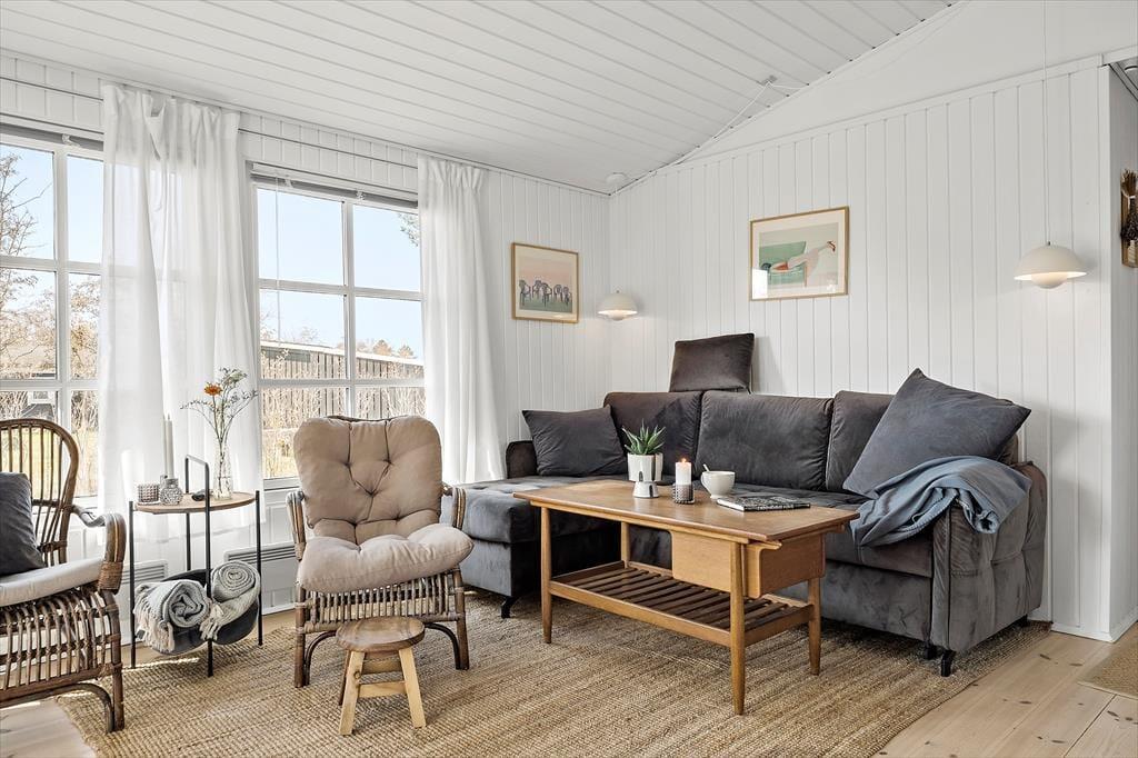 Treten Sie hinaus in die wunderschöne Natur, lesen Sie ein gutes Buch auf der gemütlichen Terrasse oder entspannen Sie auf der Sonnenliege. Das Haus verfügt über mehrere Terrassen und bietet zahlreiche Aktivitäten für Kinder und Naturliebhaber. Im Garten gibt es eine Schutzhütte, in der Sie unter freiem Himmel übernachten können, sowie eine Schaukel mit Rutsche für die Kleinen. Machen Sie einen kurzen Spaziergang vom Ferienhaus – nur 225 Meter die Straße hinunter – und nehmen Sie ein erfrischendes Bad am Strand oder erkunden Sie die wunderschöne Landschaft auf einer längeren Wanderung. Lassen Sie Ihre Sommertage stilvoll ausklingen mit einem köstlichen Grillabend unter freiem Himmel und genießen Sie das Leben draußen.