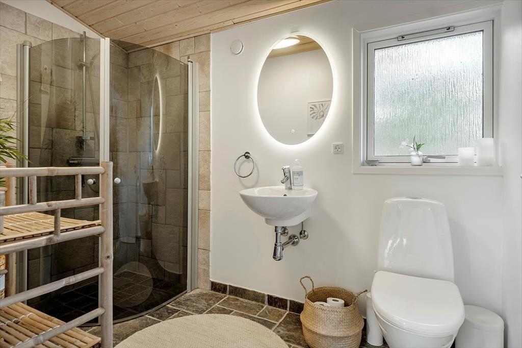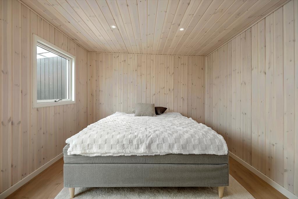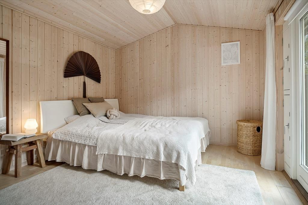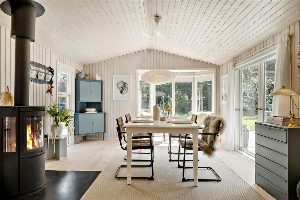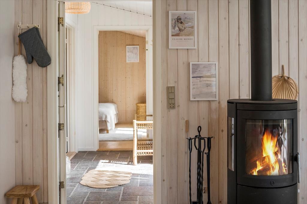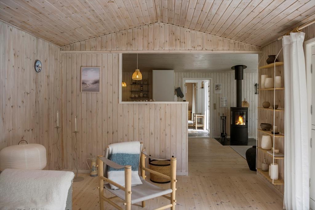 Willkommen in deinem Ferienhaus: Im Inneren erwartet Sie ein gemütlicher Eingangsbereich, der Sie weiter in die offene Küche führt. Diese ist mit dem Ess- und Wohnbereich verbunden und perfekt für gemeinsame Stunden geeignet. Das Haus verfügt über ein komfortables Schlafzimmer mit Doppelbett sowie ein schönes, helles Badezimmer mit Dusche. Zusätzlich gibt es ein geräumiges Annex mit einem weiteren Doppelbett. Die Einrichtung des Ferienhauses ist sehr einladend, geschmackvoll gestaltet und in hellen Farben gehalten, was eine wunderbar ruhige Atmosphäre schafft. An kühleren Tagen können Sie gerne den Kaminofen anfeuern und die Ruhe und typische Ferienhausstimmung genießen.