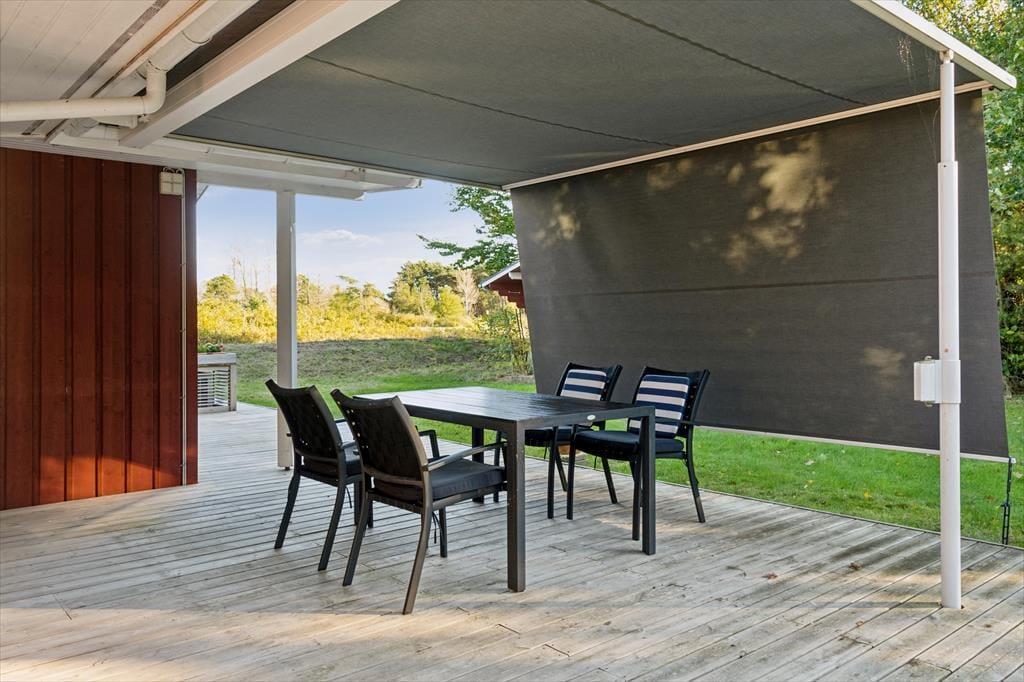 Genieße das Leben im Freien: Das Haus liegt in grünem Umfeld. Treten Sie hinaus auf die große, gemütliche Terrasse und in den gepflegten Garten. Hier können Sie Sonne, Ruhe und Entspannung pur erleben. Das Grundstück grenzt direkt an das Vogelschutzgebiet, Weiden mit Rindern und vor allem an das Gewässer Vejlen – die Aussicht ist also einfach großartig. An der Westseite des Grundstücks spenden hohe, alte Bäume wohltuenden Schatten und vermitteln ein Gefühl von Waldnähe. Außerdem gibt es großzügige Obstbäume mit Äpfeln, Birnen und Pflaumen.