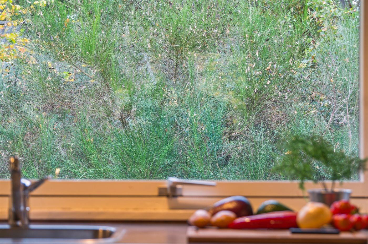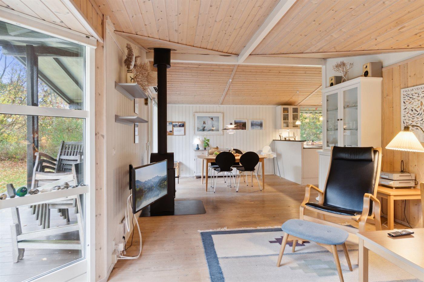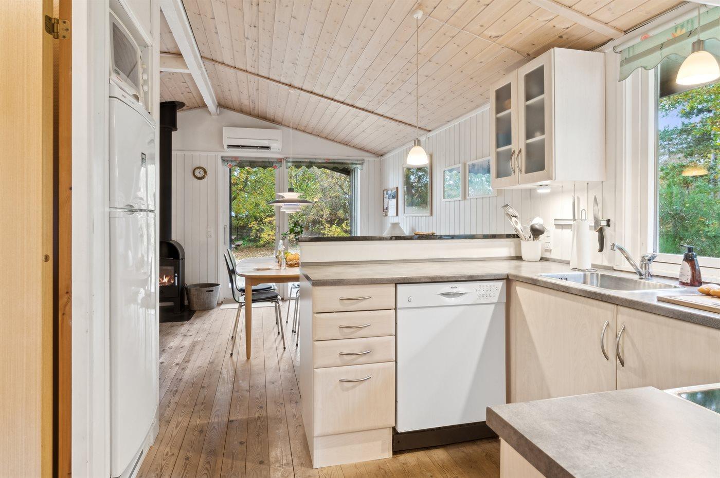 Das Haus wird energieeffizient mit einer Luft-Luft-Wärmepumpe beheizt, und es gibt einen Kaminofen für gemütliche Stunden.