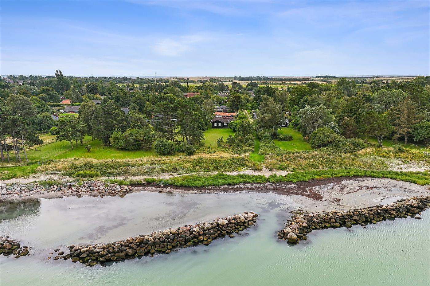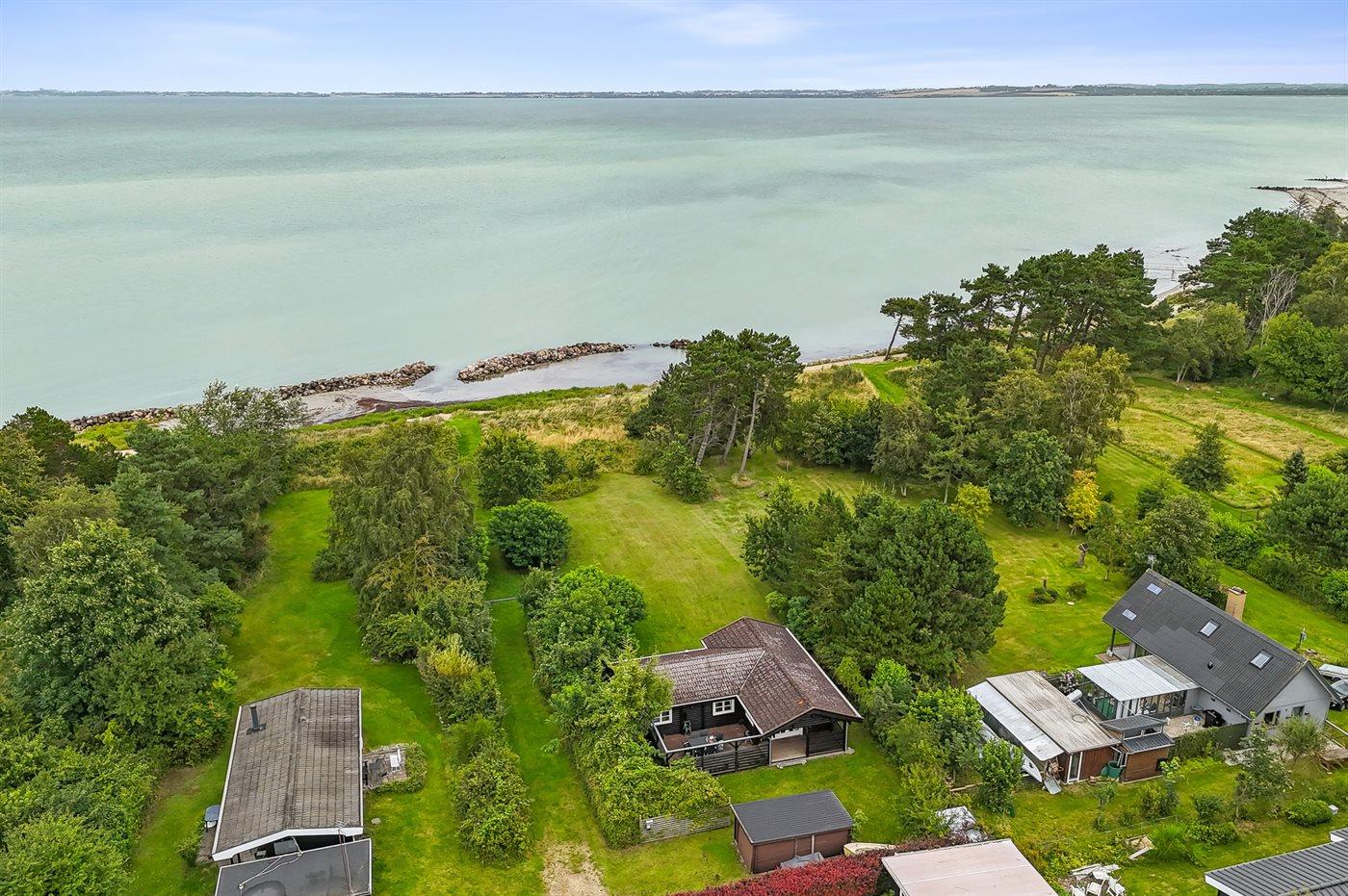Charmantes Blockhaus direkt am Meer auf der ruhigen Halbinsel Reersø mit Sandstrand und herrlichem Blick.