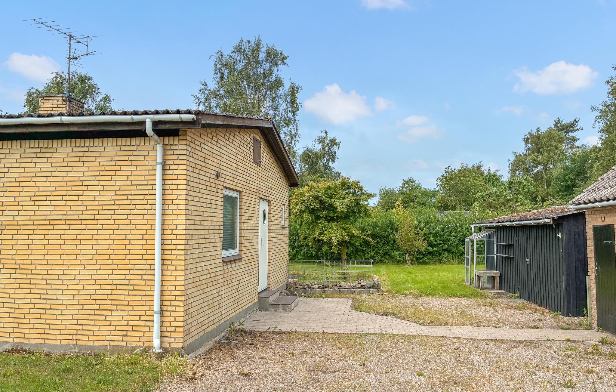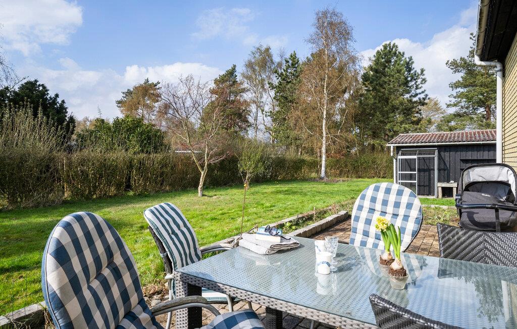 Gemütliches Ferienhaus nahe Reersø Strand mit Terrasse und Gartenmöbeln für erholsame Urlaubstage.