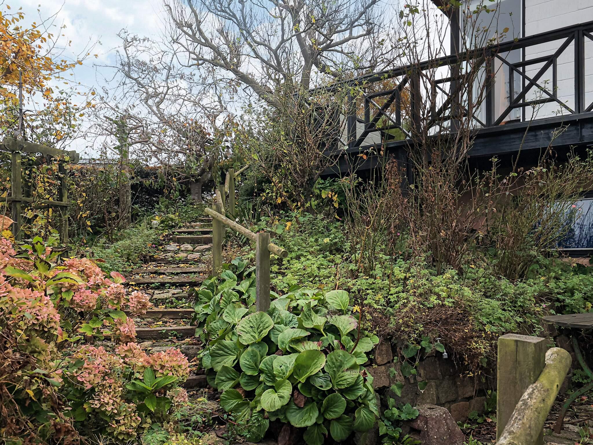 Der Garten, die Pergola und die Holzterrasse sind schön bepflanzt, gemütlich und weitgehend uneinsehbar.