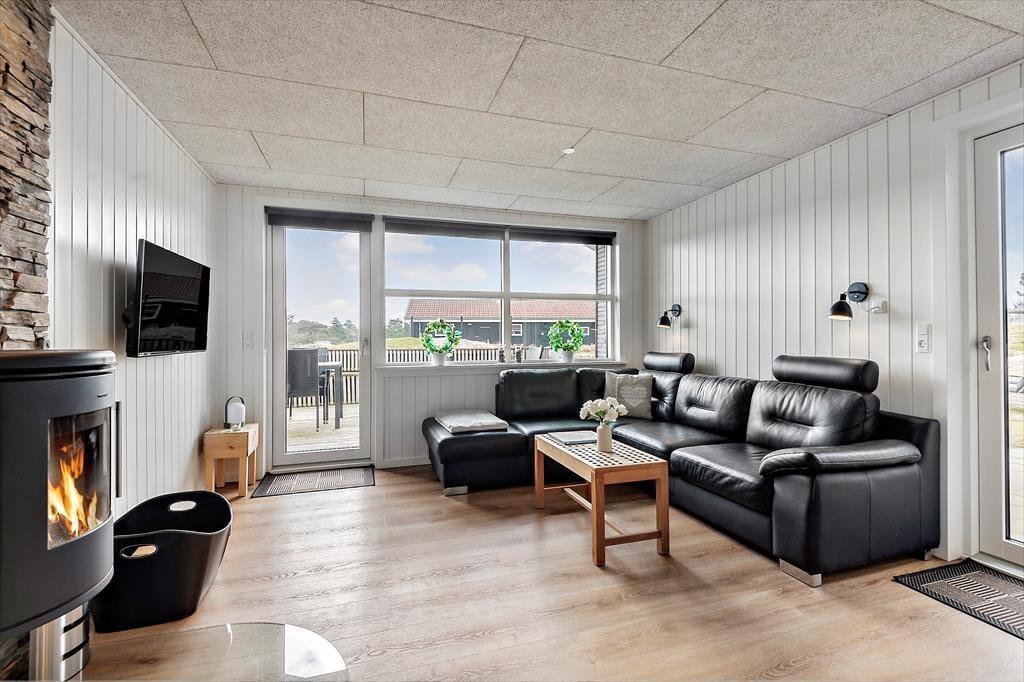 Vom Wohnzimmer aus hast du einen einfachen Zugang zu den schönen Terrassen, die sich um das Ferienhaus herum erstrecken. Nimm deinen Kaffee mit nach draußen in die Sonne, wenn du gerne an der frischen Luft sitzt und schon am Morgen dem Vogelgezwitscher lauschen möchtest. Und wenn du keine Lust hast, aus dem Gartenstuhl aufzustehen, kannst du problemlos stundenlang sitzen bleiben - das ist eine der Freiheiten, die man sich im Urlaub gönnen kann. Wenn du Kinder mit im Urlaub hast, werden sie sicher ihr Bestes tun, um dich zum Spielen zu bringen oder mit ihnen auf dem Rasen Fangen oder Ball zu spielen. Und zum Glück gibt es dafür auch viel Platz auf dem großen Naturgrundstück.