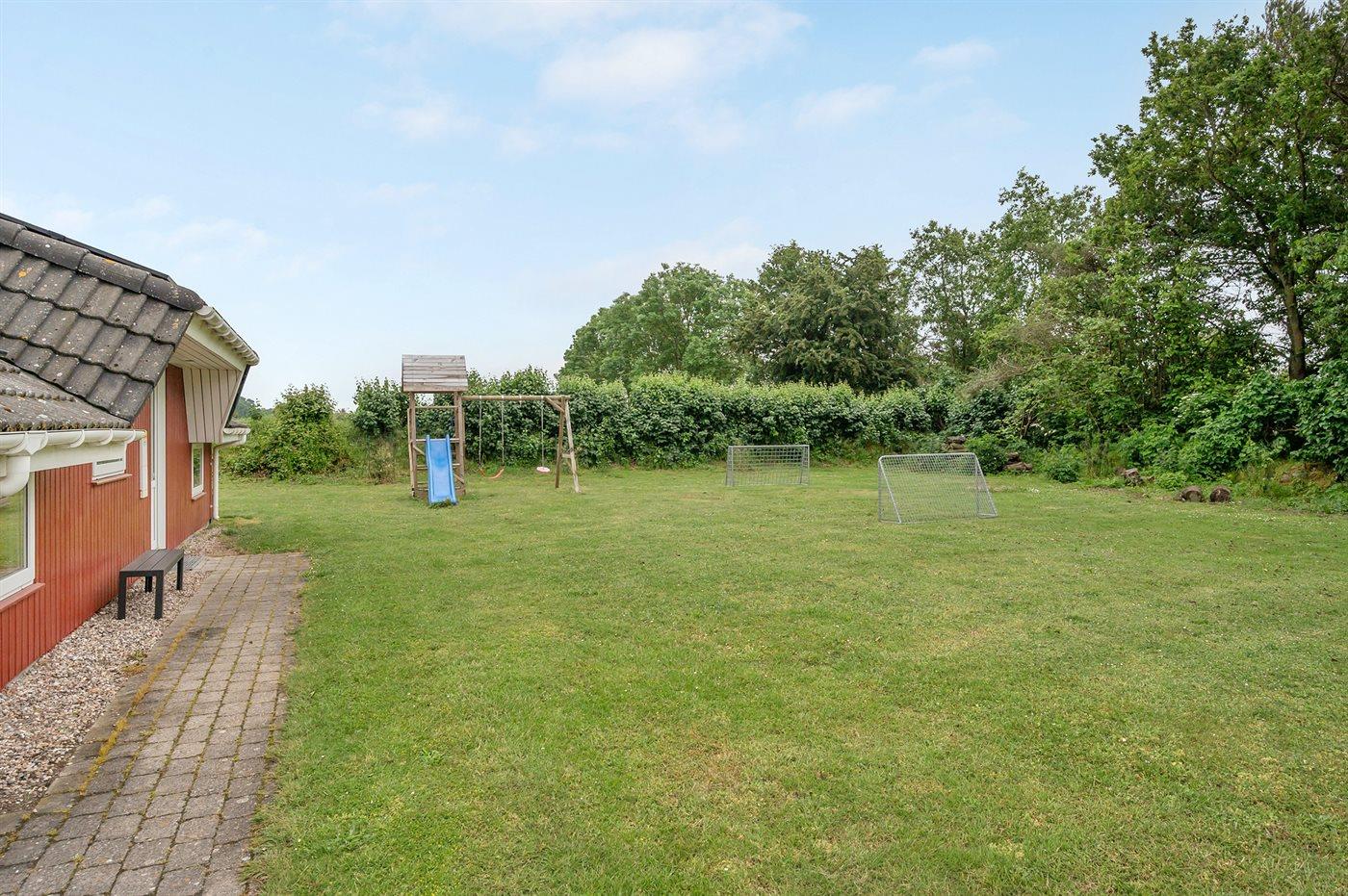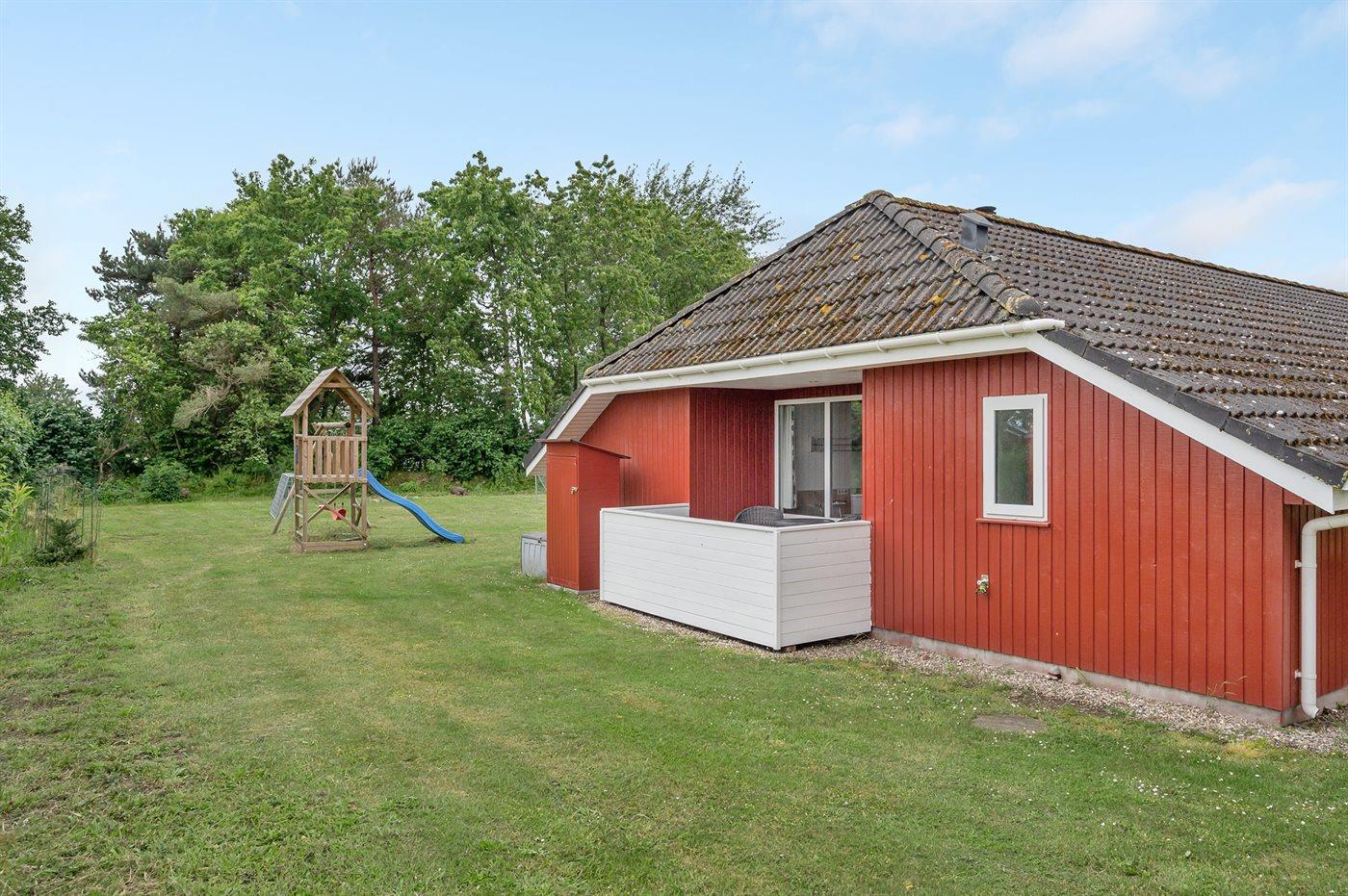 Die Ferienunterkunft liegt auf einem 1397 m² großen Gartengrundstück. Die Entfernung zum Meer beträgt 1100 m. Die nächste Einkaufsmöglichkeit liegt 1900 m entfernt. In einem Abstand von 6500 m gibt es einen Golfplatz. Es steht ein 29 m² Terrassenareal zur Verfügung. Außerdem gibt es 15 m² überdachte Terrasse. Schaukel. Sandkasten. Spielturm. Rutsche. Fußballtor.Lagerfeuerstelle. Es steht ein Grill zur Verfügung. Parkplatz auf dem Grundstück.