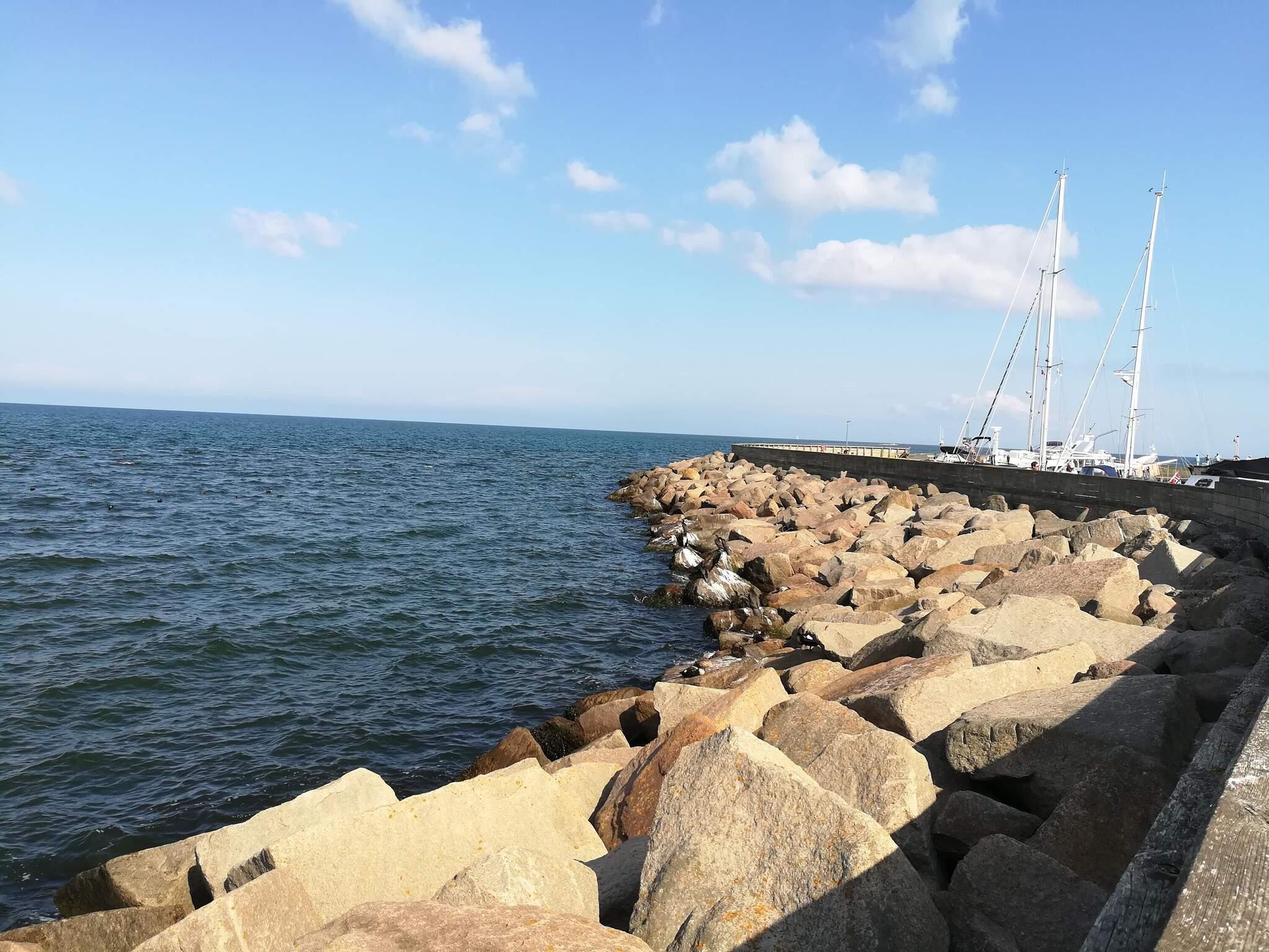 Von der insgesamt 50 m² großen Terrassenfläche nach Osten, zur Meeresseite hin ausgerichtet, sind etwa 10 m² an der Südseite überdacht. Im Haus gibt es u.a. ein größeres Badezimmer mit Whirlpool und Sauna sowie eine Gästetoilette. Drei Schlafzimmer, darunter zwei mit je einem Doppelbett und ein drittes Zimmer mit zwei Etagenbetten. Auch vom Küchenfenster aus können Sie während des Kochens den Ausblick zum Meer genießen. Offener Küchen-/Wohnbereich im Haus, ideal für das Familienleben, inklusive Holzofen, Fußbodenheizung und WLAN. Sitzecke mit etwas Meerblick. Nur 200 m zur Ostseeküste.