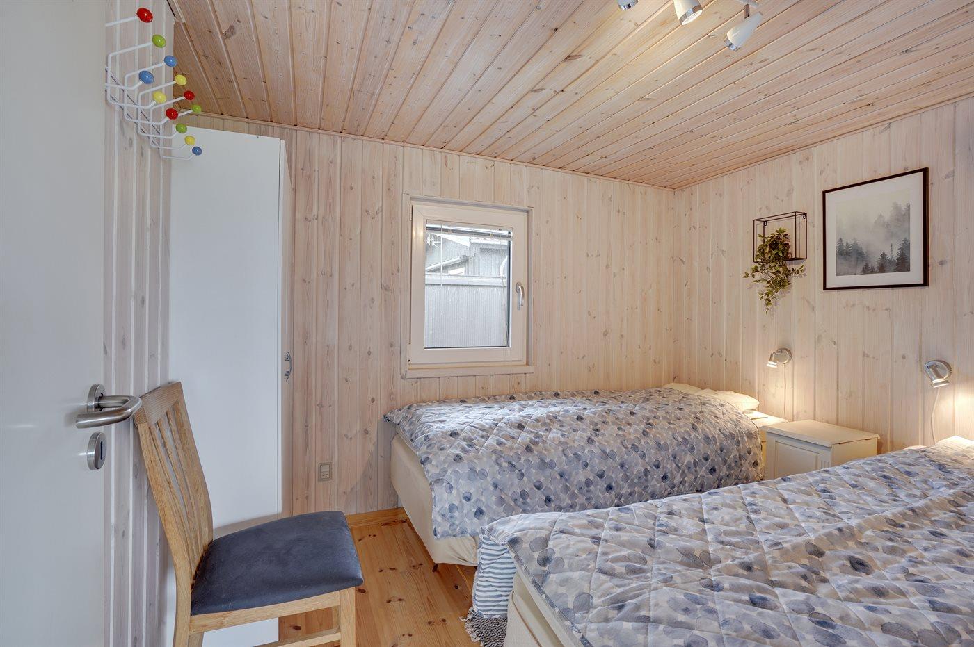 Die Schlafplätze verteilen sich auf 2 Schlafräume. 2 Schlafplätze in einem Doppelbett. 2 Schlafplätze in Einzelbetten.
