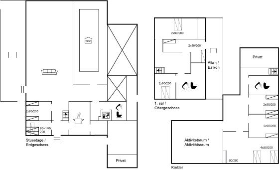 Die Schlafplätze verteilen sich auf 8 Schlafräume. 2 Schlafplätze in einem Doppelbett. 16 Schlafplätze in Einzelbetten. 3 Schlafplätze in Etagenbetten. Ferner stehen 2 Kinderbetten zur Verfügung.