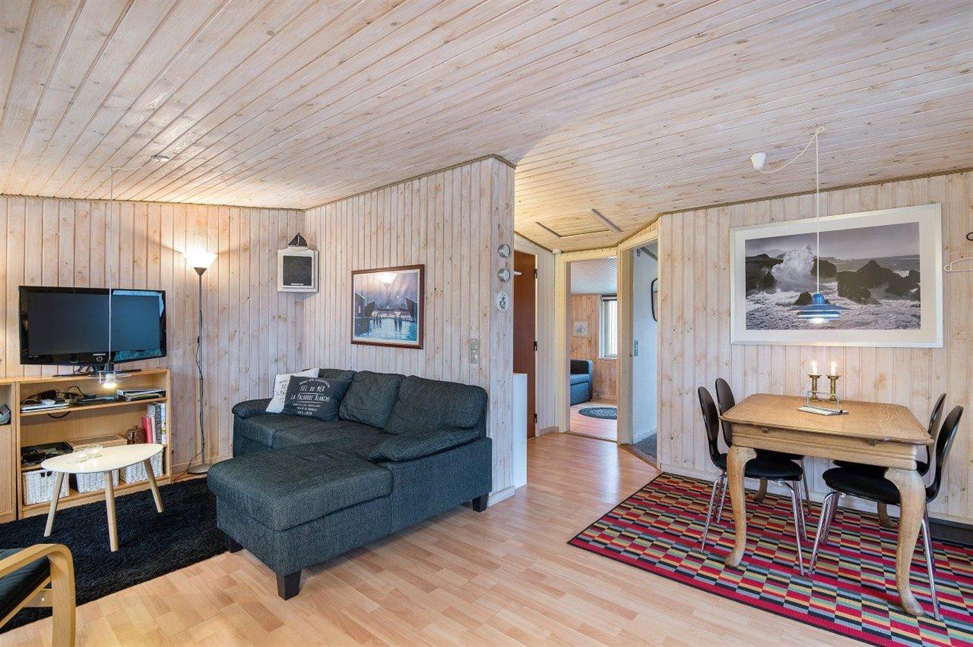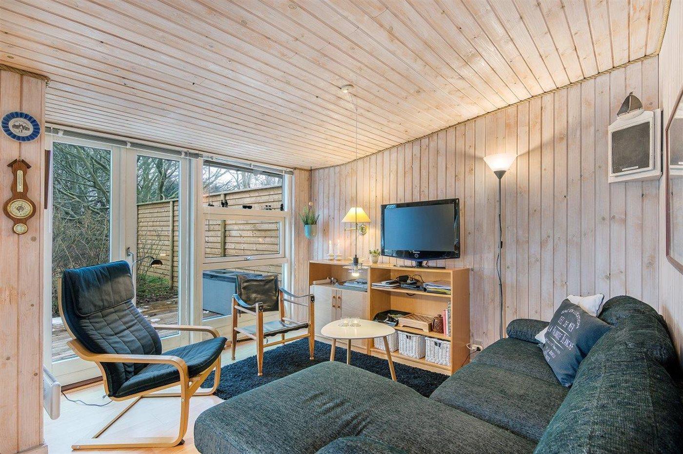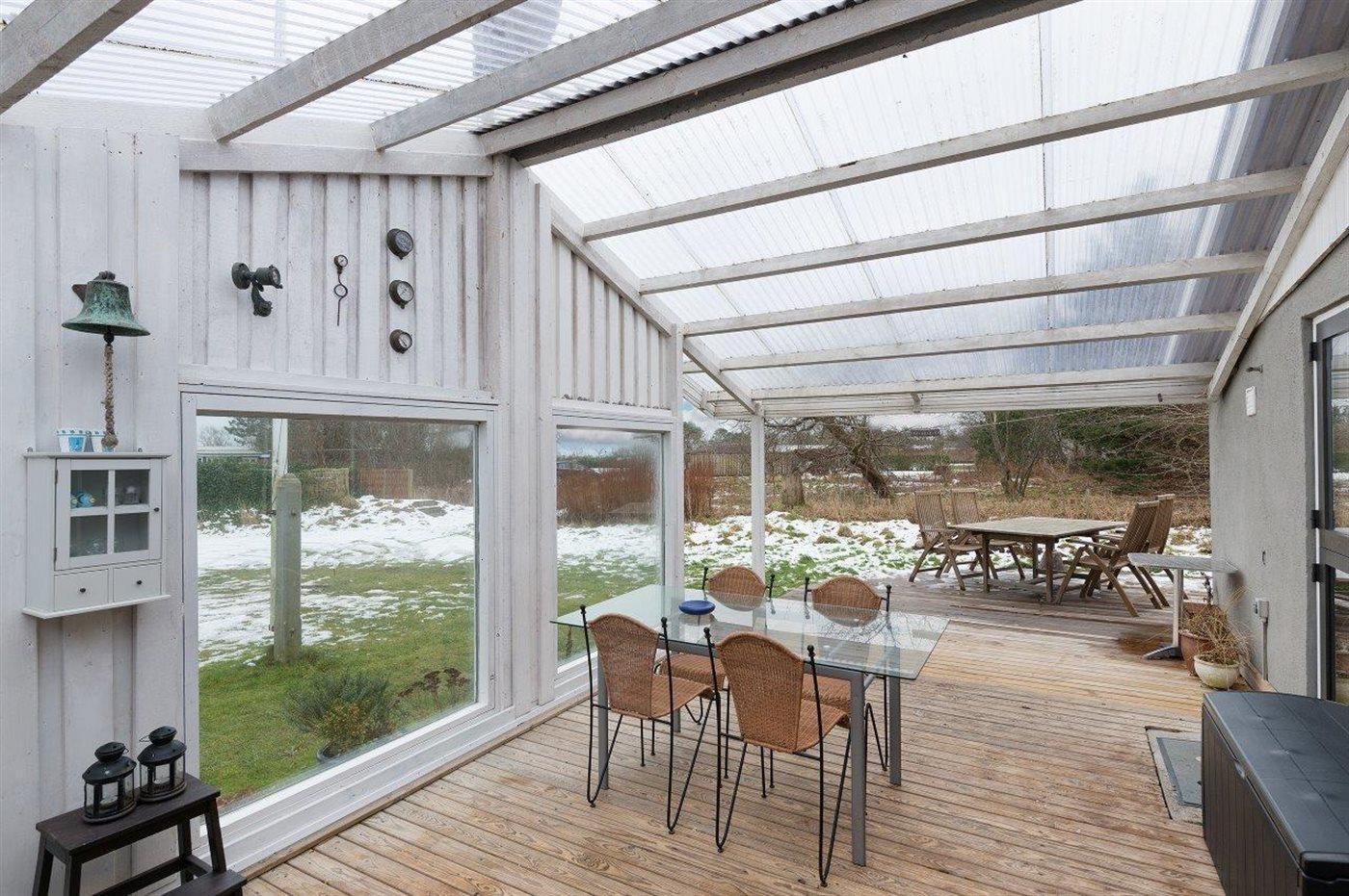 Gemütliches kleines Ferienhaus, welches zurückgezogen auf einem teilweise geschlossenen Grundstück liegt, nahe an Wasser und kinderfreundlichem Badestrand. Zum Ferienhaus gehört eine schöne und fast ganz geschlossene und überdachte Terrasse mit großen Fenstern zum Garten hin, die bei allem Wetter genutzt werden kann.