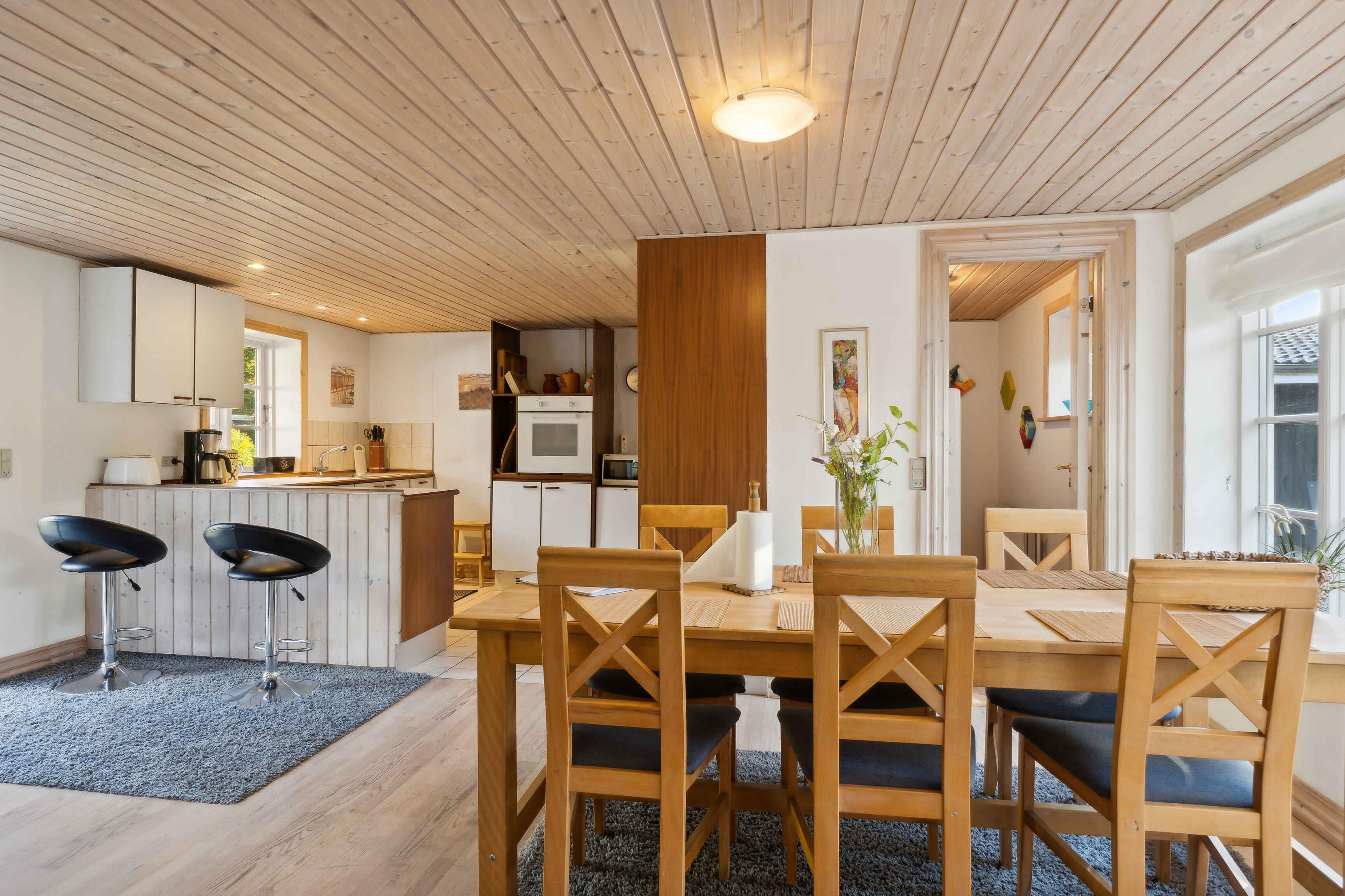 Dieses Ferienhaus in Lyngså ist ideal für einen Urlaub in der Nähe der Natur und des Strandes. Nur 200 Meter vom Wasser entfernt können Sie einen kinderfreundlichen Strand und eine ruhige Umgebung genießen. Das Haus bietet Platz für 8 Erwachsene und zwei Kinder. Die Etagenbetten sind nur für Kinder bis zu 12 Jahren geeignet. Die Umgebung des Ferienhauses in Lyngså bietet wunderbare Naturerlebnisse und Aktivitäten für die ganze Familie. Der nahegelegene Strand ist ideal für Kinder und zum Baden, dank seines ruhigen und flachen Wassers. Hier können Sie Tage mit Sonne, Sand und Meer verbringen. Naturliebhaber haben viele Möglichkeiten. Unternehmen Sie Spaziergänge im Professorens Plantage oder erleben Sie die Vogelwelt im nahegelegenen Stensnæs-Wildreservat. Sæby, mit seinem historischen Hafen, Cafés und Fachgeschäften, liegt nur neun Kilometer entfernt und ist ideal für einen gemütlichen Ausflug mit gutem Essen und Einkaufsmöglichkeiten. Das 131 m² große Haus bietet vier Schlafzimmer und acht Schlafplätze, ideal für Familien oder Gruppen. Es gibt auch mehrere Terrassen, auf denen Sie das dänische Sommerwetter genießen können. Das dazugehörige Nebengebäude verfügt über eine Sauna und einen Whirlpool, perfekte Einrichtungen für Entspannung das ganze Jahr über.