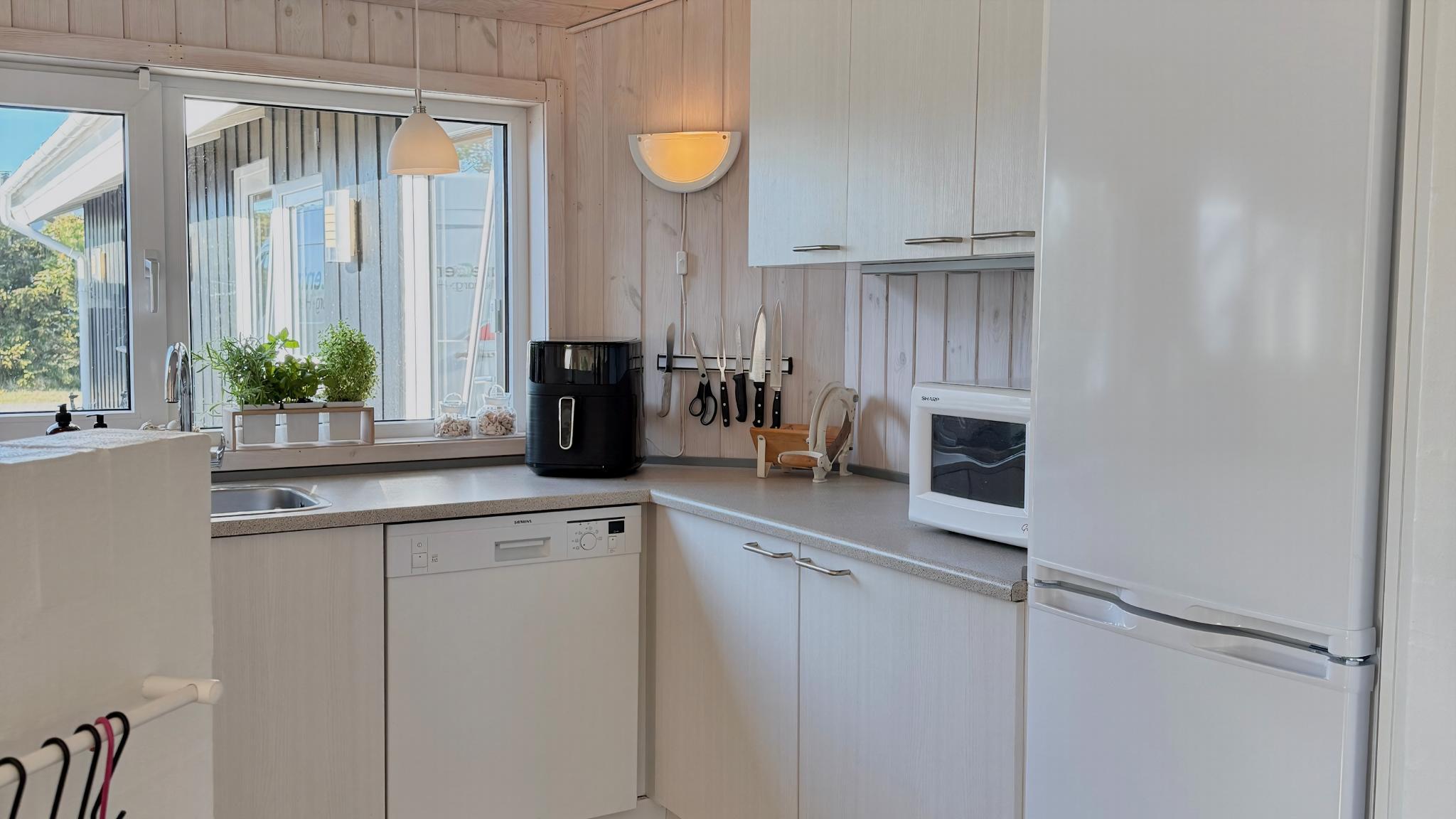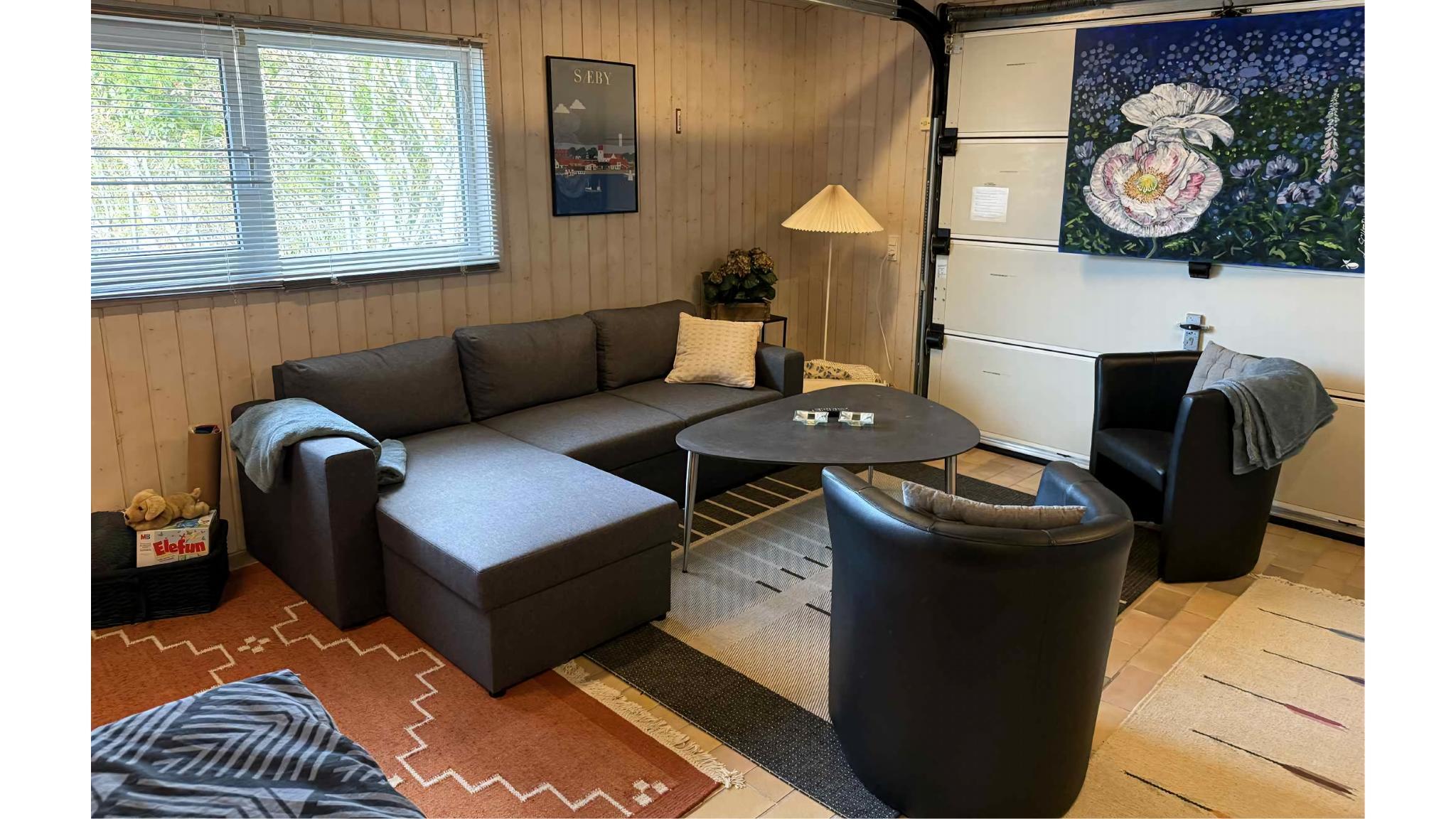 Nur 50 Meter von der Küste entfernt befindet sich dieses charmante Ferienhaus, in dem die Urlaubsstimmung beginnt, sobald die Tür geöffnet wird. Das Haus ist schlicht und funktional eingerichtet, mit Fokus auf Entspannung und Gemeinschaft – perfekt für Familien und Freunde, die einen ungestörten Urlaub in der Nähe von Natur und Meer wünschen. Das Haus liegt am Ende einer privaten Sackgasse und bietet drei Schlafzimmer mit Doppelbetten und ein Schlafsofa, insgesamt acht Schlafplätze. Es gibt ausreichend Platz für große und kleine Gäste. Küche und Wohnzimmer sind zu einem hellen, offenen Wohnbereich zusammengeschlossen, der zum Zusammensein, gemeinsamen Essen, Brettspielen oder einfach zum Ausruhen und Genießen der Aussicht durch die großen Fenster einlädt. Draußen kann man auf der nach Süden ausgerichteten Terrasse und im uneinsehbaren Garten, der zu Spiel und Entspannung einlädt, die Sonne genießen; von hier aus gelangt man direkt in ein geschütztes Naturschutzgebiet – alles nur einen Steinwurf vom Strand entfernt. Mit seinen 117 m² ist das Haus weder zu groß noch zu klein – es hat genau die richtige Größe für einen entspannten Urlaub. Außerdem gibt es einen zusätzlichen 27 m² großen Mehrzweckraum mit Tischfußball, einem Megaleg-Multitisch (9-in-1) und einem zusätzlichen Schlafsofa. Hier ist Platz für Spaß und Entspannung, egal bei welchem Wetter oder zu welcher Jahreszeit. Die Terrasse eignet sich ideal für Grillabende und lange Sommernächte unter freiem Himmel oder auf der überdachten Terrasse, während die Kinder sicher im uneinsehbaren Garten spielen können. Die Terrasse ist mit Gartenmöbeln, Liegestühlen und einem Gasgrill ausgestattet. Zwei Haustiere sind erlaubt. Die Umgebung versprüht Urlaubsflair. Der nahegelegene, kinderfreundliche Sandstrand lockt mit klarem Badewasser, Spaziergängen und wunderschönen Sonnenaufgängen – und man kann hier auch direkt von der Küste aus angeln, wenn man seinen Abendfang selbst zubereiten möchte. Sæby liegt in der Nähe und bietet gemütliche Cafés, ein lebhaftes Hafenviertel und gute Einkaufsmöglichkeiten. Es gibt außerdem reichlich Gelegenheit für Radtouren durch die hügelige Landschaft und spannende Begegnungen mit lokaler Kunst und Kultur. Hier finden Sie einen funktionalen, familienfreundlichen und stimmungsvollen Ausgangspunkt für Urlaubstage in der wunderschönen Umgebung Nordjütlands. Egal zu welcher Jahreszeit, das Haus und die Umgebung bieten den idealen Rahmen, um abzuschalten und gemeinsam Zeit zu verbringen.
