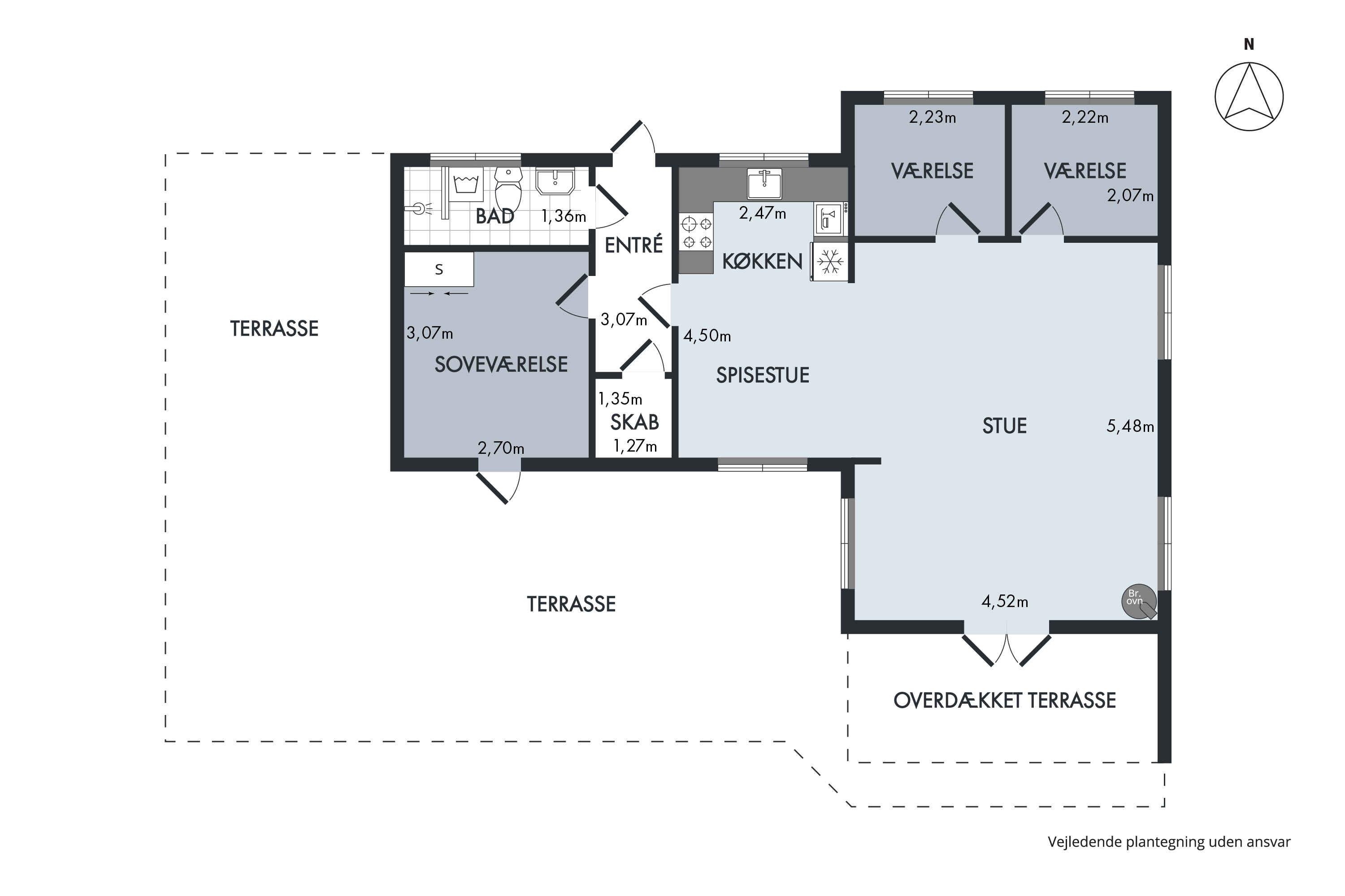 Endreinigung inkl. in der Mietpreis --- Außenwhirlpool ist gegen Mehrpreis verfügbar --- Willkommen in diesem schönen Ferienhaus in Lyngså mit attraktiver Lage – nah an Wasser und Wald. Am Ende einer gesperrten Straße direkt zur Professor's Plantage befindet sich dieses schöne und stimmungsvolle Ferienhaus – „Lynghytten“, in dem sowohl das Badezimmer als auch die Küche im Jahr 2021 renoviert wurden. Das Haus, das über 3 Schlafzimmer (6 Personen) verfügt, ist 67 m² groß und hat eine tolle Einrichtung: Eingangshalle mit Zugang zum Badezimmer mit Wäscherei und Waschmaschine/Trockner und „Hauptschlafzimmer“ auf einer Seite. Auf der anderen Seite liegt das Herzstück des Hauses; die geräumige Wohnküche und das Wohnzimmer. Die Küche ist gut ausgestattet mit allem, was Sie für ein großartiges Abendessen benötigen, und allen Haushaltsgeräten. Das Wohnzimmer ist gemütlich und geräumig und verfügt über bequeme Möbel in mehreren Abschnitten sowie einen Holzofen, eine Luft-Luft-Pumpe und eine doppelte Terrassentür, die zu einer überdachten Terrasse führt. Es gibt einen Fernseher mit Stofa-TV-Paket und WLAN. In Verbindung mit dem Wohnzimmer gibt es Zugang zu 2 weiteren Zimmern: Beide mit ¾-Bett und Aufbewahrung. Das Haus verfügt über eine 10m2 große überdachte Terrasse mit Loungemöbeln und eine große Holzterrasse mit Gartenmöbeln, Sonnenschirm, Grill und 2 Sonnenliegen. Entspannung und Familienzeit stehen hier definitiv im Vordergrund. Das Haus liegt auf einem Naturgrundstück, wo Tiere beobachtet werden können. Es gibt einen direkten Zugang zur Plantage des Professors und über einen Pfad entlang der Plantage direkten Zugang zum Strand (500 m). Sæby mit seiner Hafenumgebung, zahlreichen Einkaufsmöglichkeiten, Supermärkten und tollen Restaurants ist 8 km entfernt. Der Golfclub Sæby liegt nur 9,5 km entfernt und bietet eine wunderschöne Natur und Umgebung. Mit der Monta-App ist eine 11-kWh-Ladestation am Haus verfügbar Rauchen ist im Haus nicht gestattet. Optionaler Whirlpool kann direkt vom Eigentümer gebucht werden 2-4 Tage (1 Mal Wasser) 500 DKK. 5-7 Tage (2 Mal Wasser) 750 DKK. 8-11 Tage (3-mal Wasser) 1000 DKK. 12-14 Tage (4-mal Wasser) DKK 1250. Die Reinigung der Whirlpool erfolgt durch den Mieter – andernfalls wird eine Reinigungsgebühr von 500 DKK erhoben. Achtung: Wird nicht für gewerbliche Nutzung vermietet.