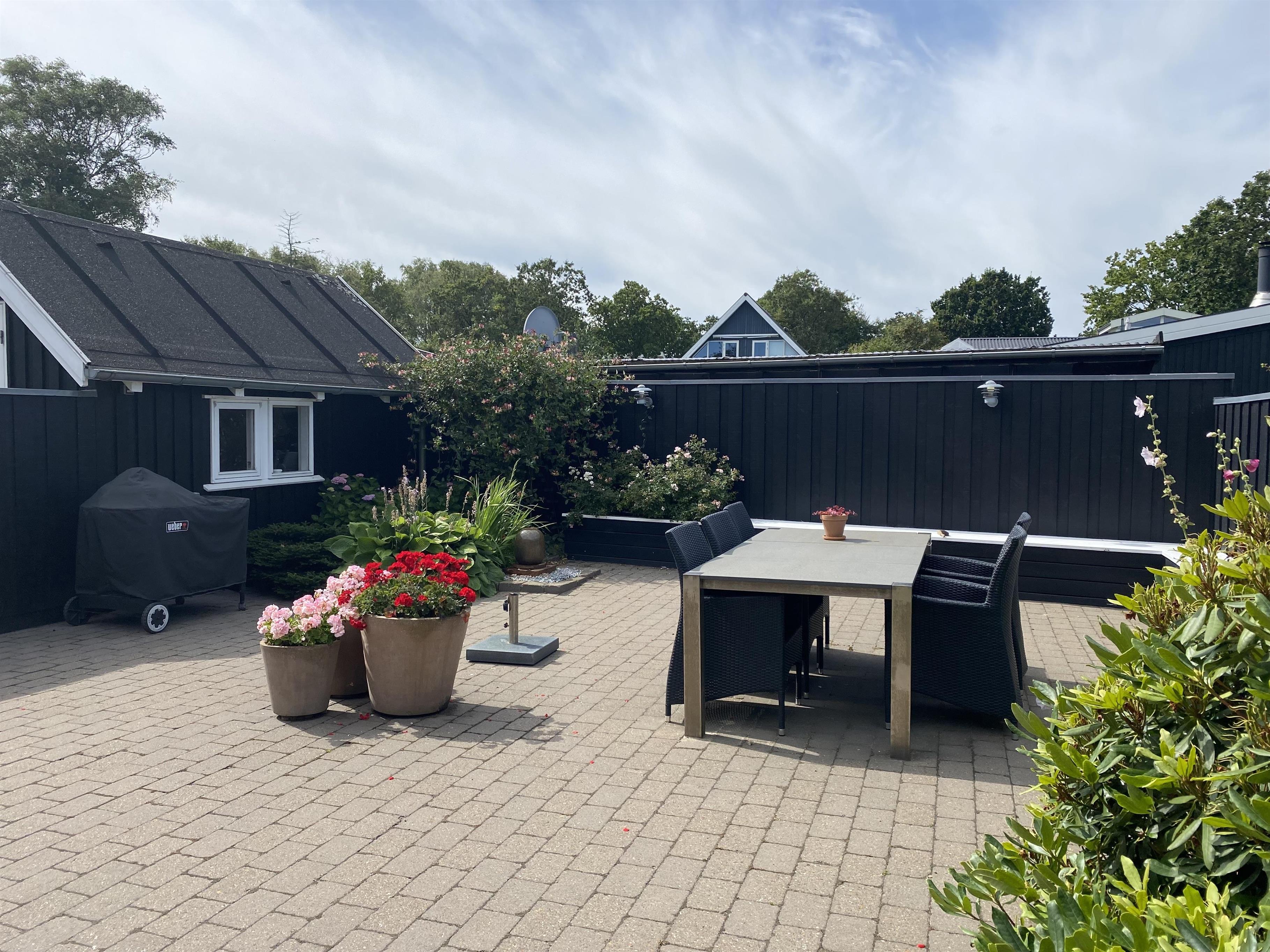 Draußen bietet das Haus einen großen, gemütlichen geschlossenen Innenhof und eine Holzterrasse an der Seite des Hauses, die in einen breiten Laubengang vor dem Haus übergeht. Dies bietet viele Möglichkeiten, die Sonne zu genießen, zu grillen oder einfach die frische Luft zu genießen.