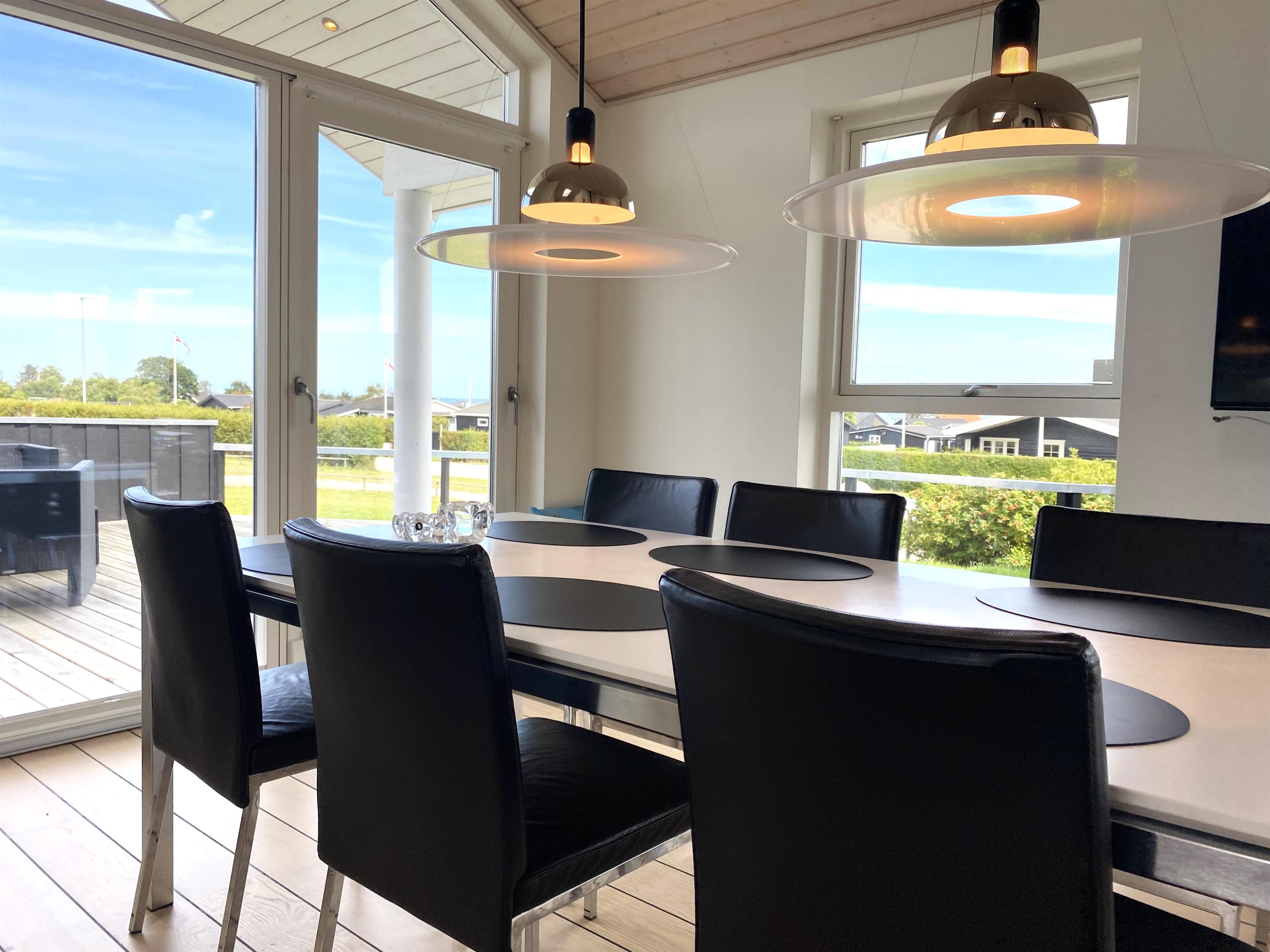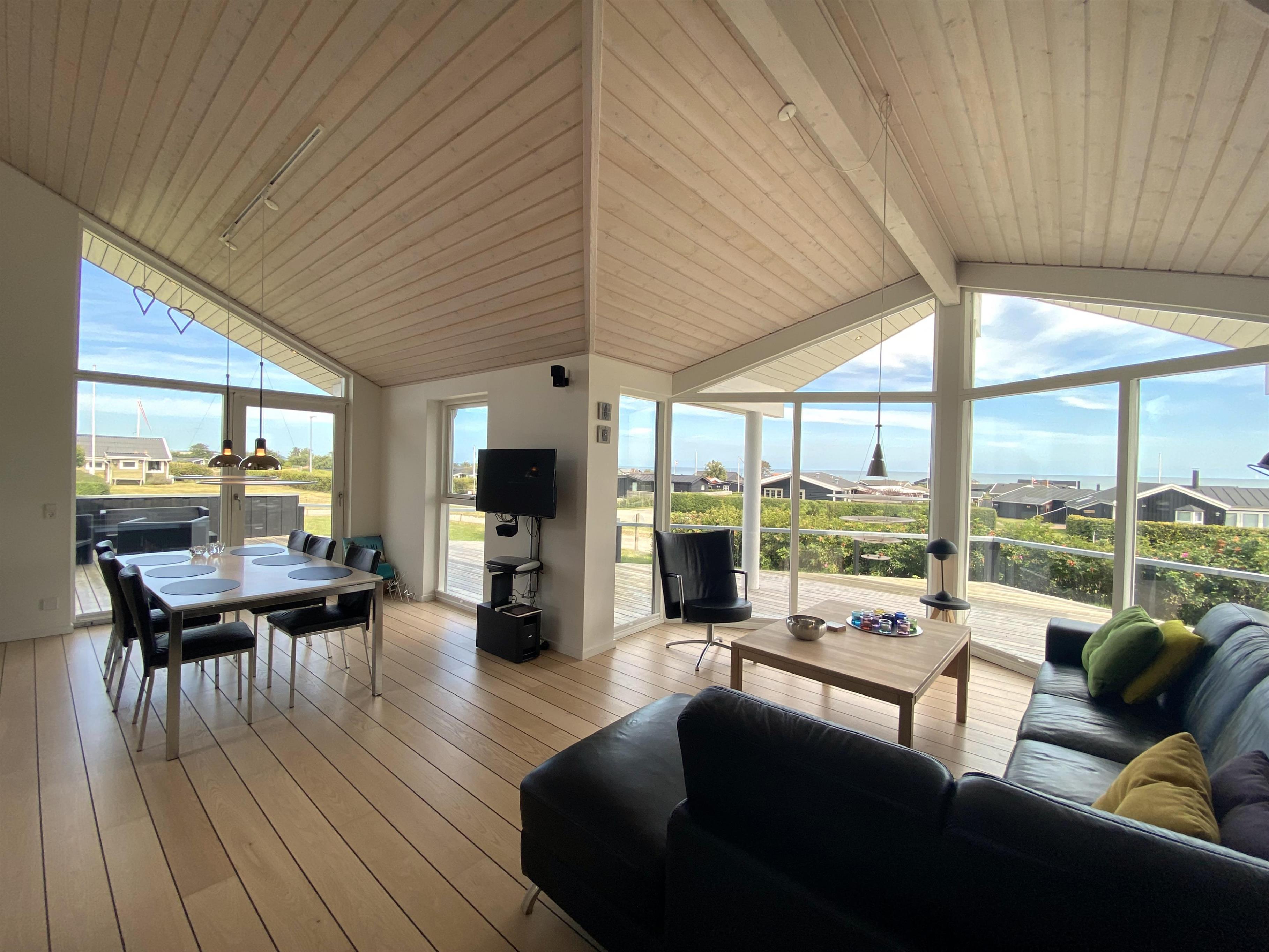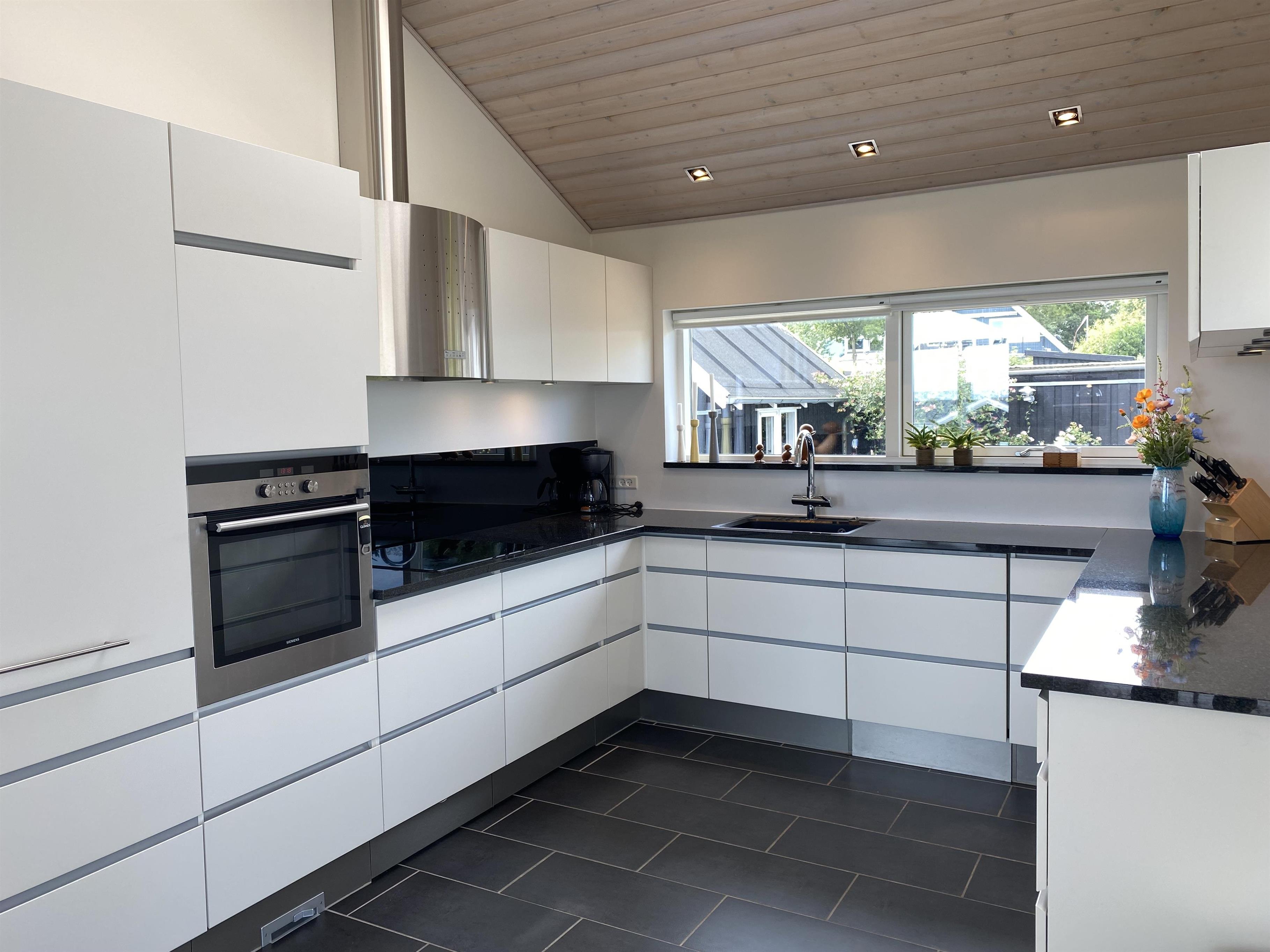 Küche, Esszimmer und Wohnzimmer sind als großer, offener Raum gestaltet, von dem aus Sie einen atemberaubenden Blick auf das Kattegat genießen können. Von der Couch aus können Sie das wunderschöne Panorama bewundern, Frederikshavn am Horizont sehen und den Schiffsverkehr beobachten. Die Küche ist hochmodern mit einer beeindruckenden Granitarbeitsplatte und allen notwendigen Küchengeräten ausgestattet. Es gibt auch einen Quooker, der sofort kochendes Wasser liefert. Im Nebengebäude finden Sie einen zusätzlichen Kühlschrank mit Gefrierfach, ideal für zusätzliche Lagerung. Das Badezimmer ist hell und elegant mit großen Schubladenschränken und einem wunderbaren Whirlpool, in dem Sie sich nach einem erlebnisreichen Tag entspannen können.