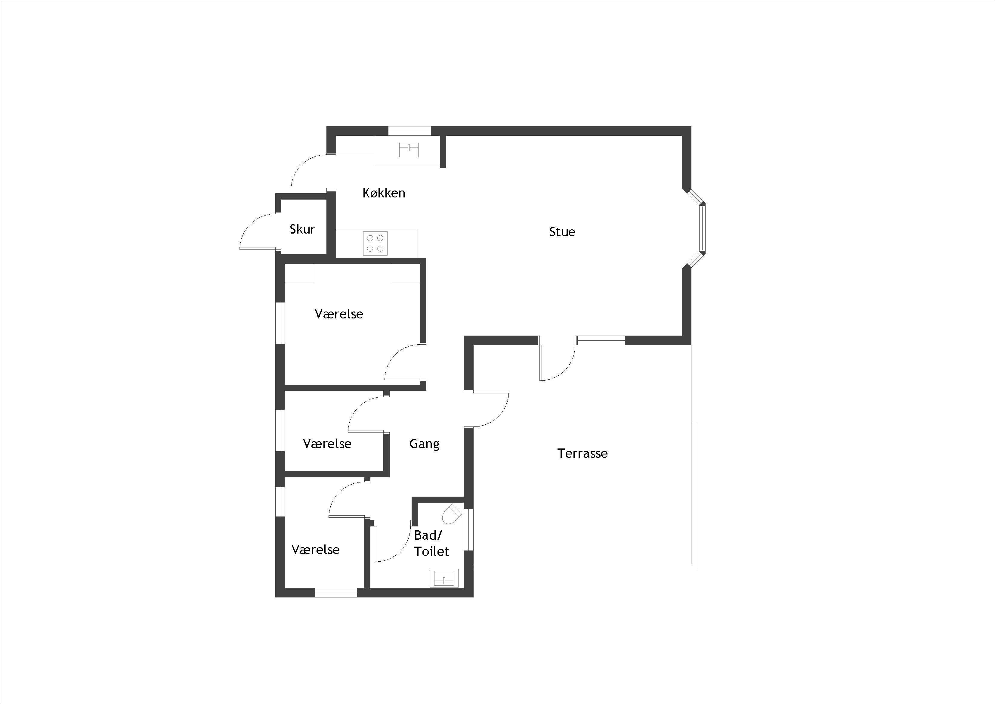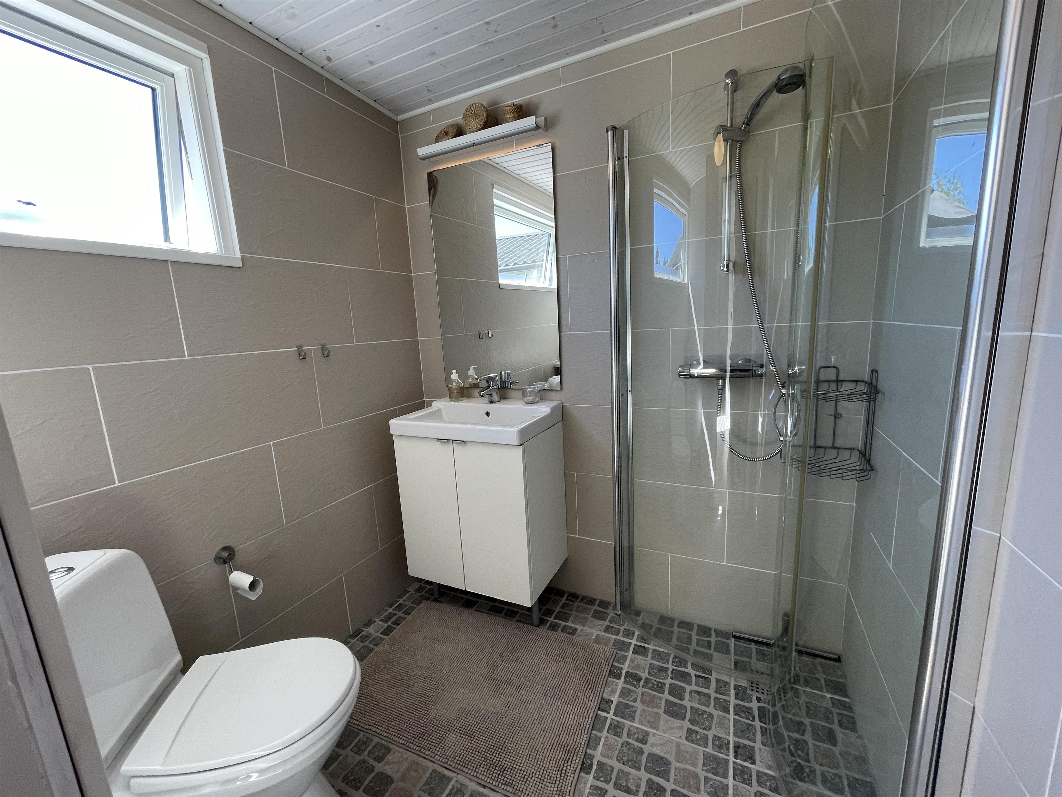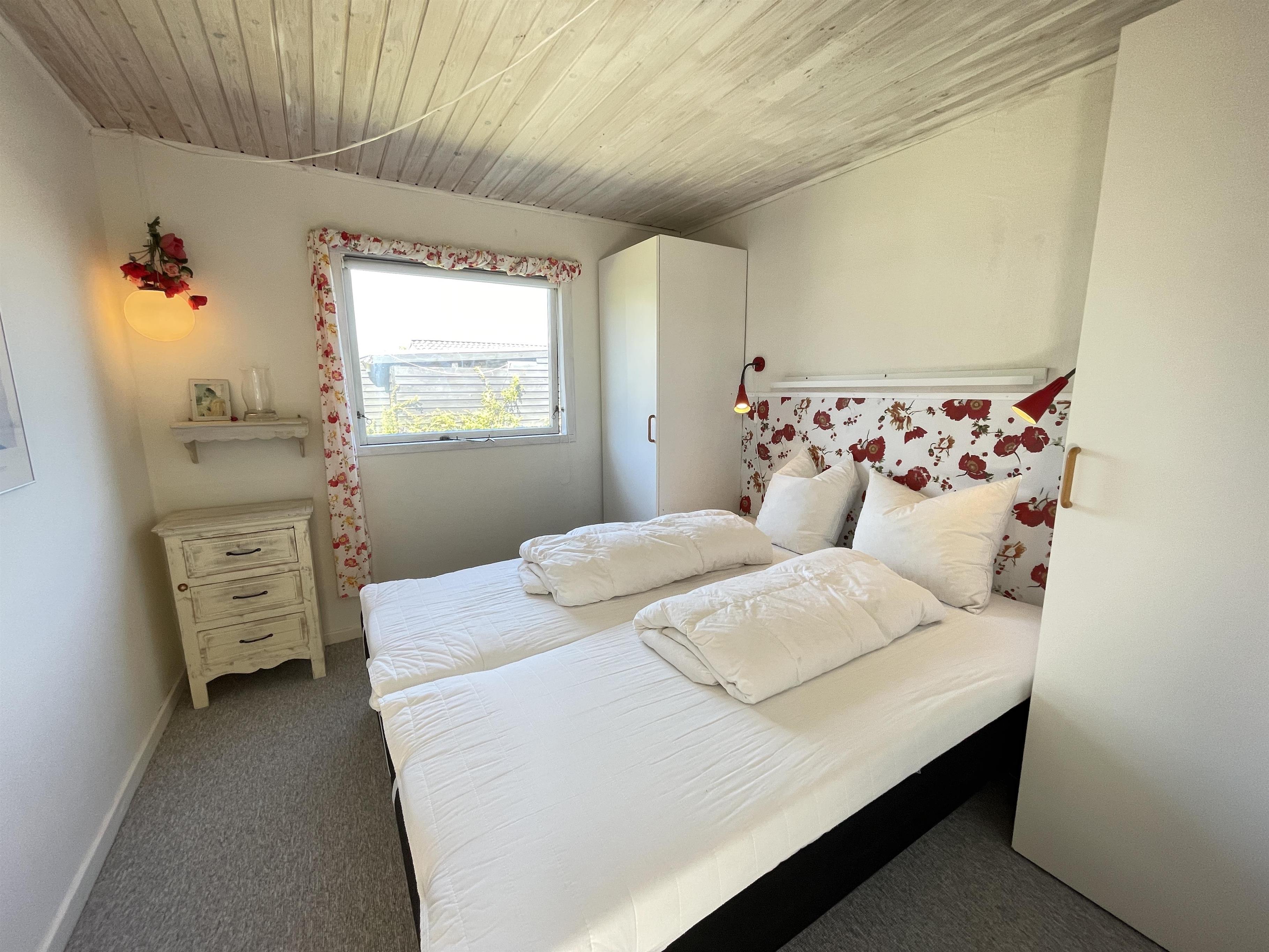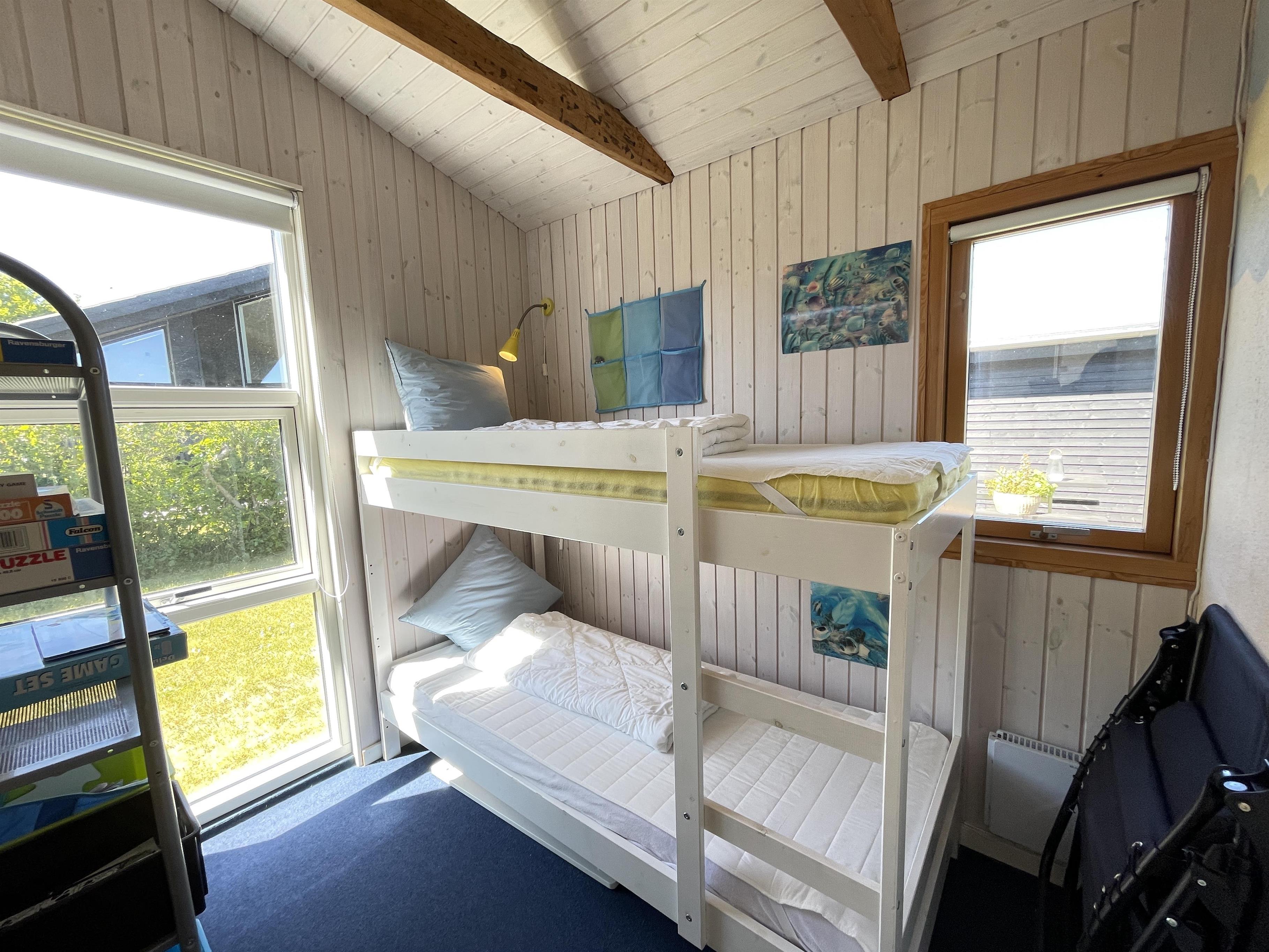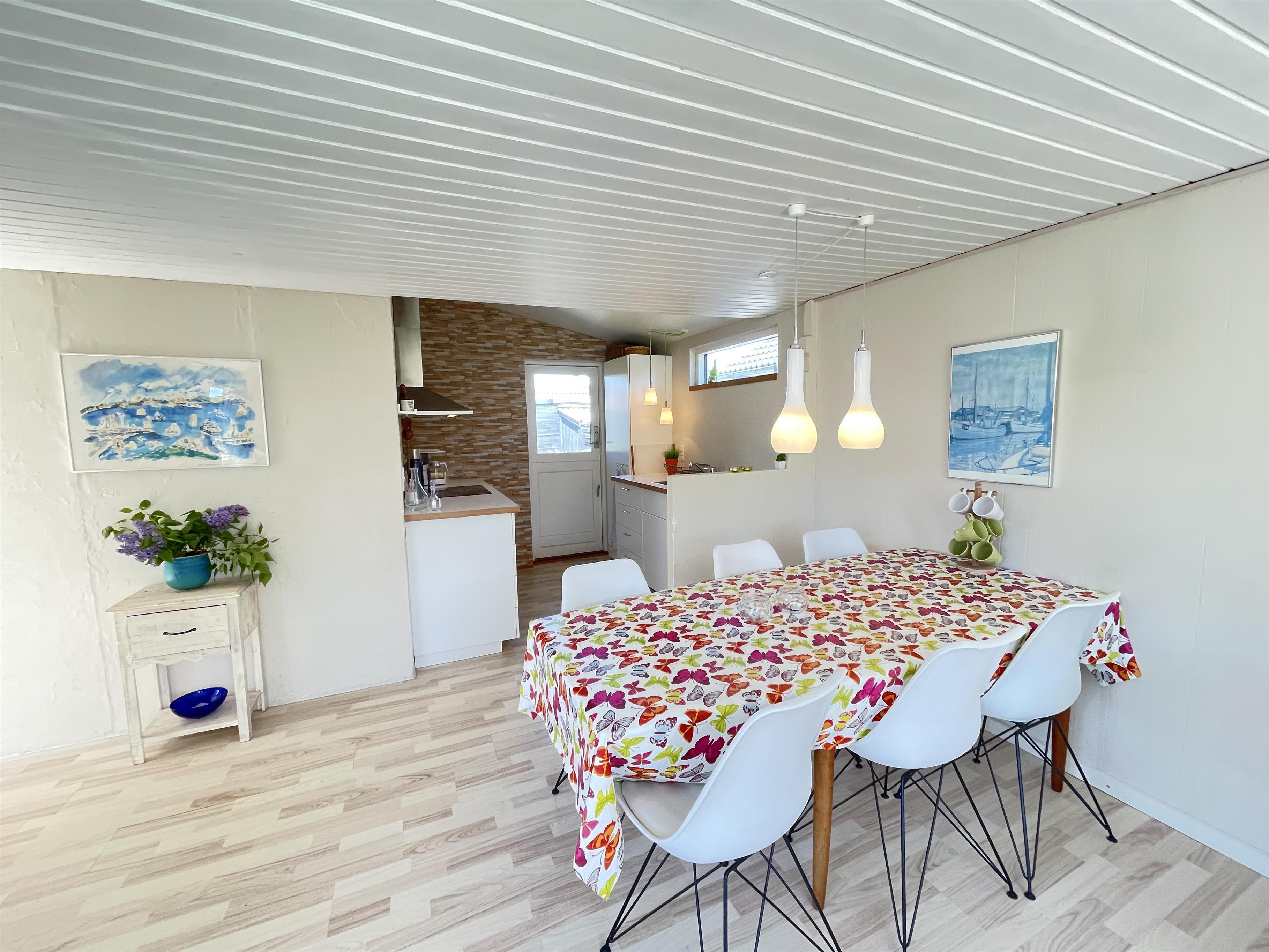 Das Haus ist klein, aber sehr funktional, mit drei Schlafzimmern und einer Küche/Wohnbereich mit Terrassentür und kleinem Erker, der einen Blick in den Garten bietet. Das Haus hat ein schön modernisiertes Badezimmer und eine generell schöne Einrichtung mit feinen Details. Es gibt eine Fußbodenheizung im Badezimmer, im Flur und im Küchenbereich. Eine kleine gemütliche abgeschirmte Terrasse, auf der man die Sonne oder Mahlzeiten während des Urlaubs genießen kann. Es gibt auch Schaukeln und einen Sandkasten für viele Stunden Spielspaß für die Kinder.