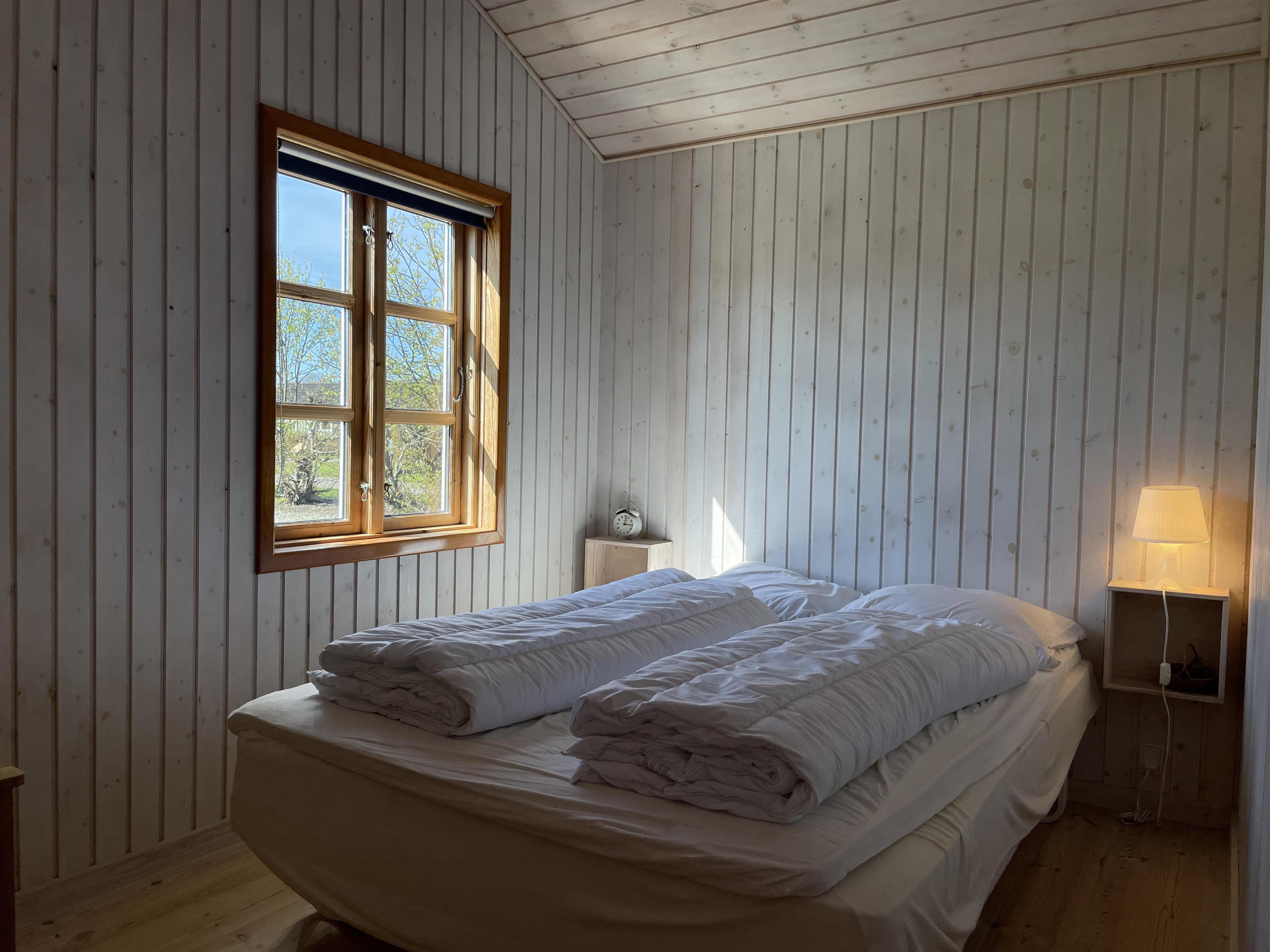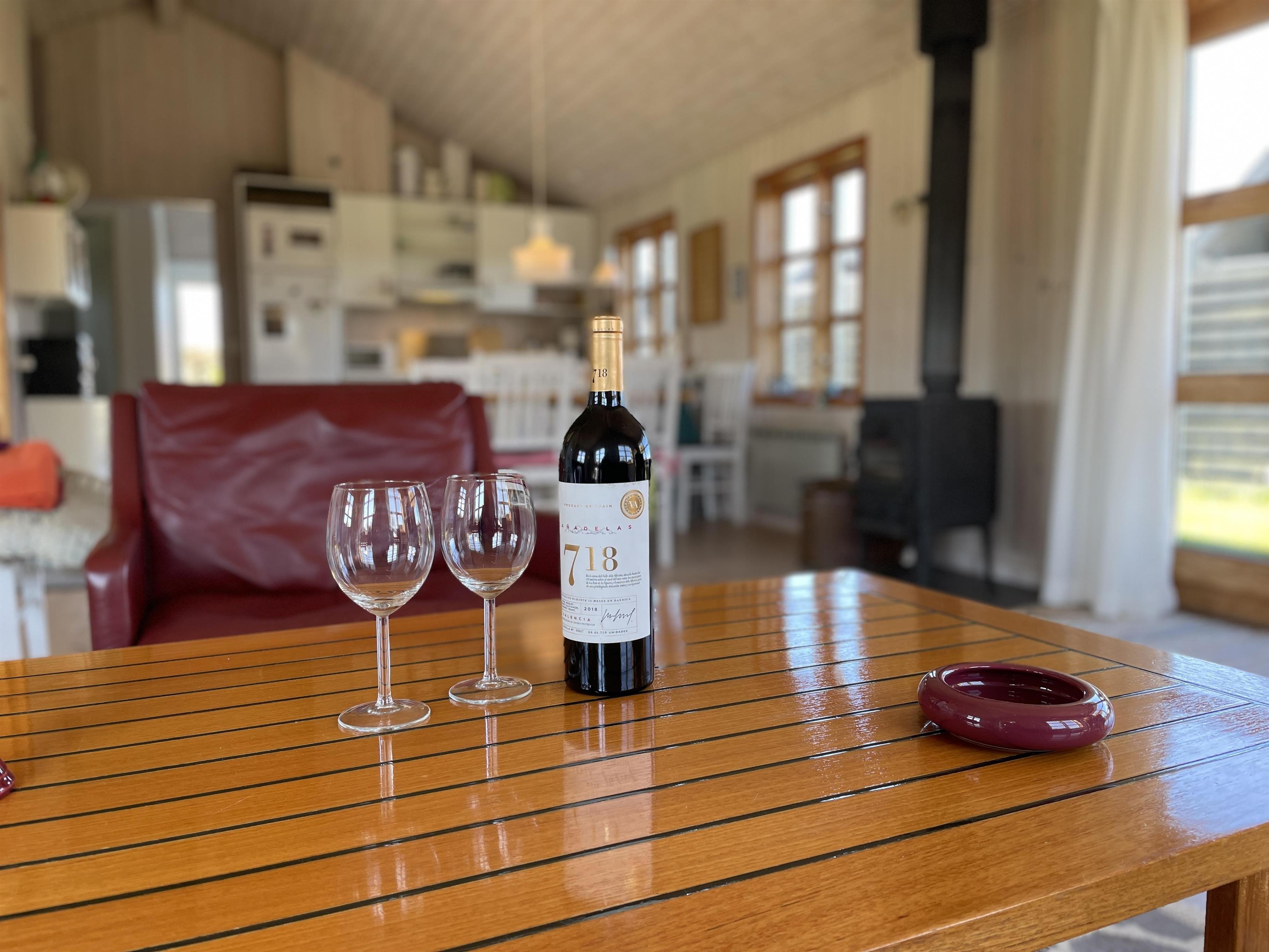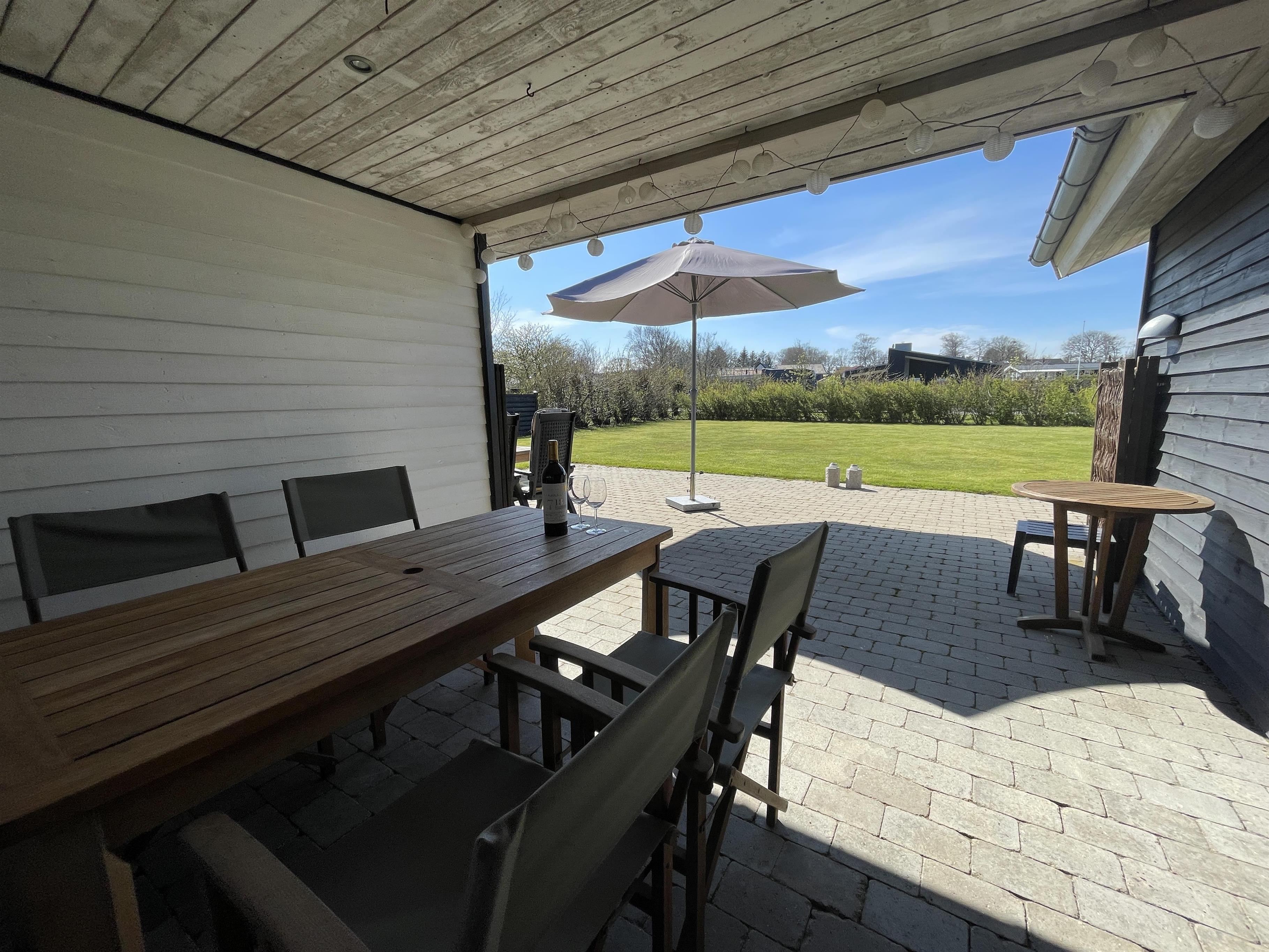 Draußen bieten sowohl die nach Westen als auch die nach Osten ausgerichteten Terrassen die Möglichkeit, die Sonnenstrahlen zu genießen, während eine überdachte Terrasse Schutz und Komfort bietet, wo ein gemütlicher Gartentisch und Stühle zu langen Gesprächen und Mahlzeiten im Freien einladen. Das Ferienhausgebiet Haulund ist ein beliebter Ort, besonders für Familien mit Kindern, da der sichere Strand in unmittelbarer Nähe liegt und perfekt zum Spielen und Planschen im Wasser ist.
