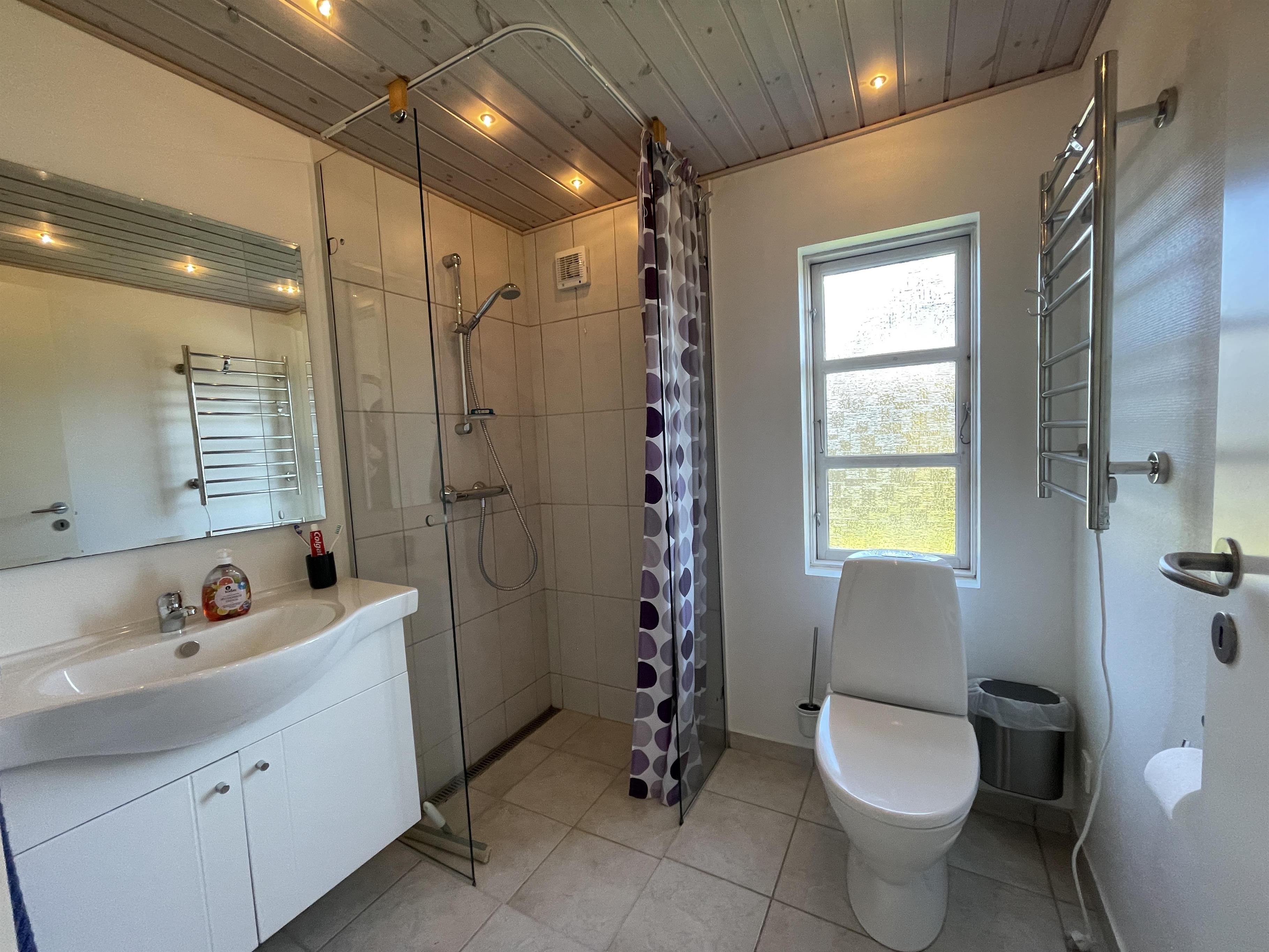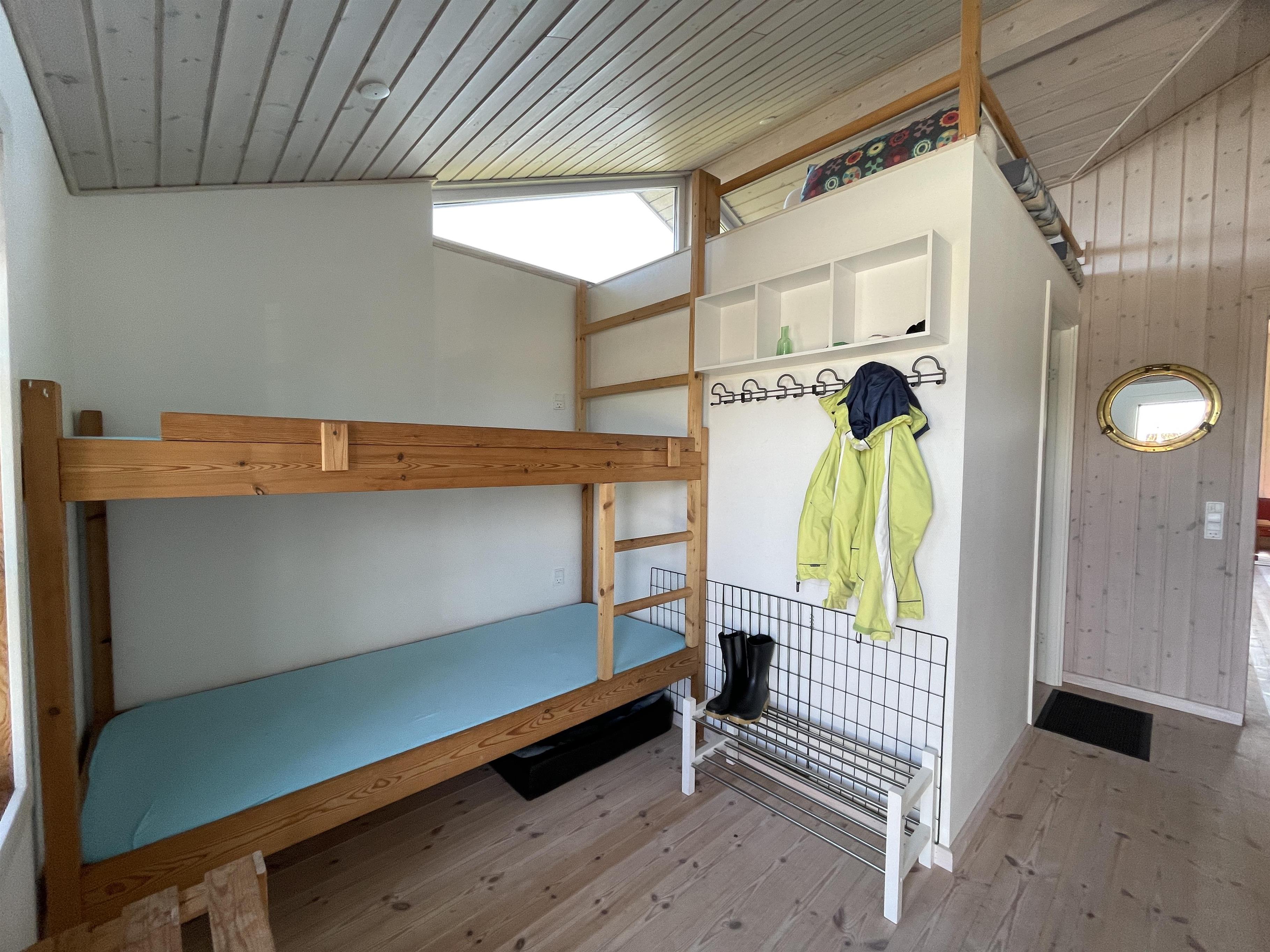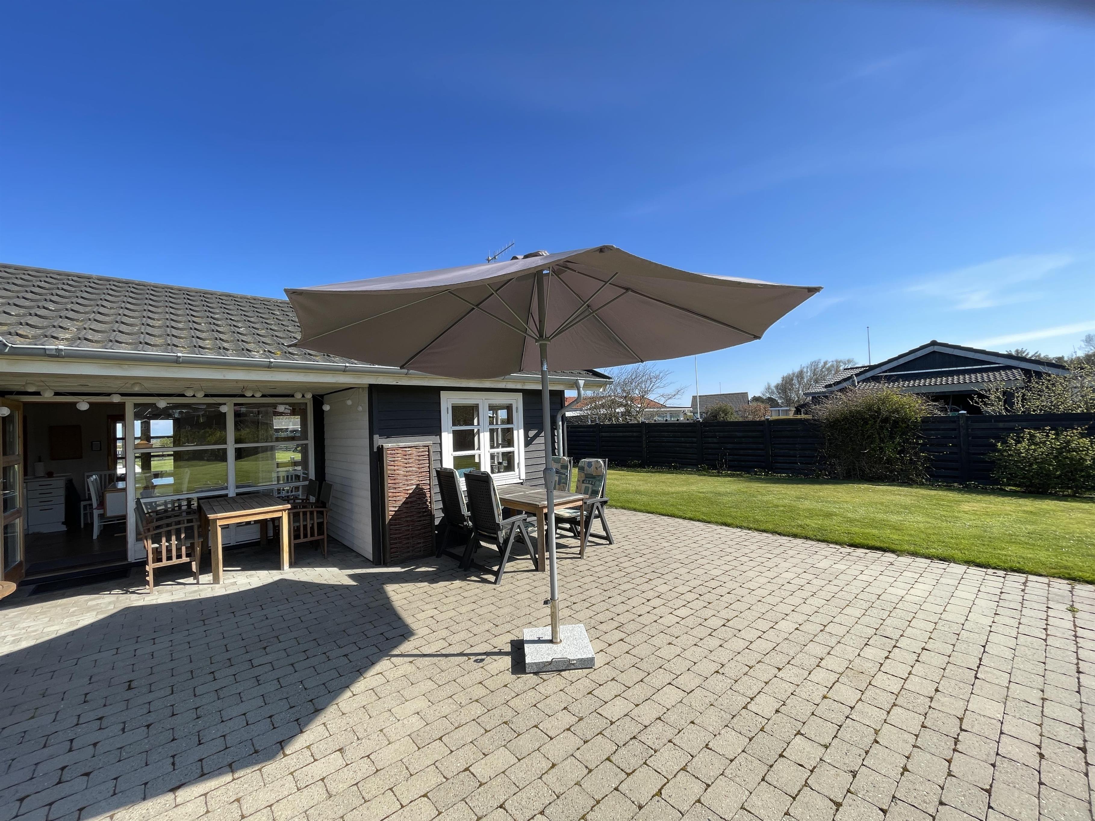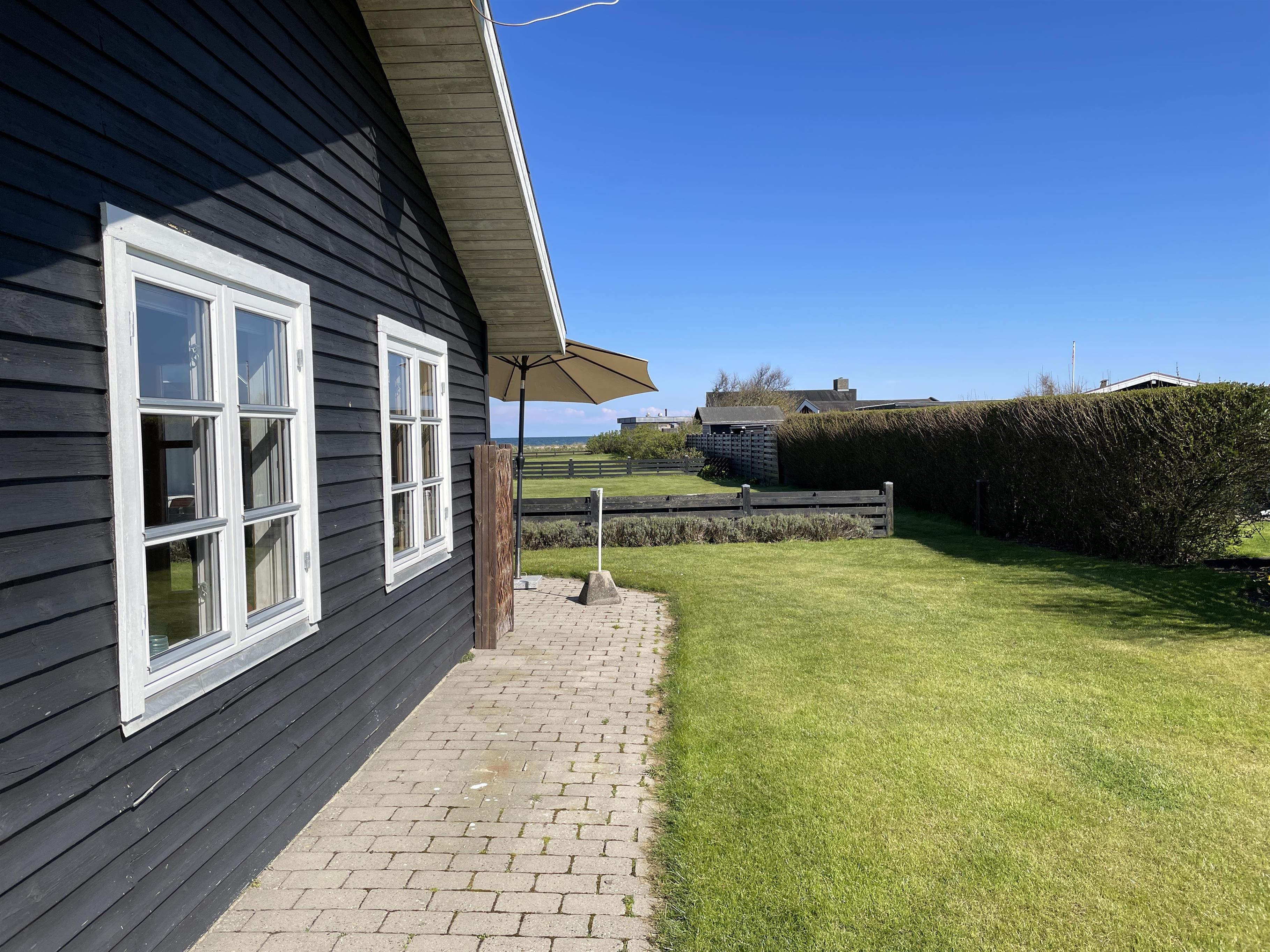 Draußen bieten sowohl die nach Westen als auch die nach Osten ausgerichteten Terrassen die Möglichkeit, die Sonnenstrahlen zu genießen, während eine überdachte Terrasse Schutz und Komfort bietet, wo ein gemütlicher Gartentisch und Stühle zu langen Gesprächen und Mahlzeiten im Freien einladen. Das Ferienhausgebiet Haulund ist ein beliebter Ort, besonders für Familien mit Kindern, da der sichere Strand in unmittelbarer Nähe liegt und perfekt zum Spielen und Planschen im Wasser ist.