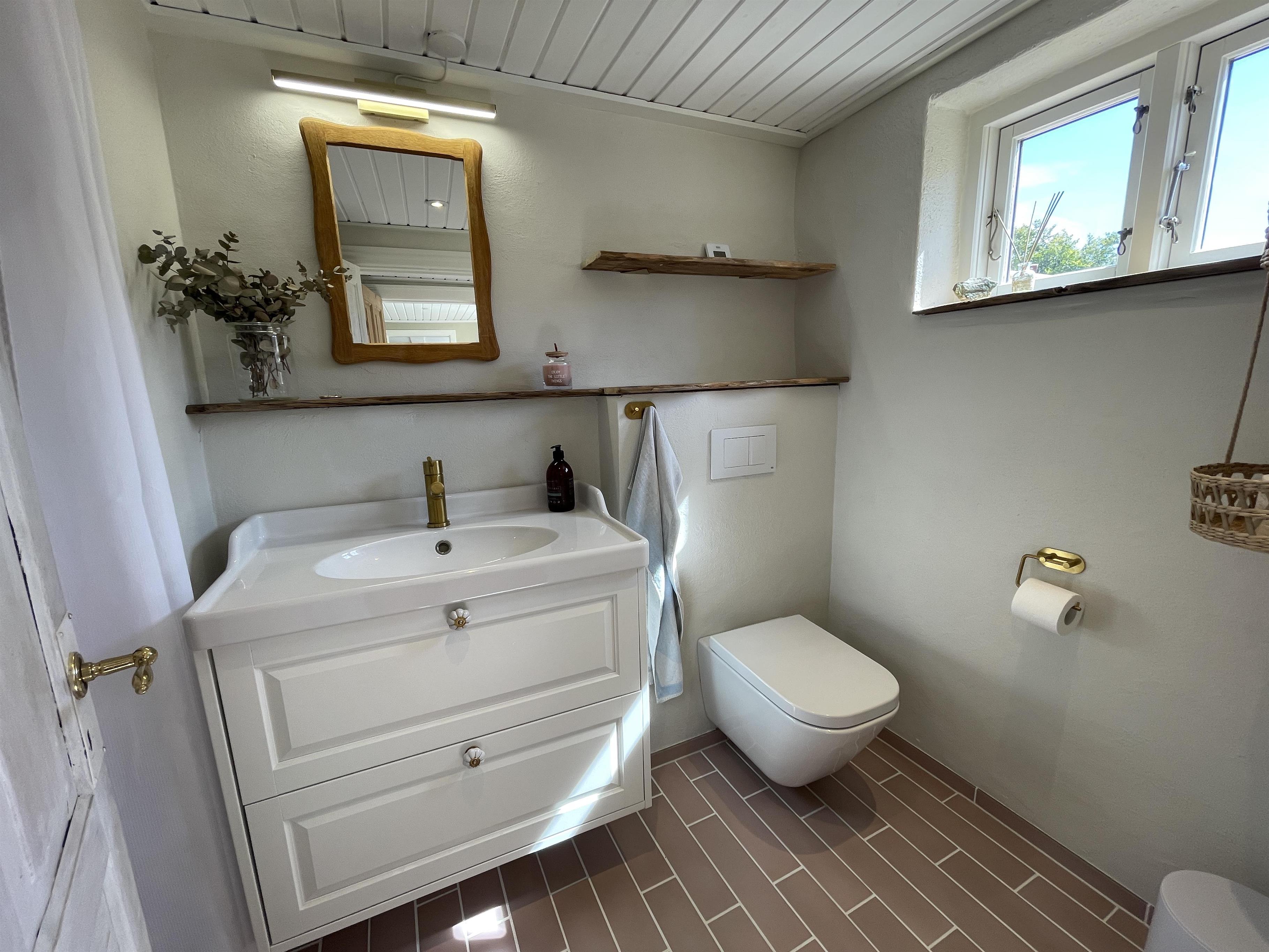 Es gibt eine kleine Küche mit guten Haushaltsgeräten und ein neues Badezimmer mit Fußbodenheizung und Dusche. Esszimmer und Wohnzimmer befinden sich im Erdgeschoss, und im ersten Stock gibt es 2 gute Schlafzimmer.