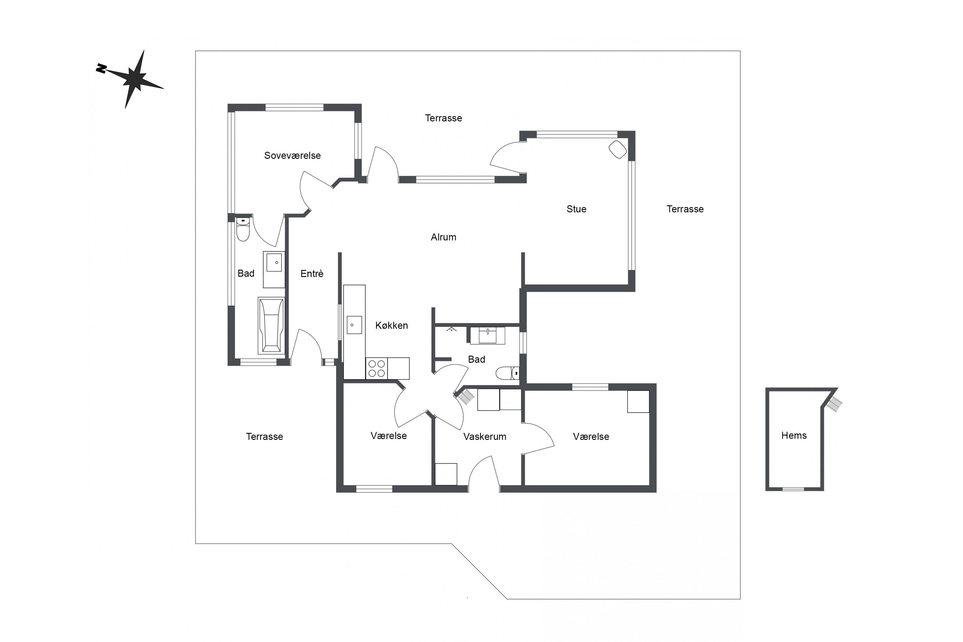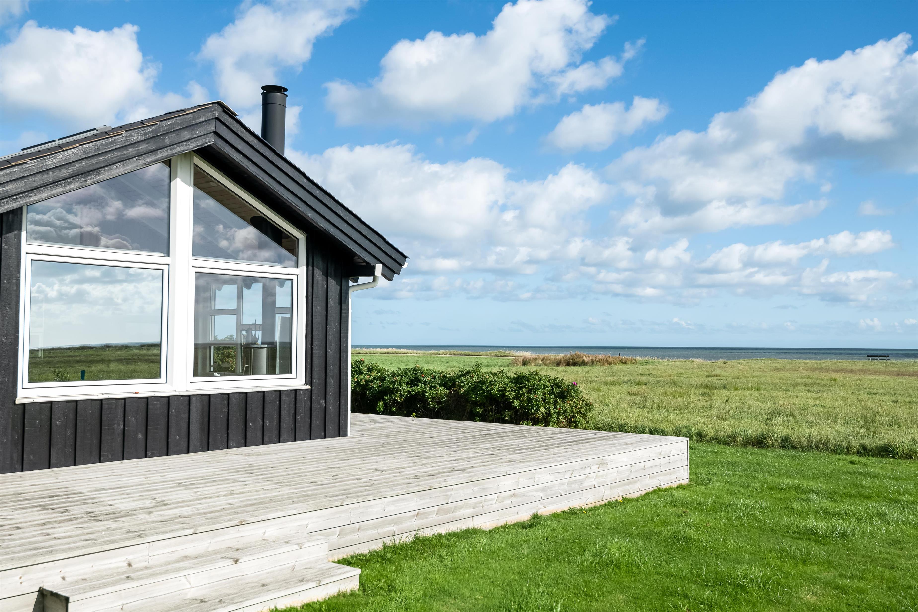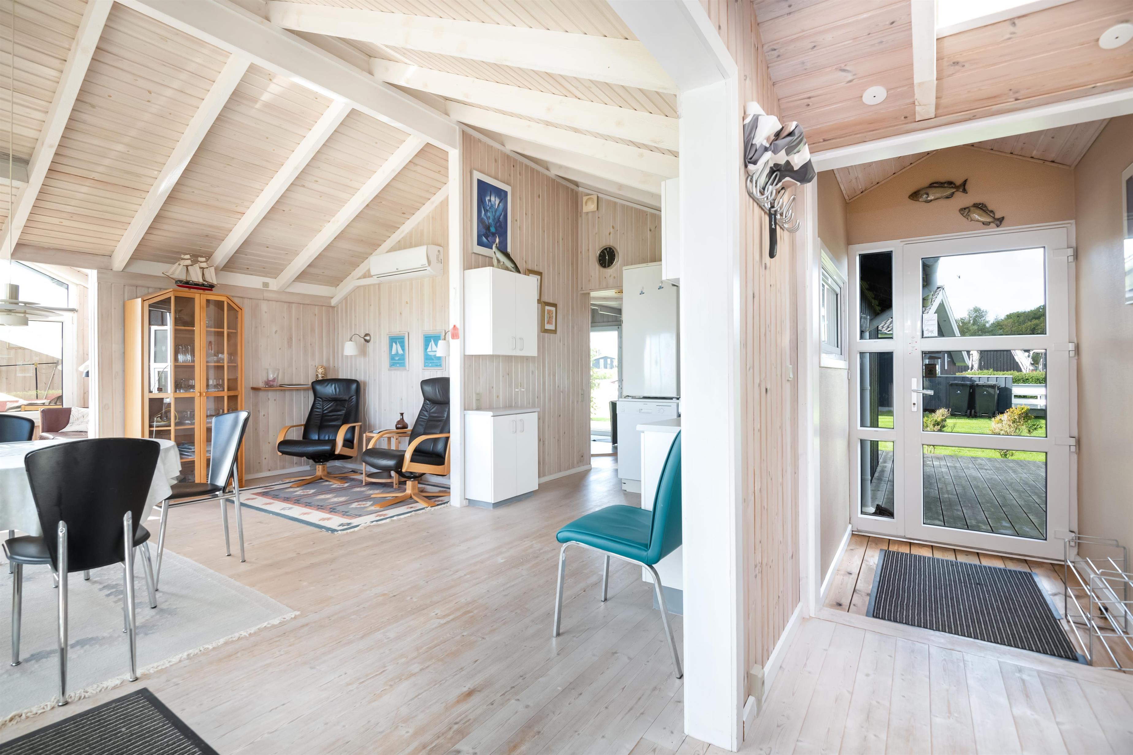 Die Küche ist offen mit dem Essbereich verbunden, und das Wohnzimmer befindet sich in einem kleinen separaten Wintergarten. Hier können Sie die Wärme des Kaminofens genießen und den fantastischen Meerblick über das Kattegat bewundern – das Meer liegt nur 80 Meter vom Haus entfernt.