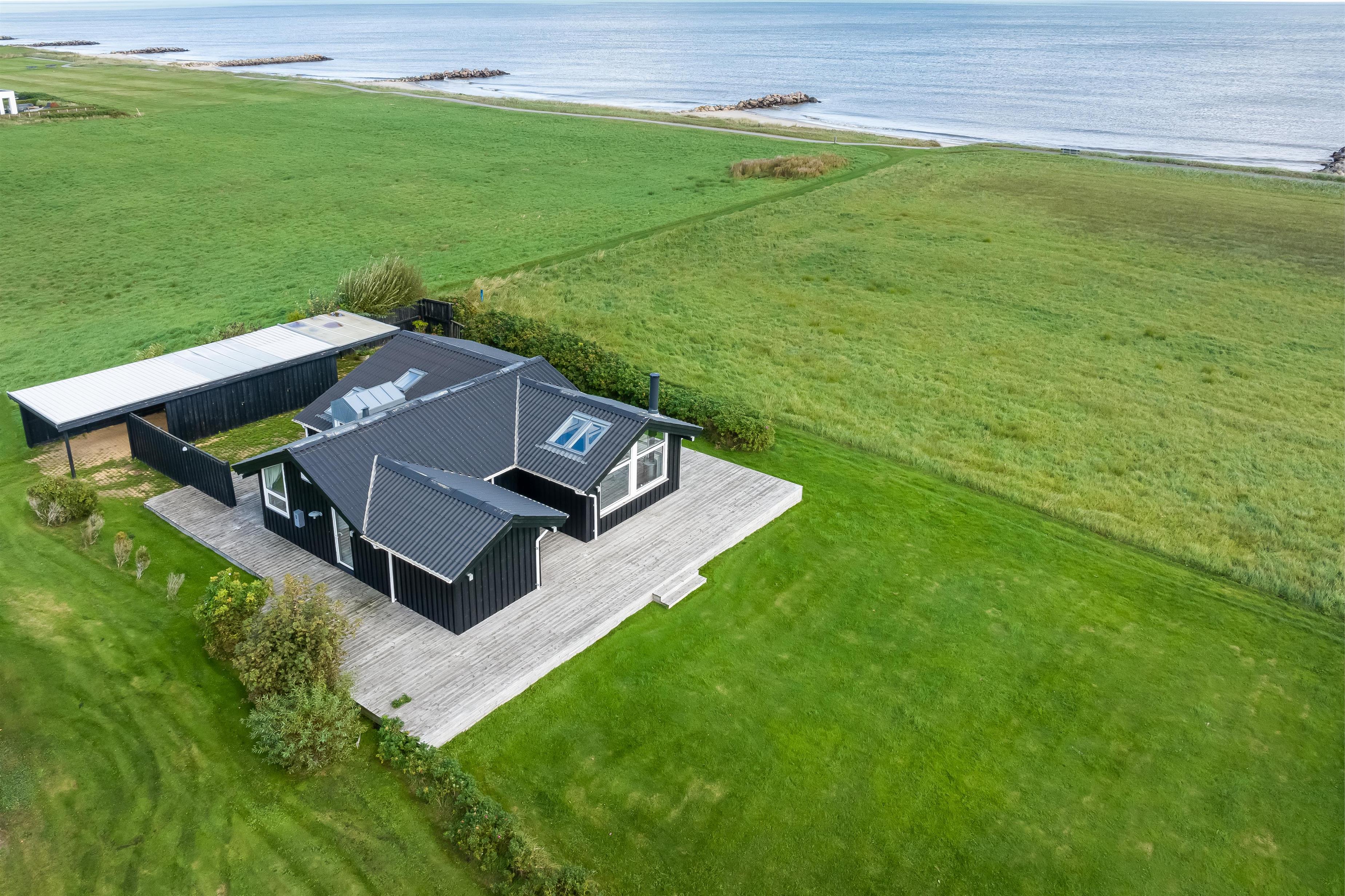Das Ferienhaus liegt direkt an der schönen Küstenlinie nördlich von Sæby, umgeben von freien Grünflächen. Es bietet Platz für bis zu 5 Personen in 3 gemütlichen Schlafzimmern: