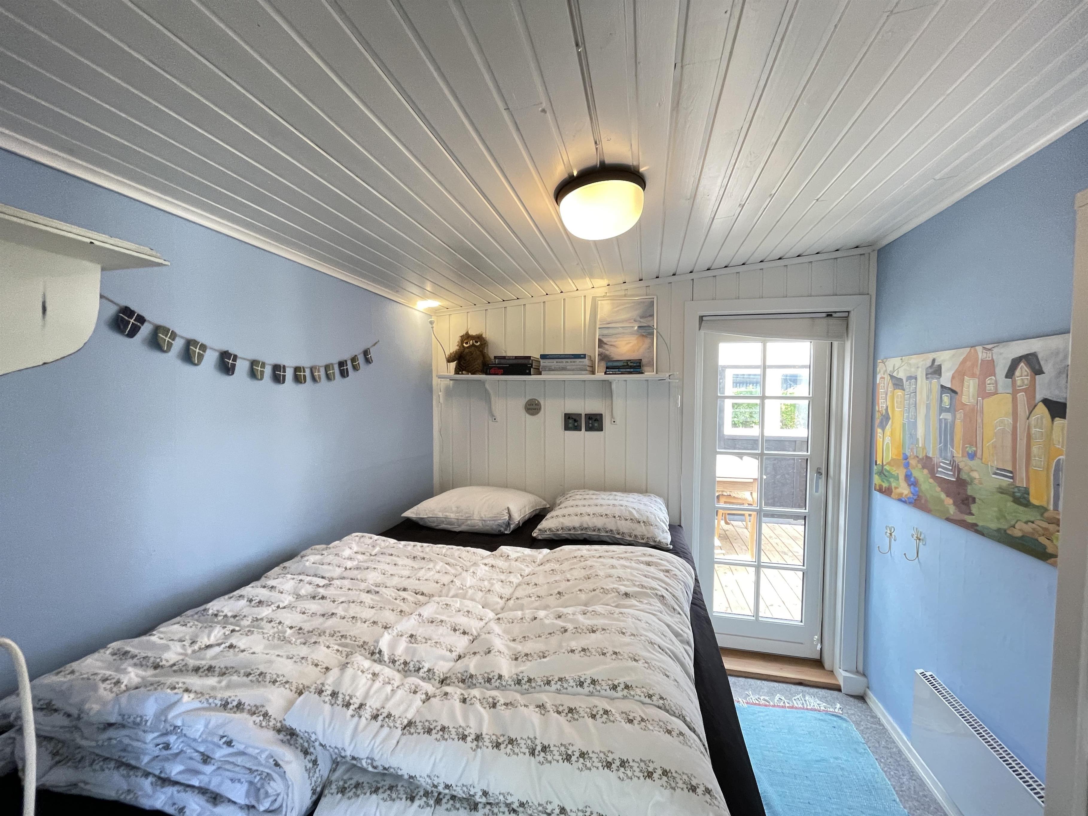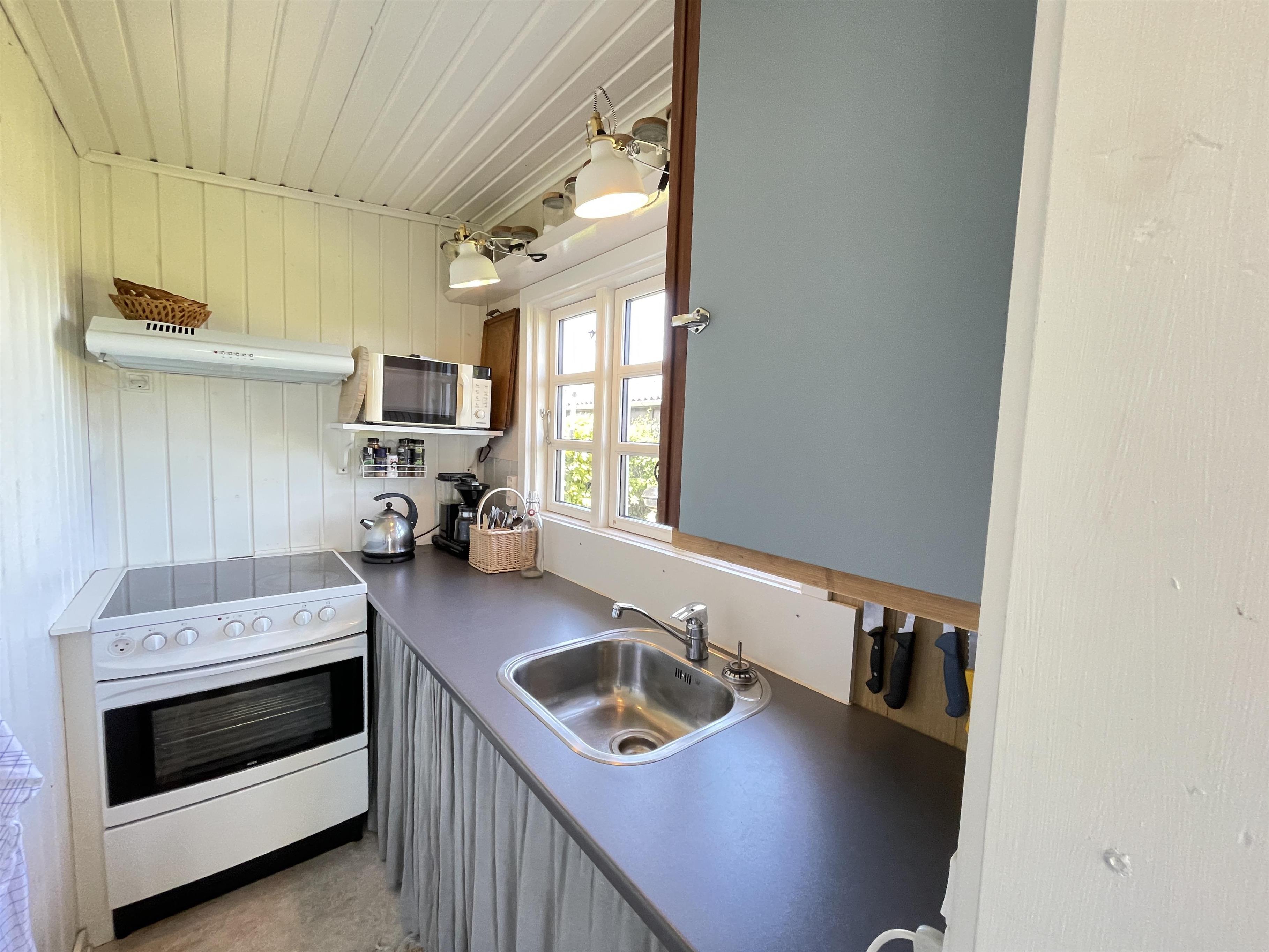 Das Ferienhaus verfügt über ein kleines Schlafzimmer mit einem bequemen Doppelbett, und das Schlafsofa im Wohnzimmer bietet zwei zusätzliche Schlafplätze. Die Küche ist funktional eingerichtet und mit allem ausgestattet, was man für die Zubereitung leckerer Ferienmahlzeiten braucht – ob in der Essecke, im Wintergarten oder draußen auf der Terrasse.
