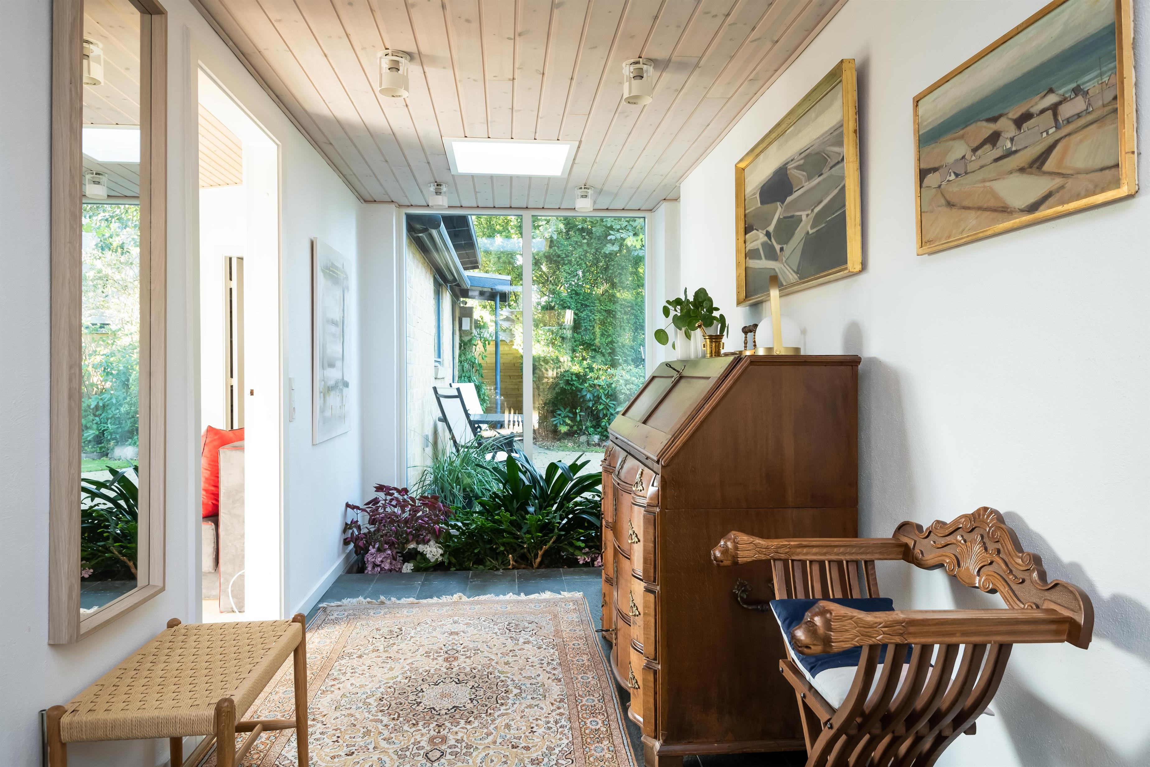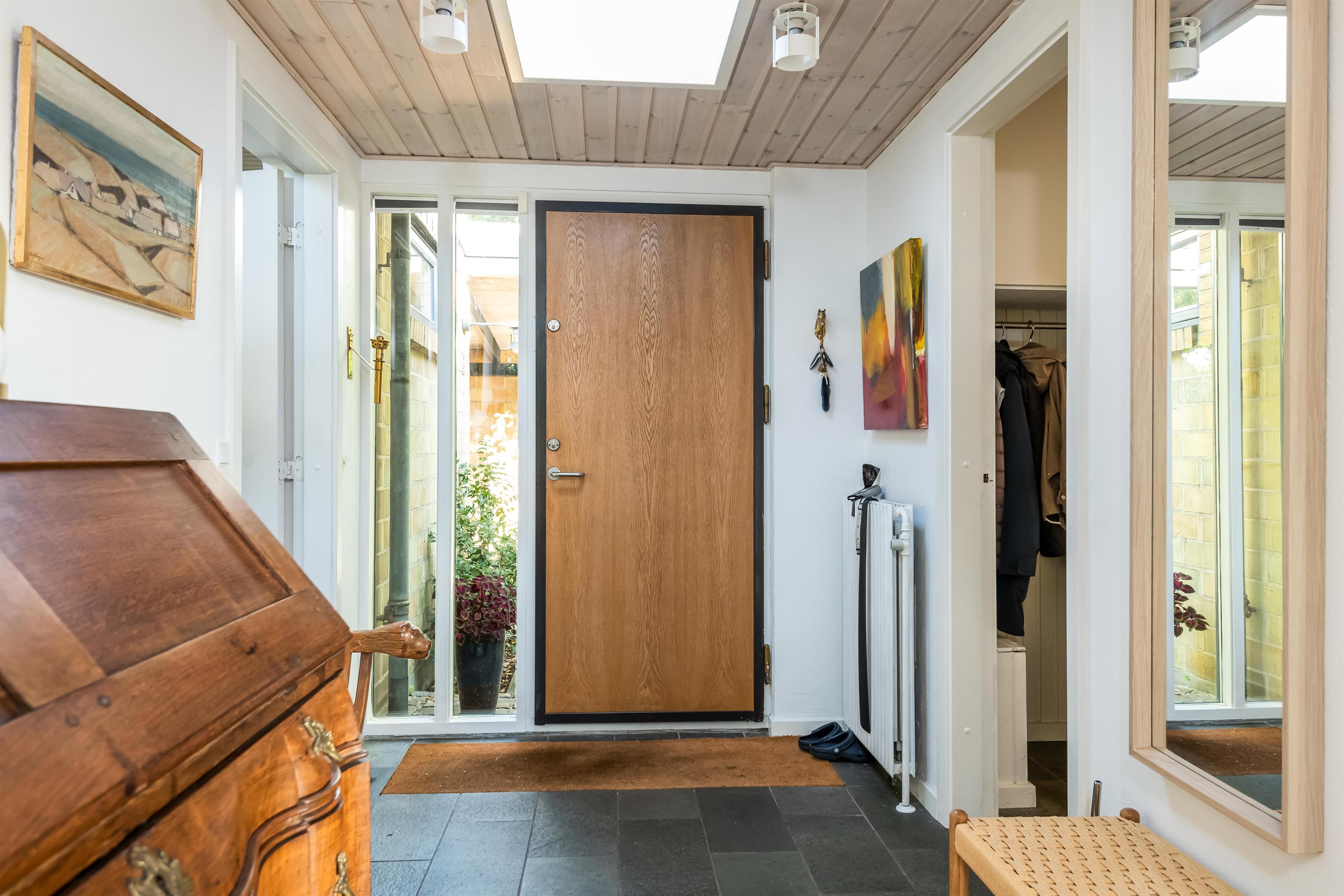 Vom Eingang aus haben Sie Zugang zu einer großen Garderobe mit viel Stauraum in Verbindung mit einem schönen Badezimmer mit Dusche.