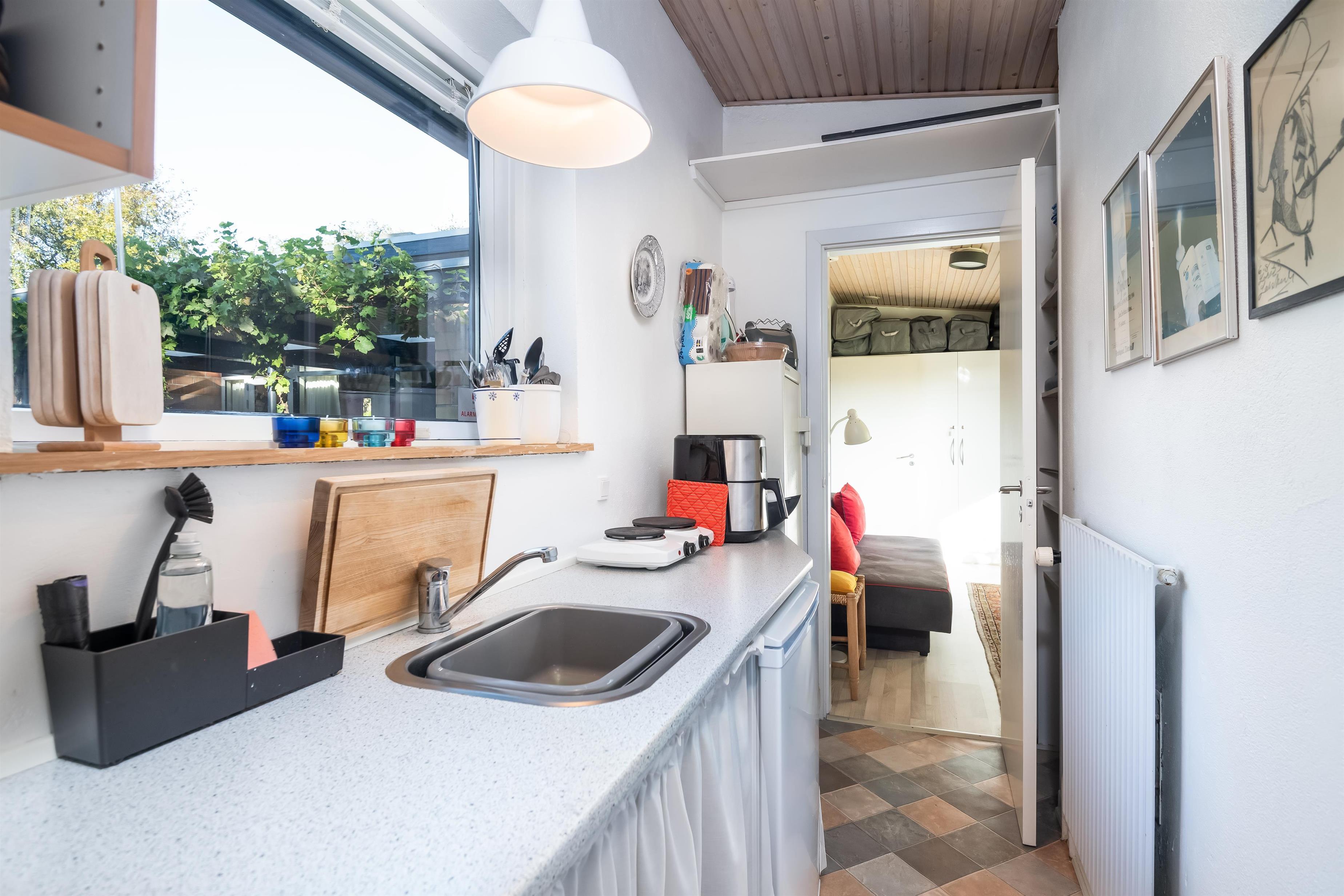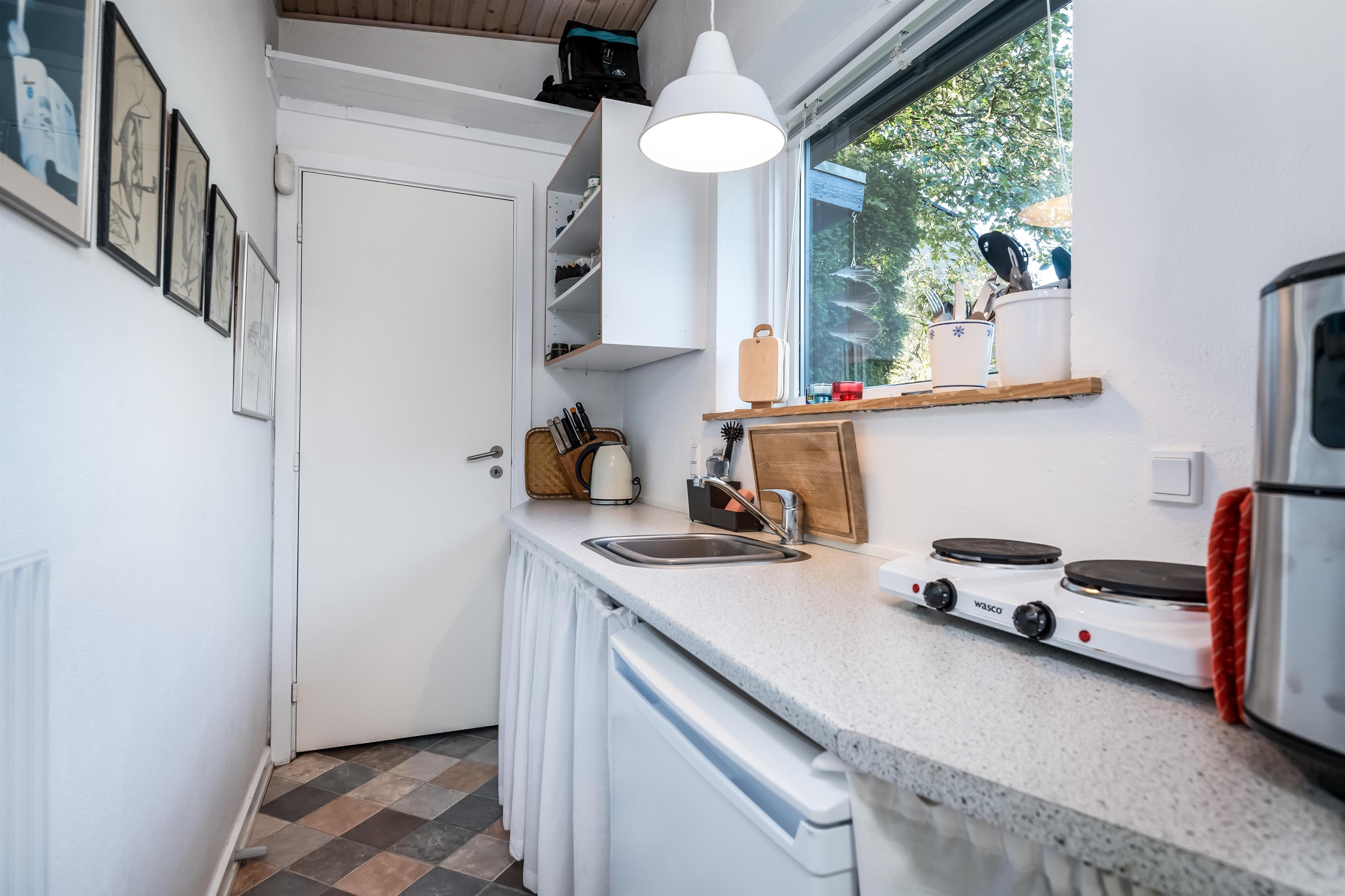 Die Küche ist gut ausgestattet und hier haben Sie die Möglichkeit, das Essen auf den zwei Herdplatten und/oder in einem kleinen Tischbackofen zuzubereiten.