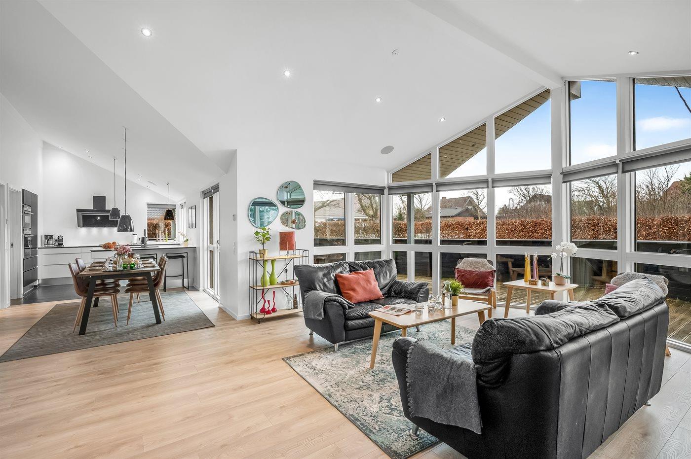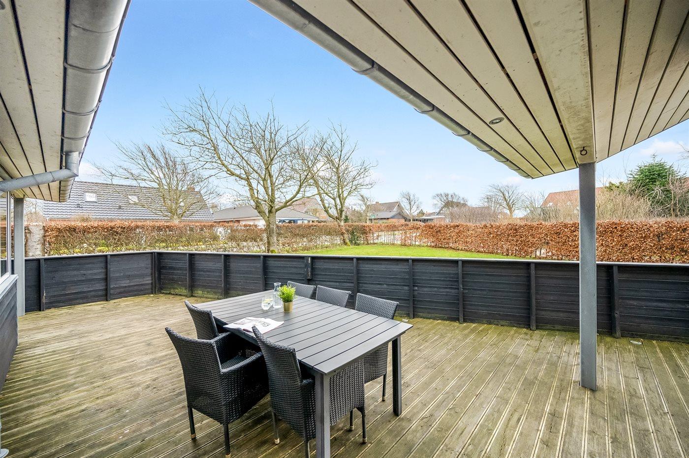 Ein gut gelegenes Ferienhaus mit kurzer Entfernung zum Strand. Zum Haus, das hell und freundlich eingerichtet ist, gehört unter anderem eine große, geschlossene Terrasse und große, in Richtung Südwesten liegende, Fenster.