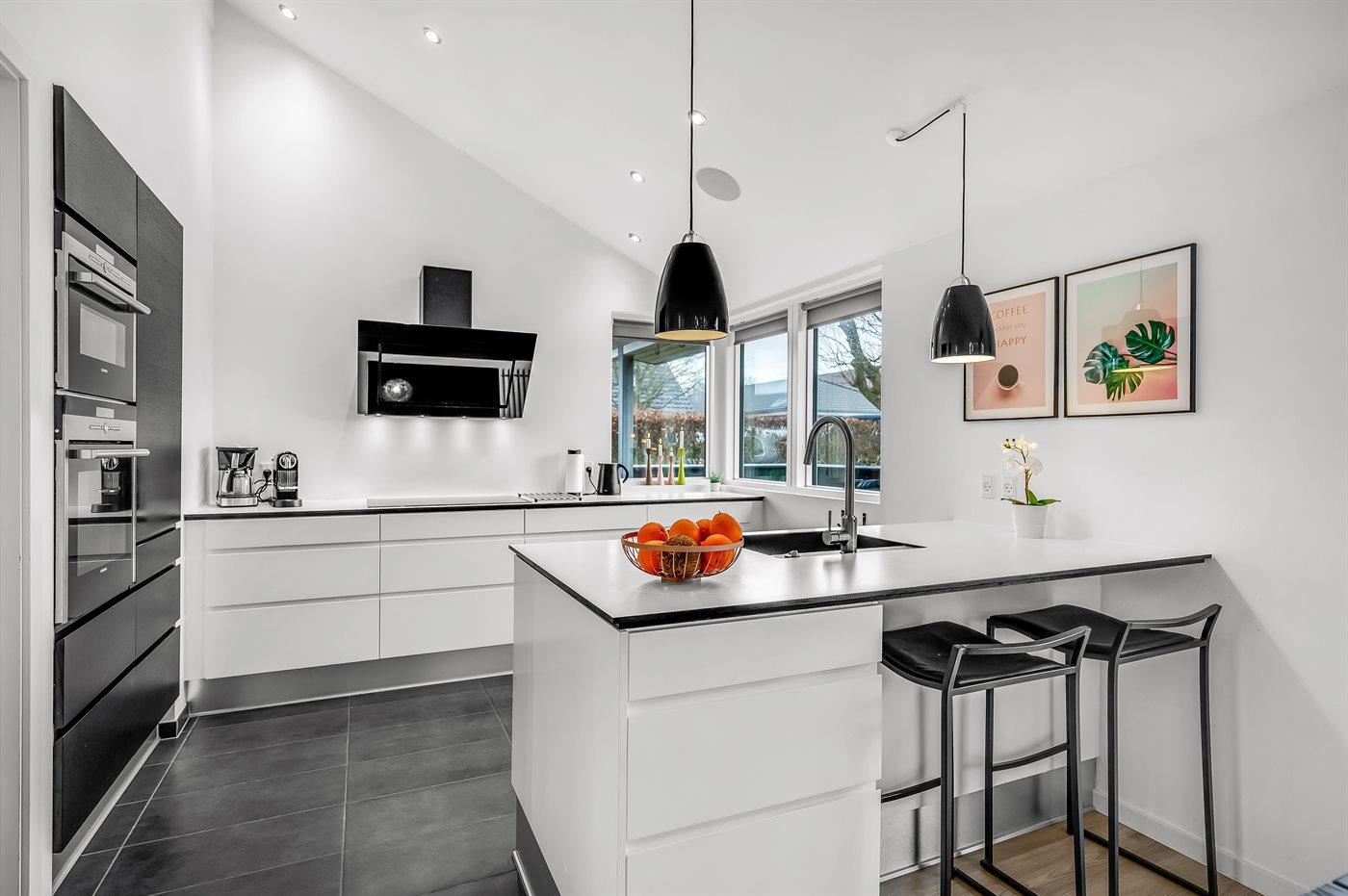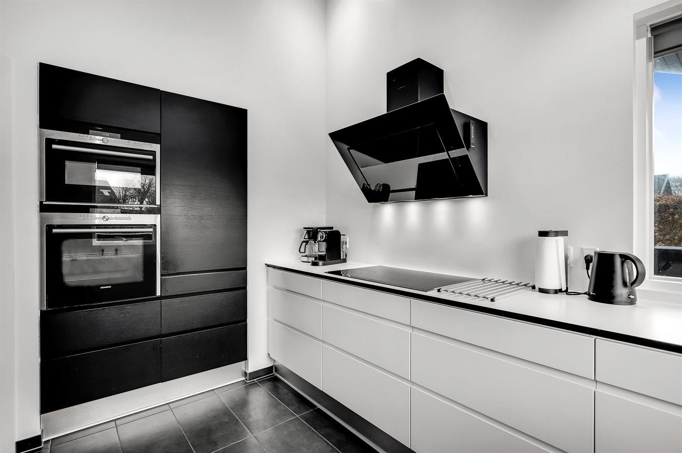 Die Küche ist mit Kühlschrank ausgestattet. Außerdem gibt es 4 Induktions-Kochzonen, Umluftofen, Mikrowelle sowie Geschirrspüler.